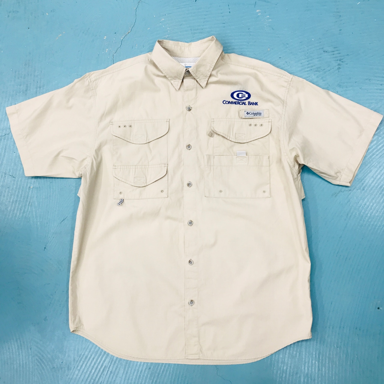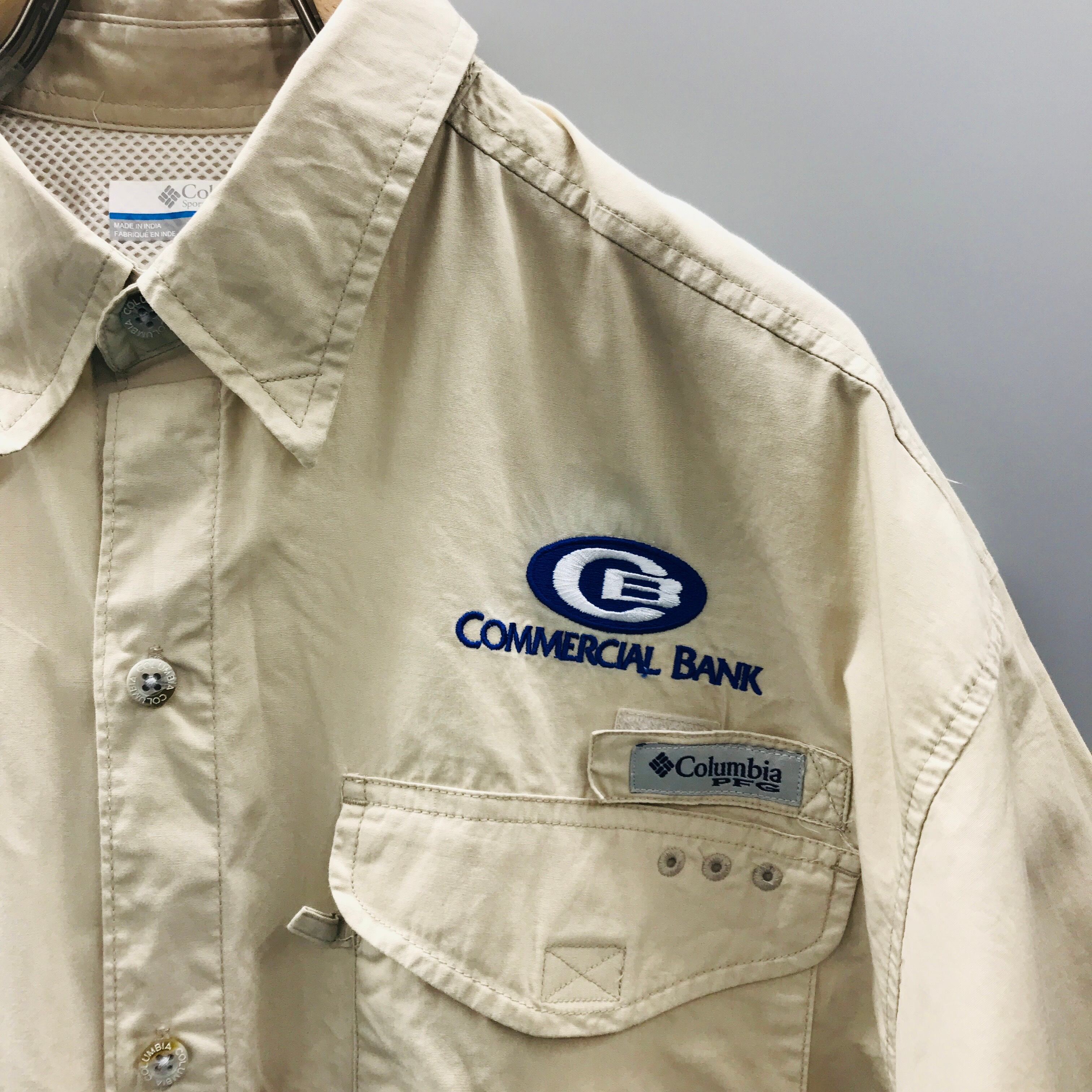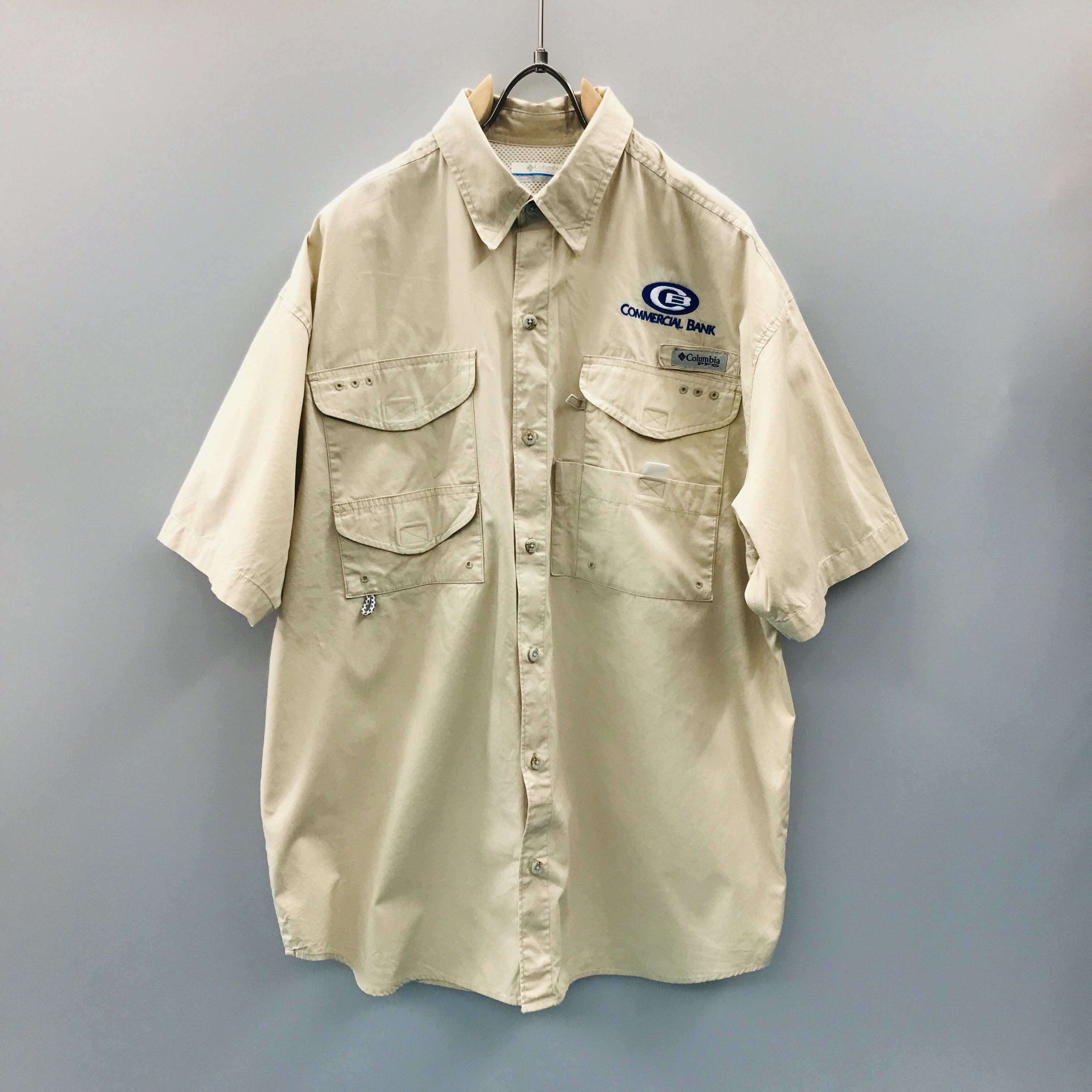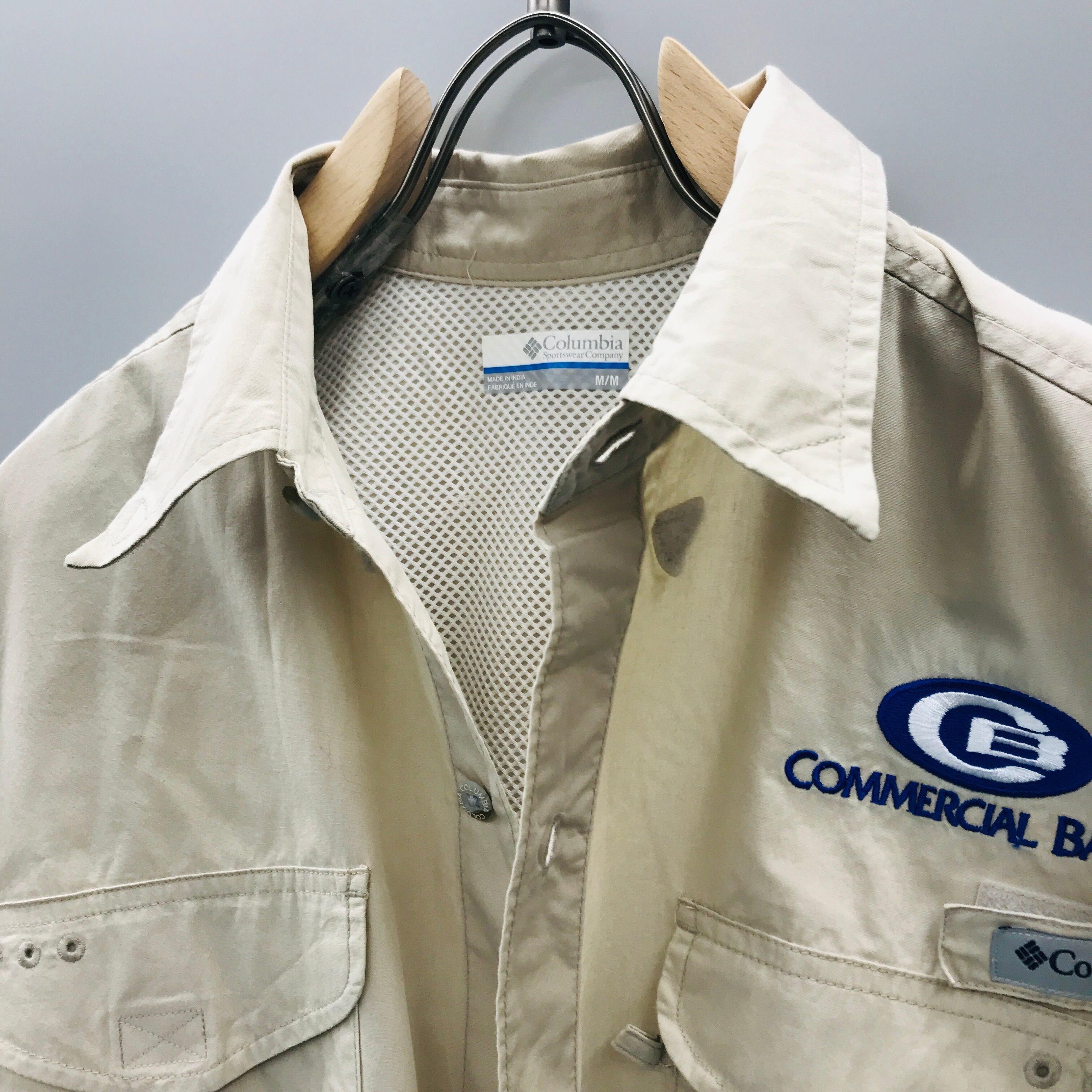 M サイズ COLUMBIA PFG FM7130 コロンビア コットン100%タイプ 刺繍入り 半袖 フィッシングシャツ S/S SHIRT 半袖 うすいベージュボーンヘッド