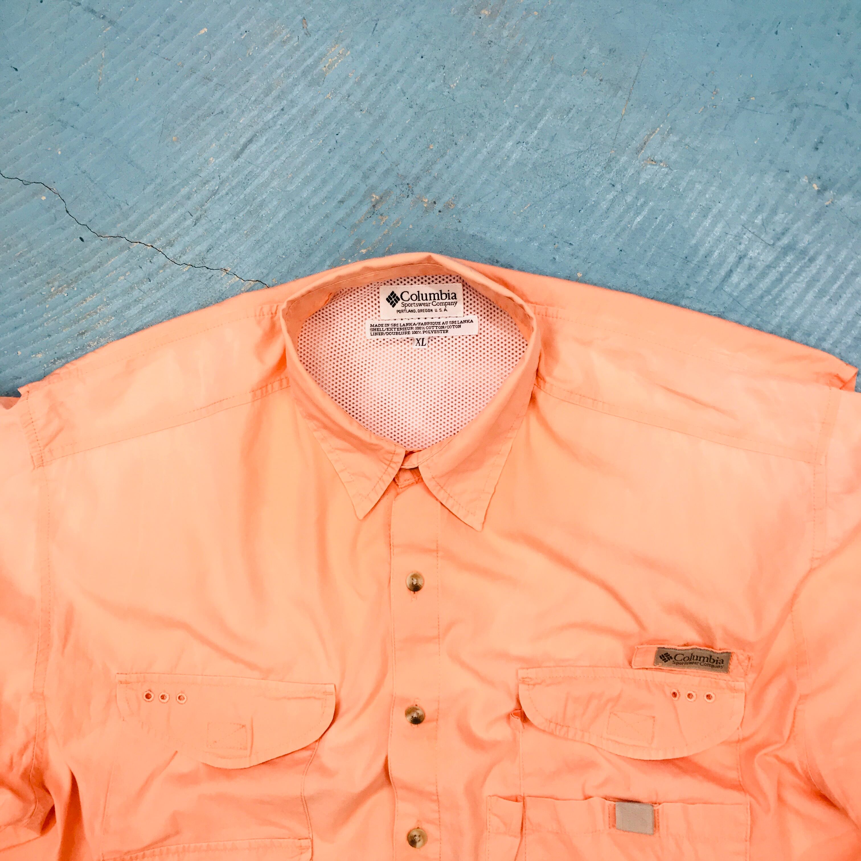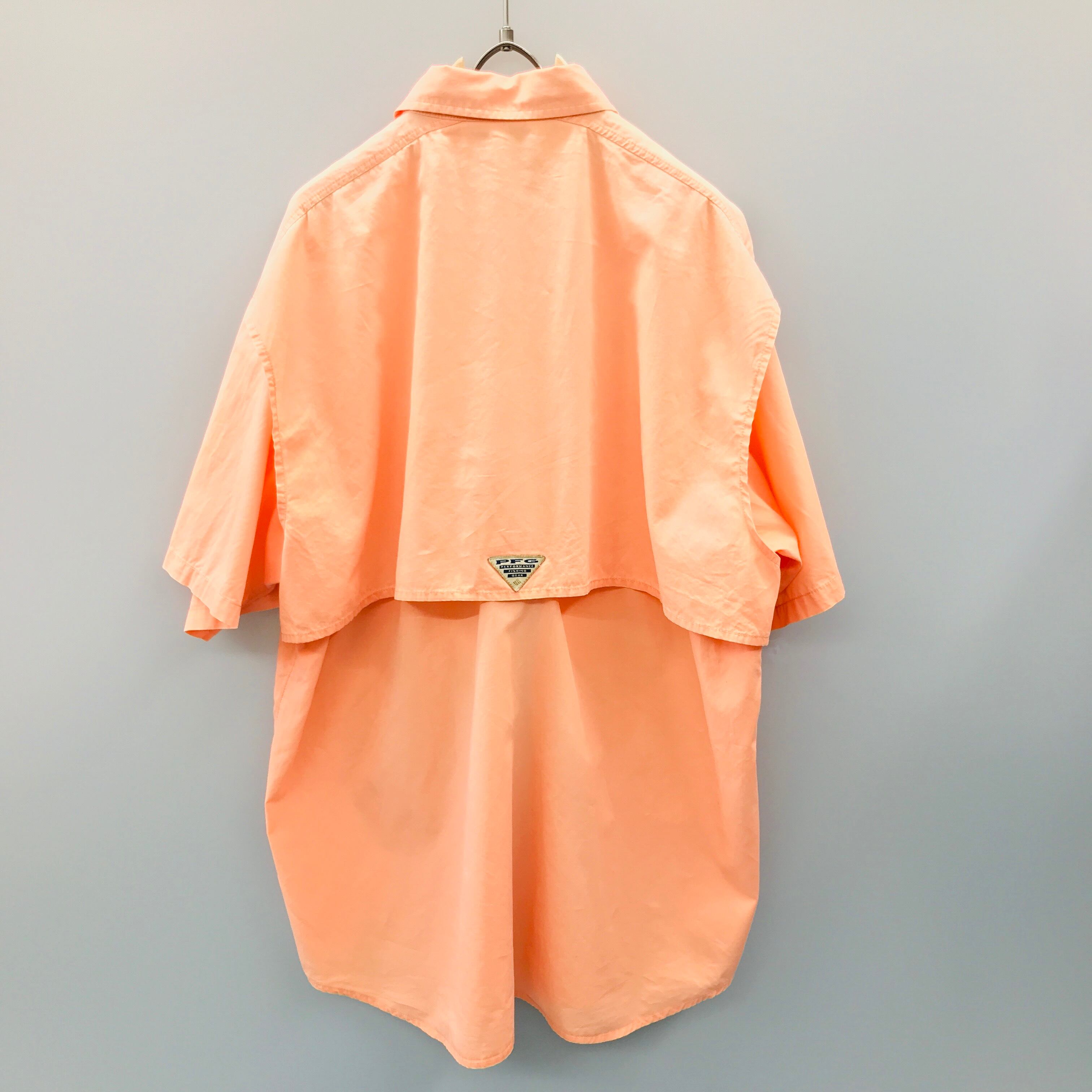 XL オールドジャンク品! COLUMBIA 旧タグPFG FM7130 コロンビア コットン100%タイプ半袖 快適 フィッシングシャツ S/S SHIRT シャーベットオレンジ ボーンヘッド