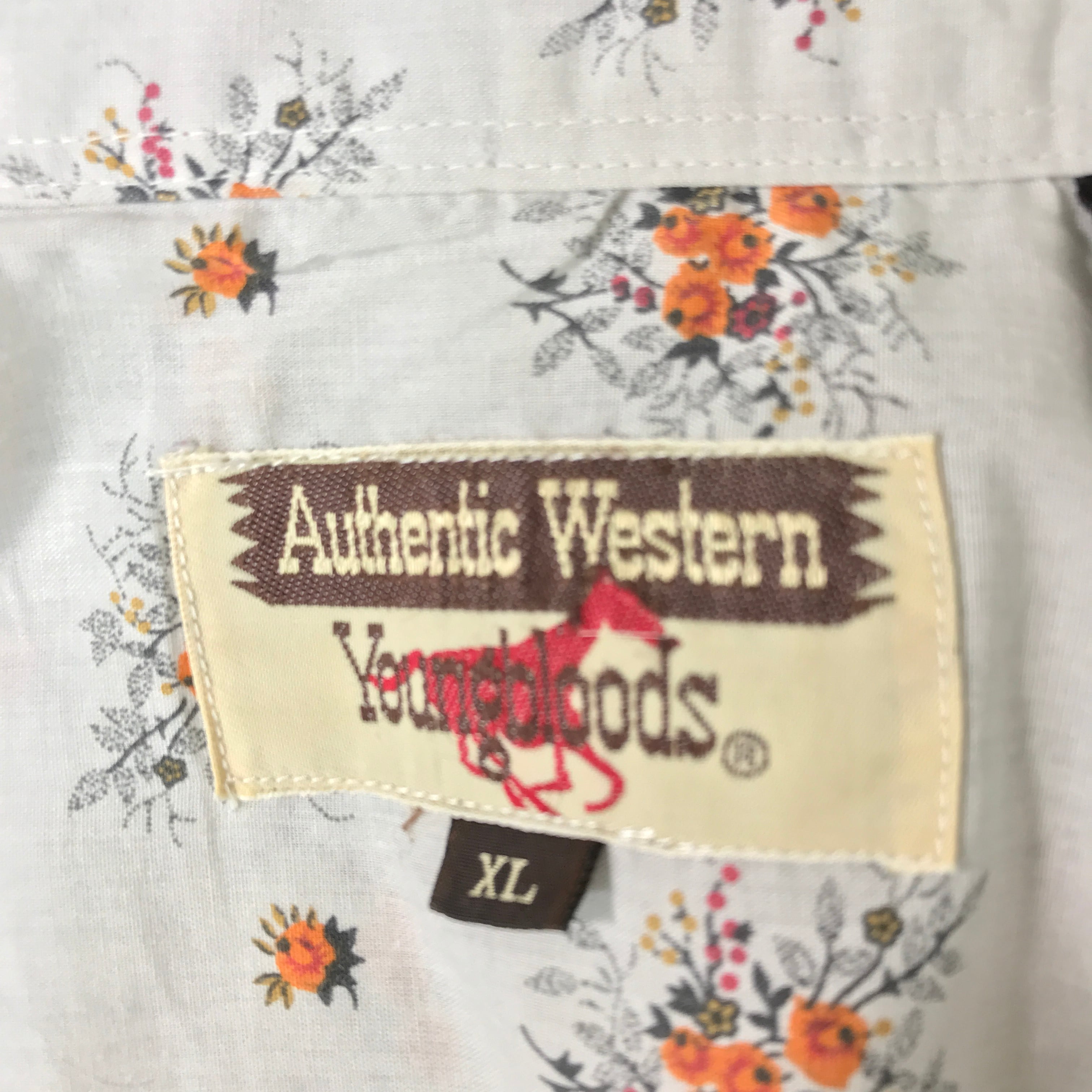 70〜80年代 Youngbloods Authentic Western 小花柄入り 長袖ウエスタンシャツ WESTERN SHIRTS XL