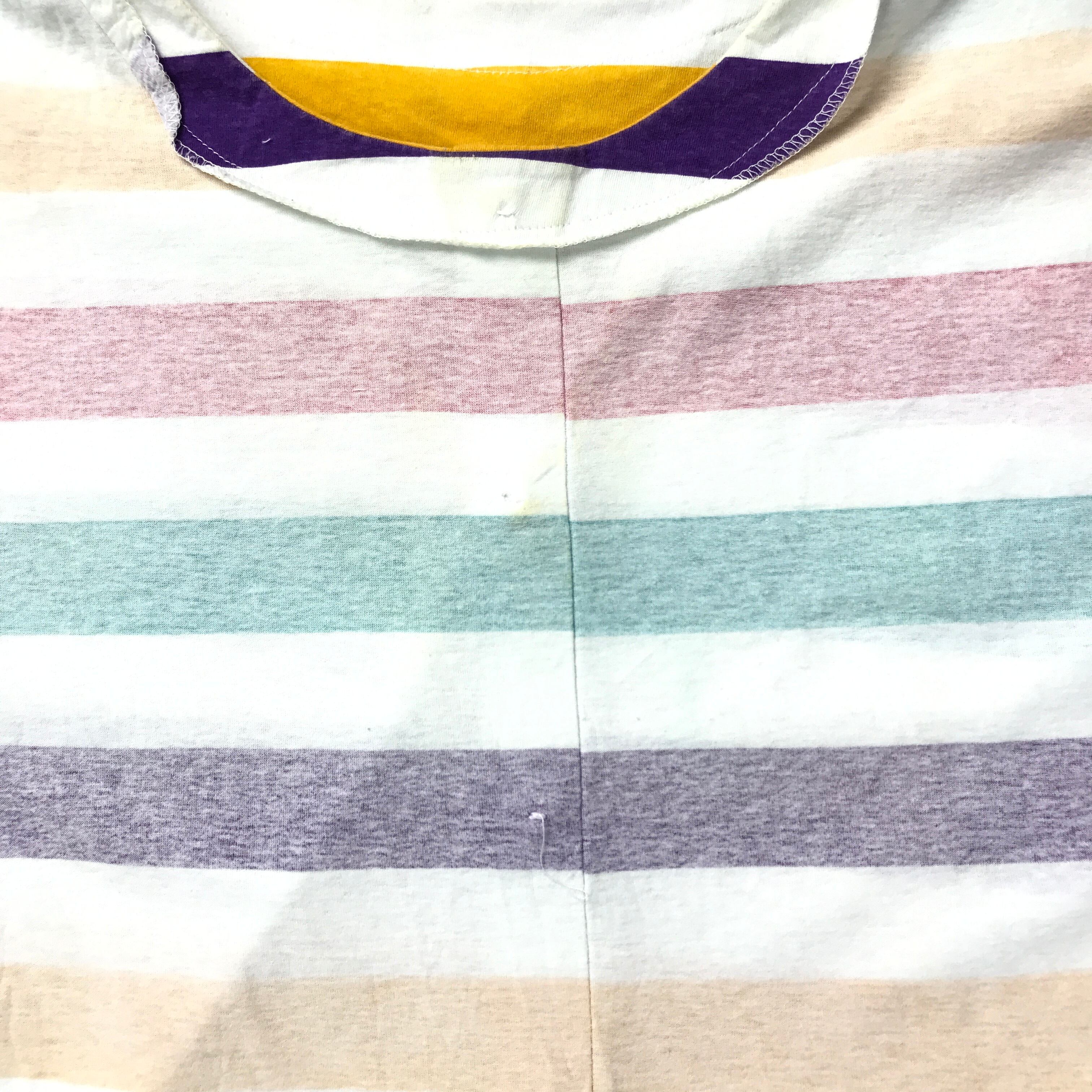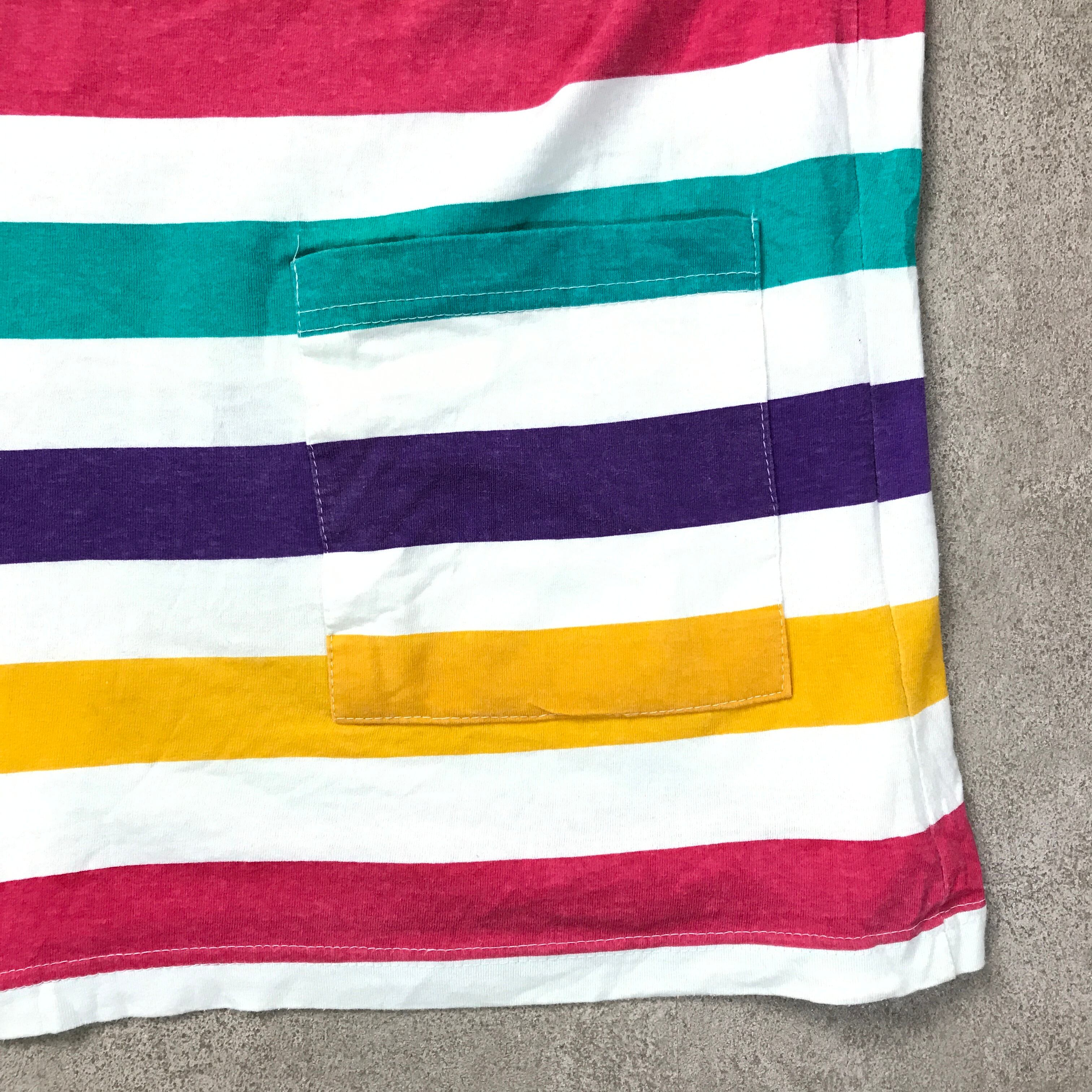 ギリシャ製 ユーロTシャツ ビンテージ EURO T-SHIRTS 80'S デザイン ビビッドカラー MADE IN GREECE ワイドネック 太マルチボーダーT ポケット付き