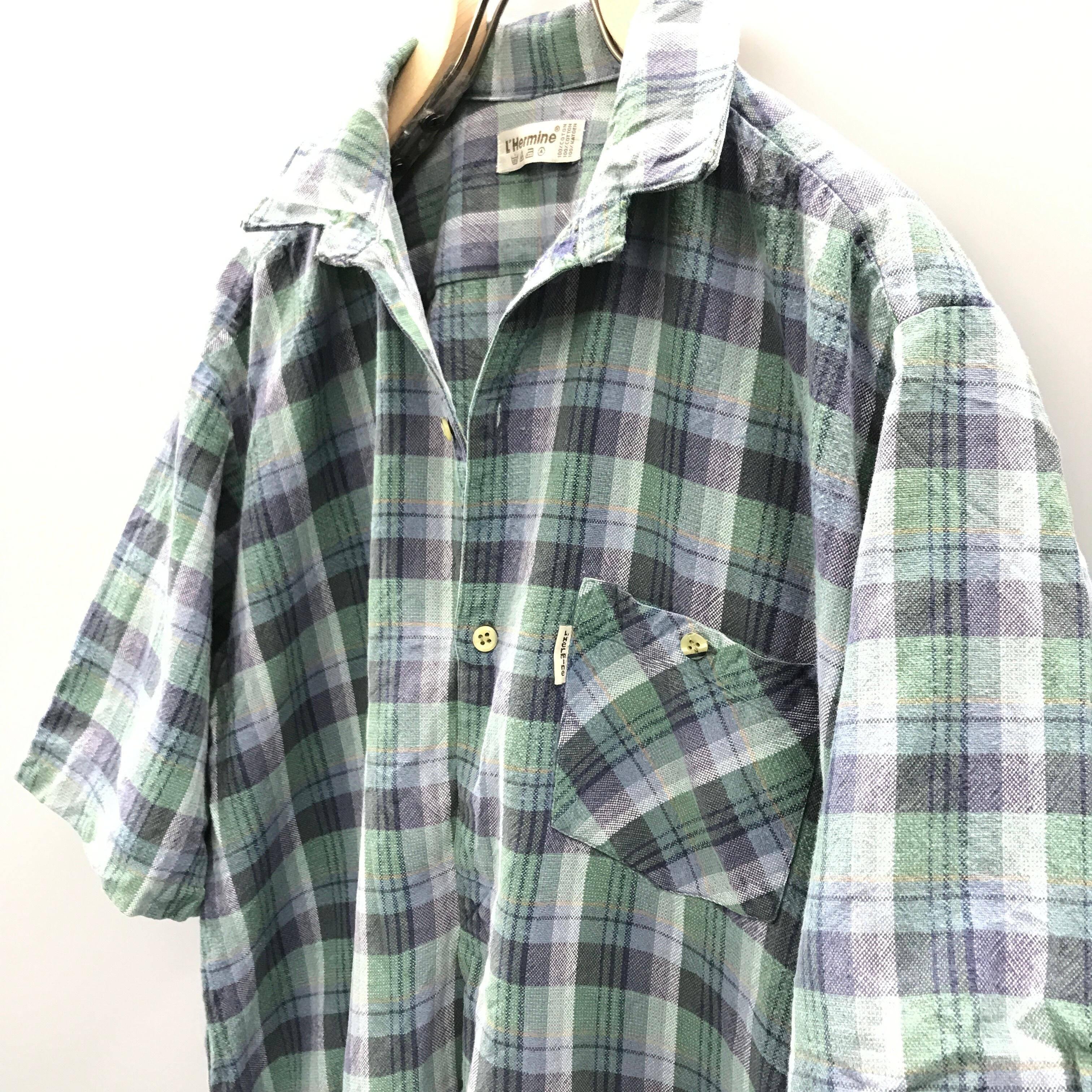 80〜90年代 L'Helmine ユーロ チェック柄 半袖 コットン プルオーバー グランパ シャツ ユーロ ビンテージ
