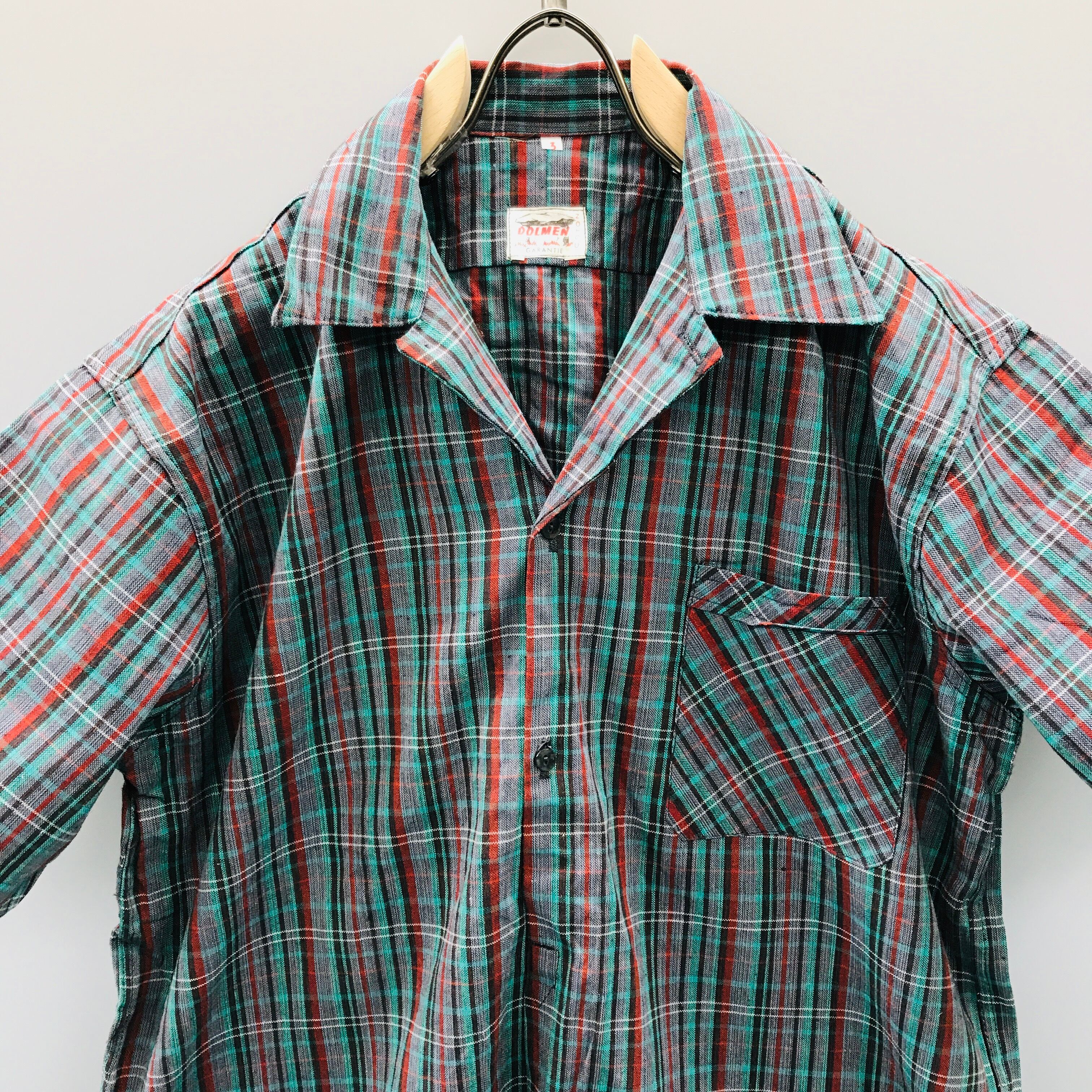 50〜60年代 FRANCE DOLMEN社 フレンチユーロ チェック柄 半袖 コットン プルオーバー グランパ シャツ ユーロ ビンテージ