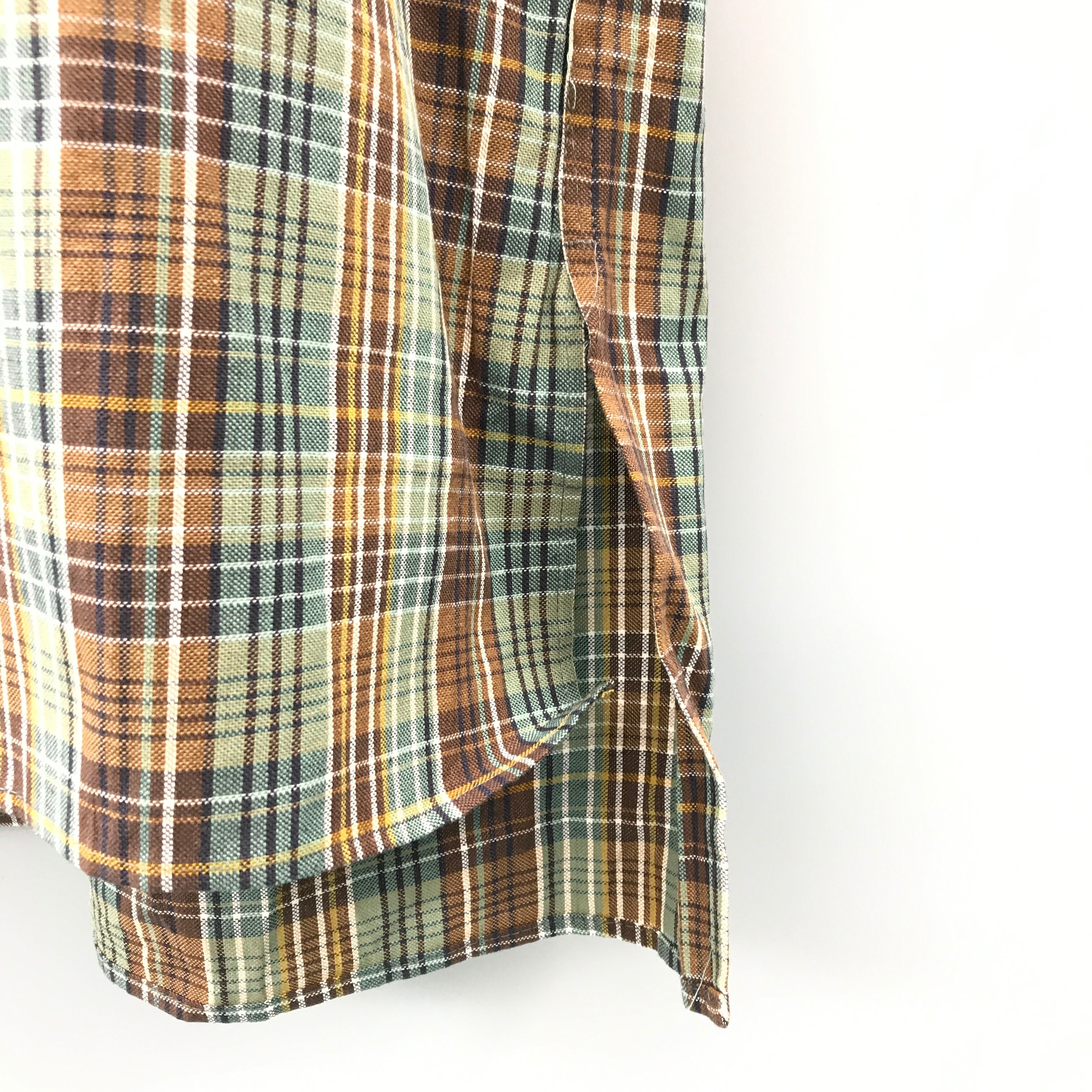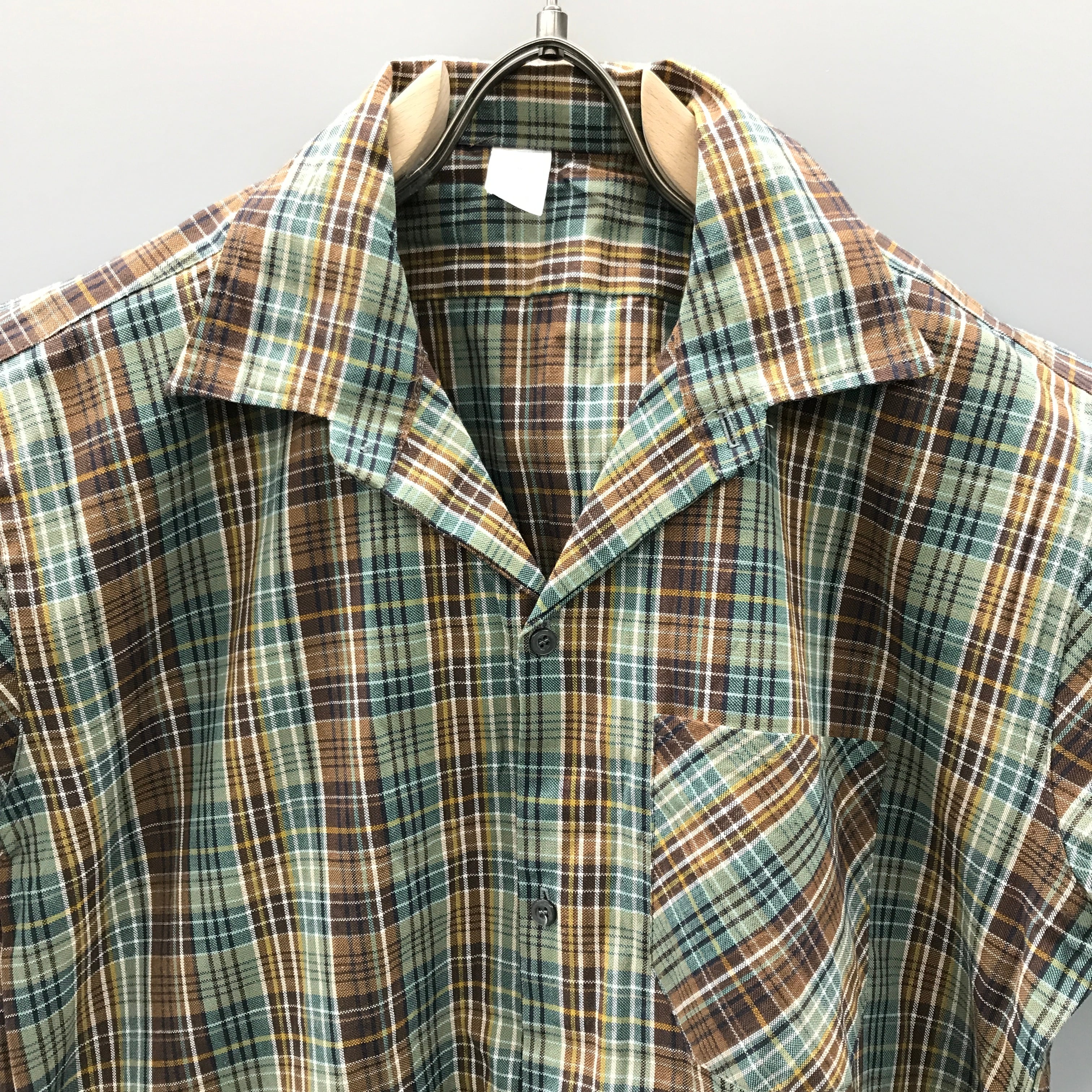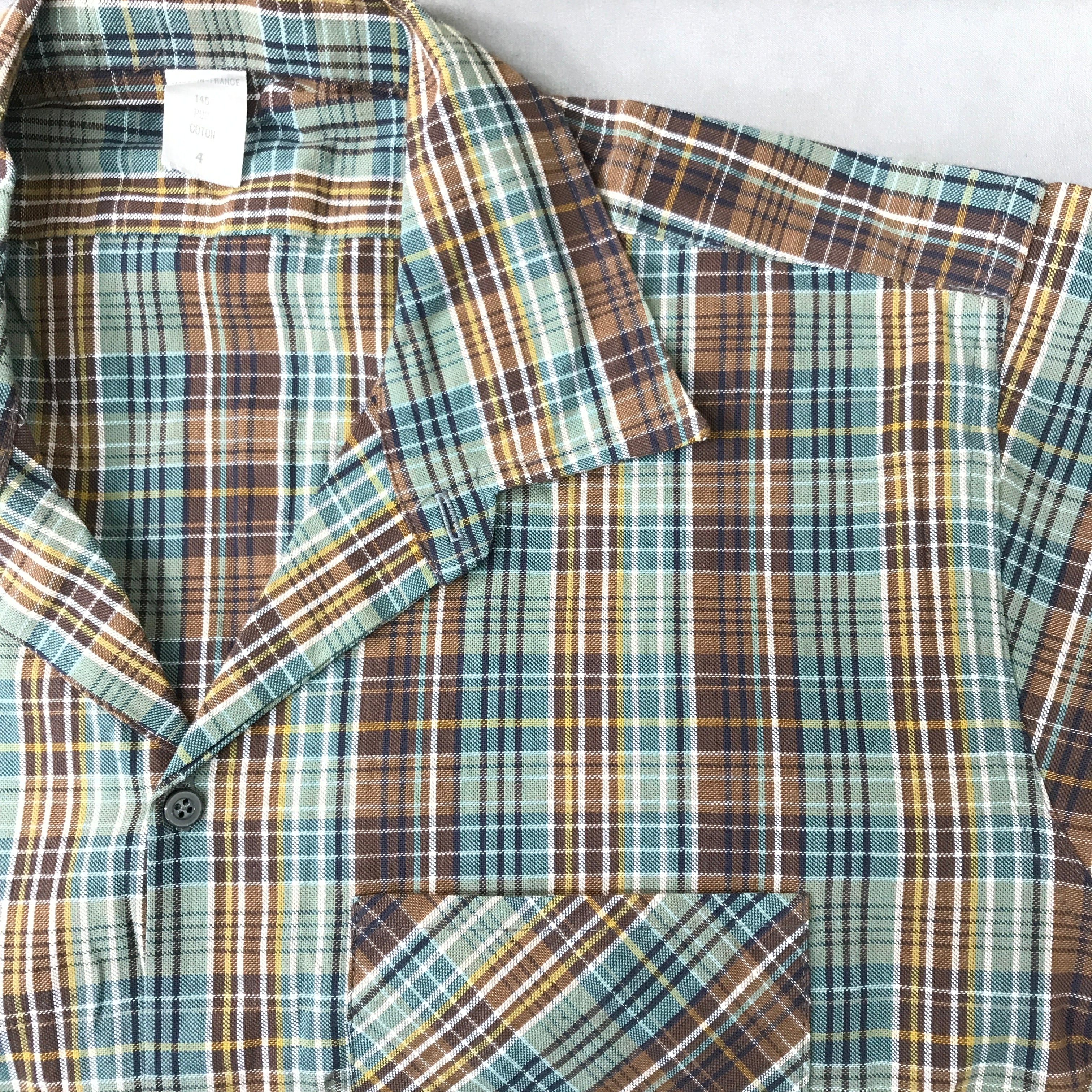 70年代前後 MADE IN FRANCE フレンチユーロ チェック柄 半袖 コットン プルオーバー ユーロ ビンテージ