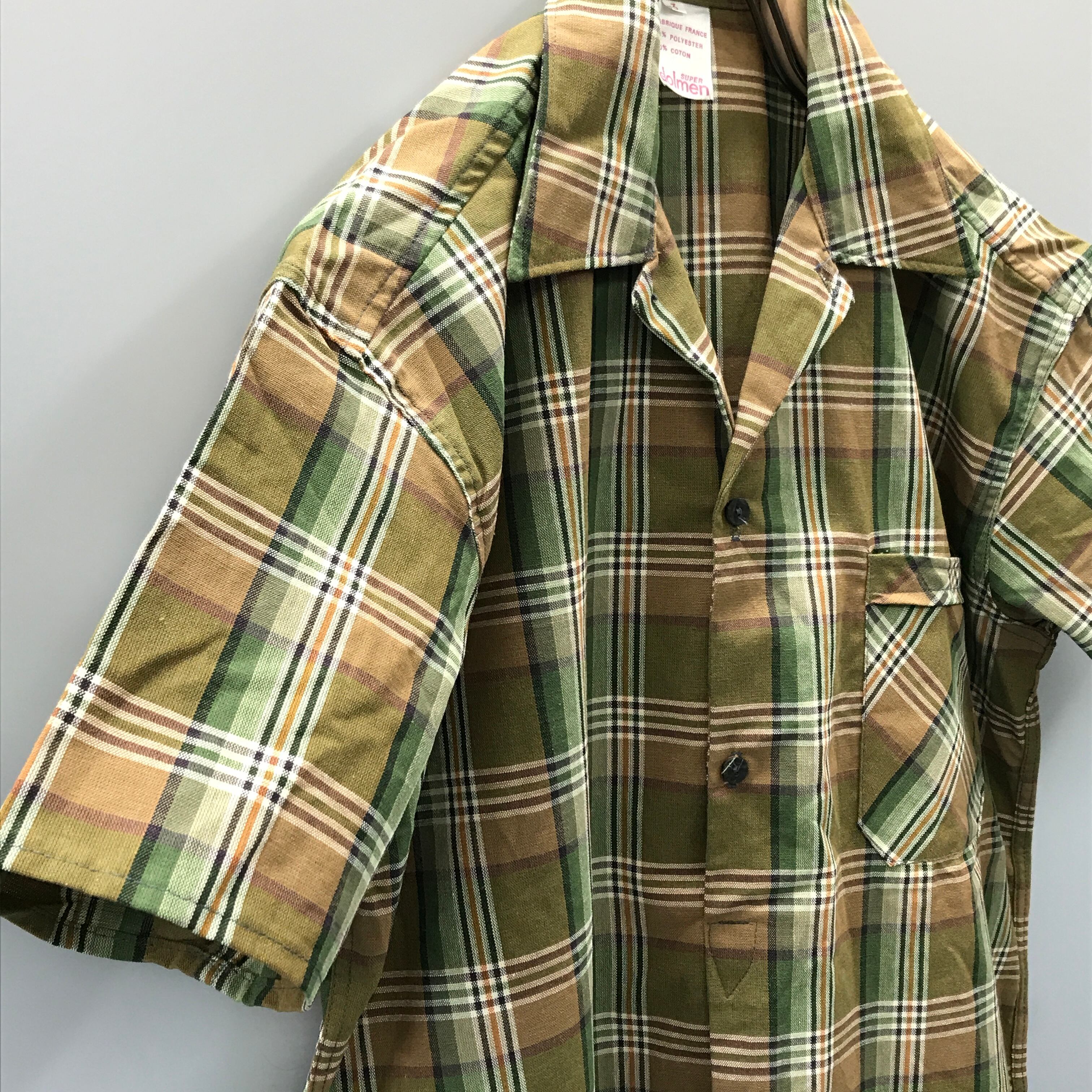 70〜80年代 FABURIQUE FRANCE dolmen ブランドフレンチユーロ チェック柄 半袖 コットン プルオーバー ユーロ ビンテージ