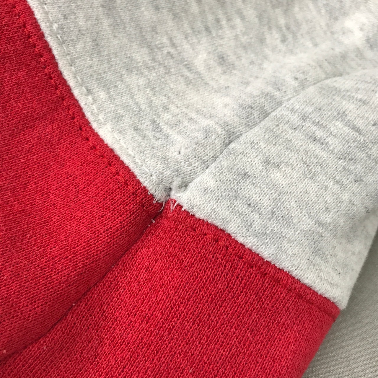 右脇赤いラインの端に糸ほつれをリペアした跡があります