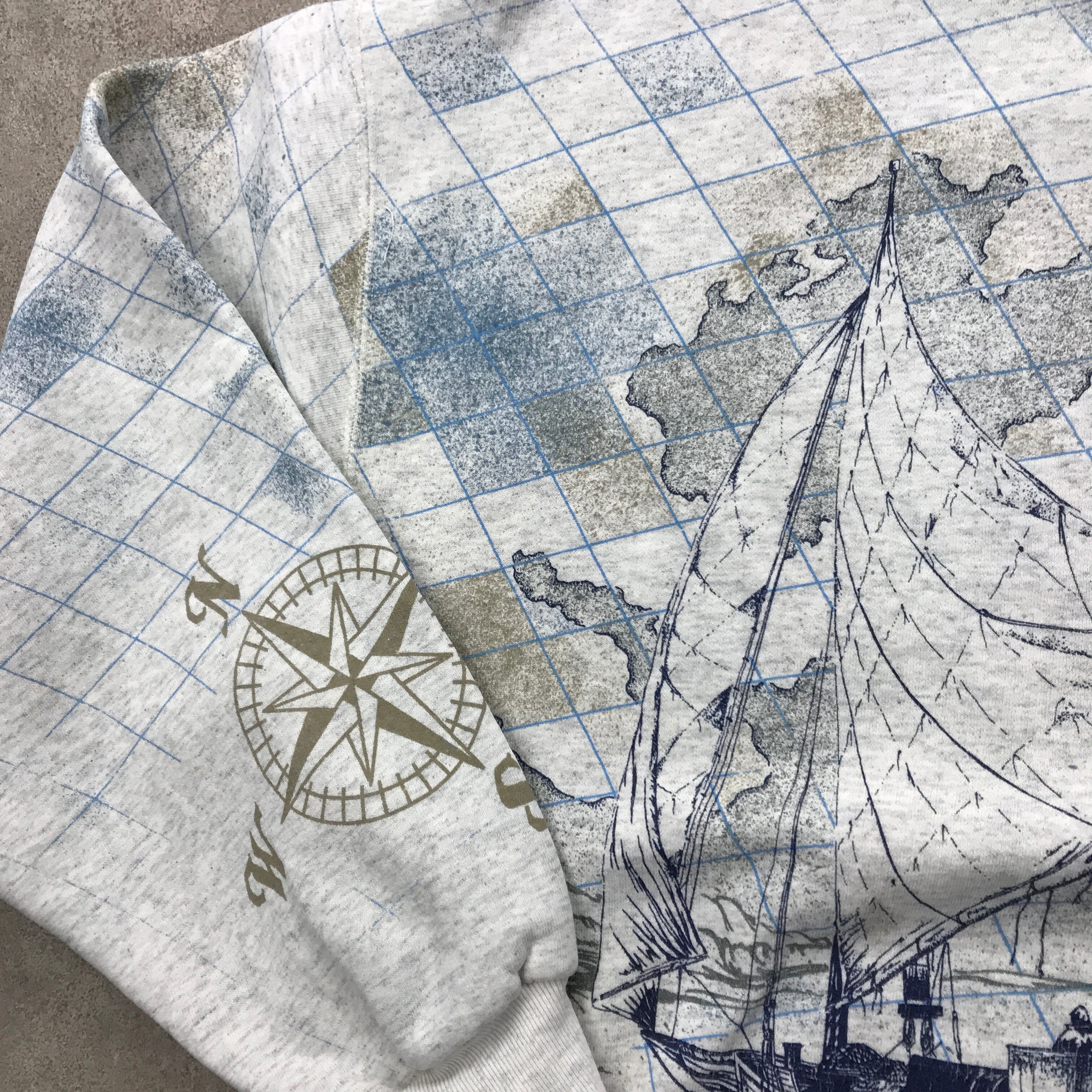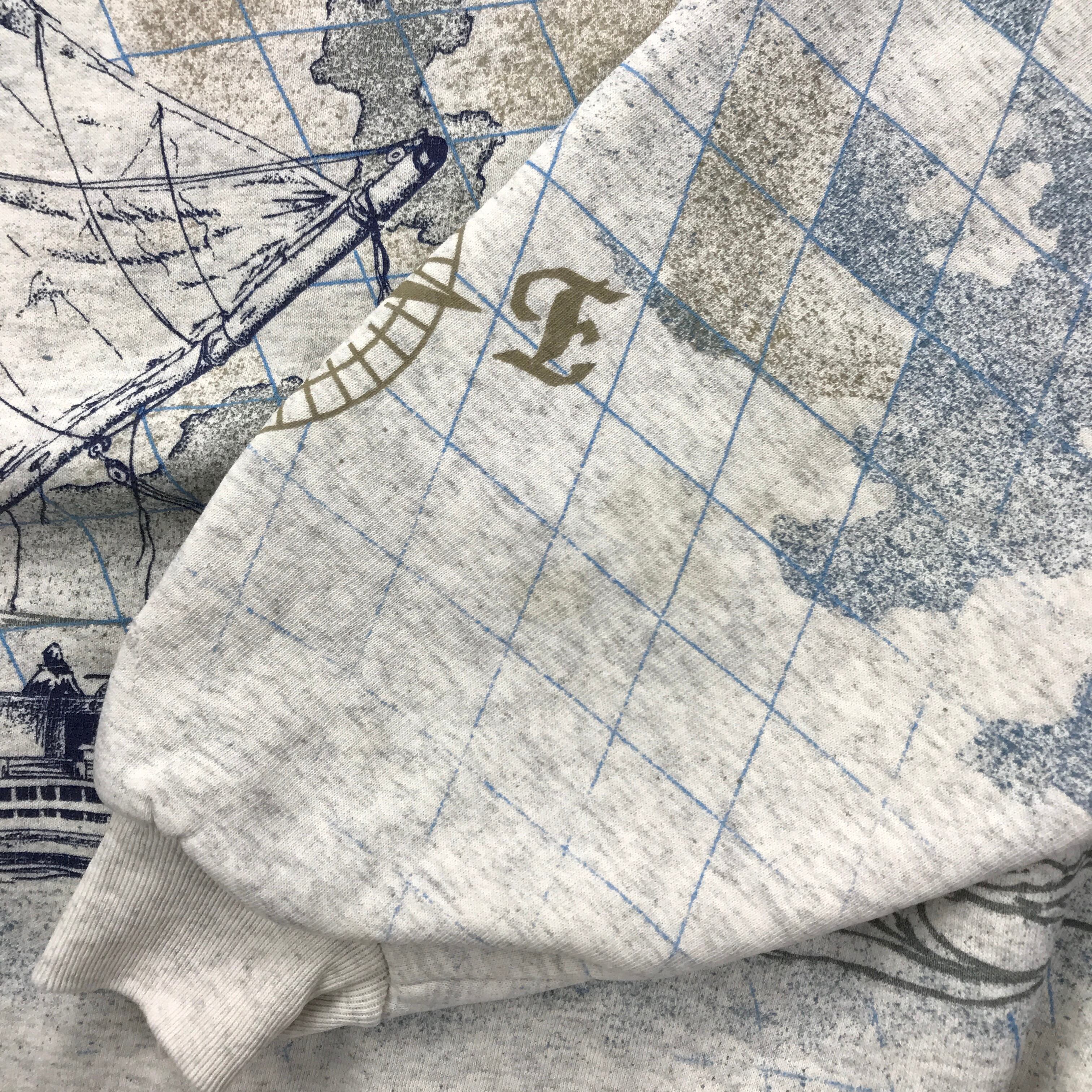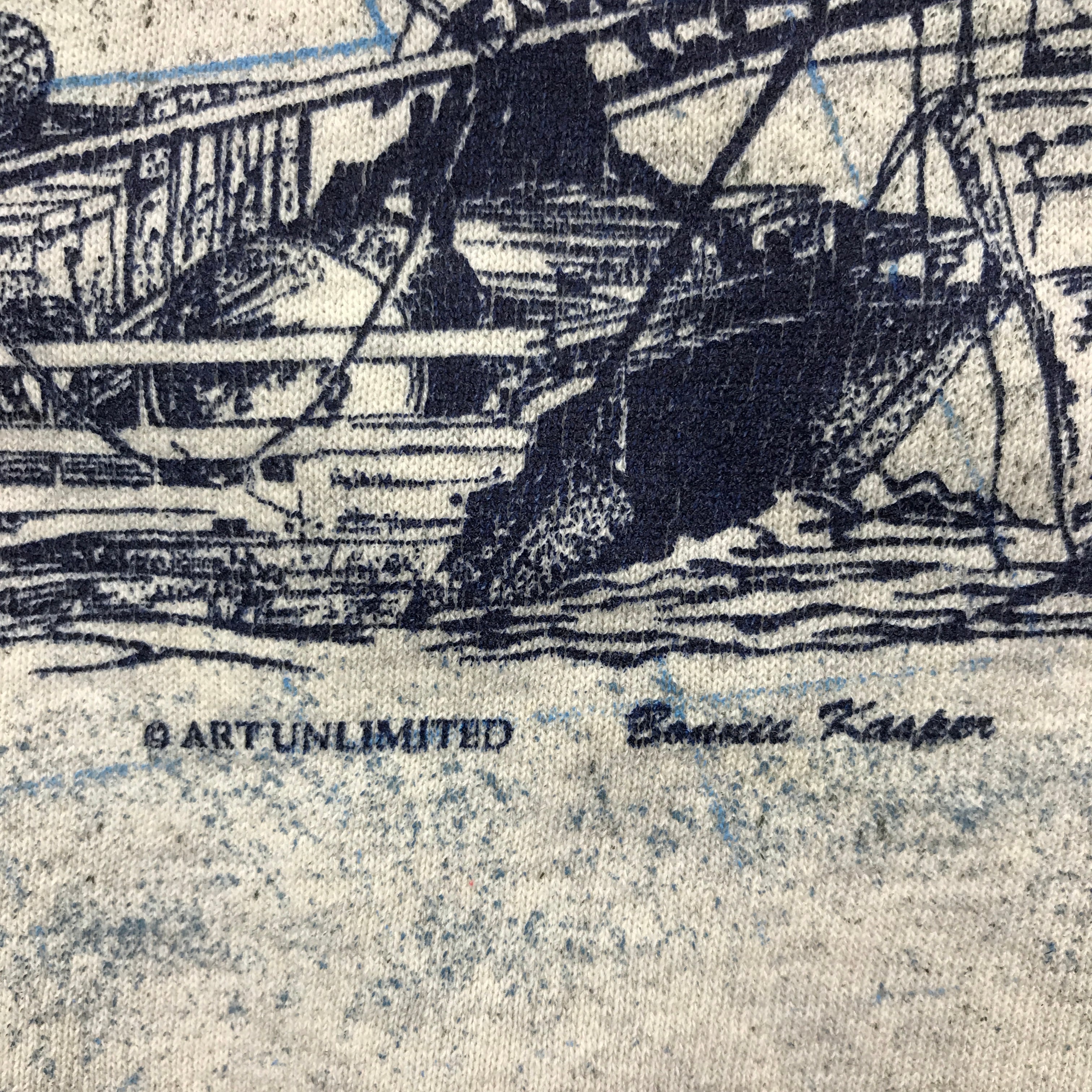80〜90年代 ART UNLIMITED SPORTS WEAR スタンドカラー ヘビーコットンスウェット 総柄ヨット柄