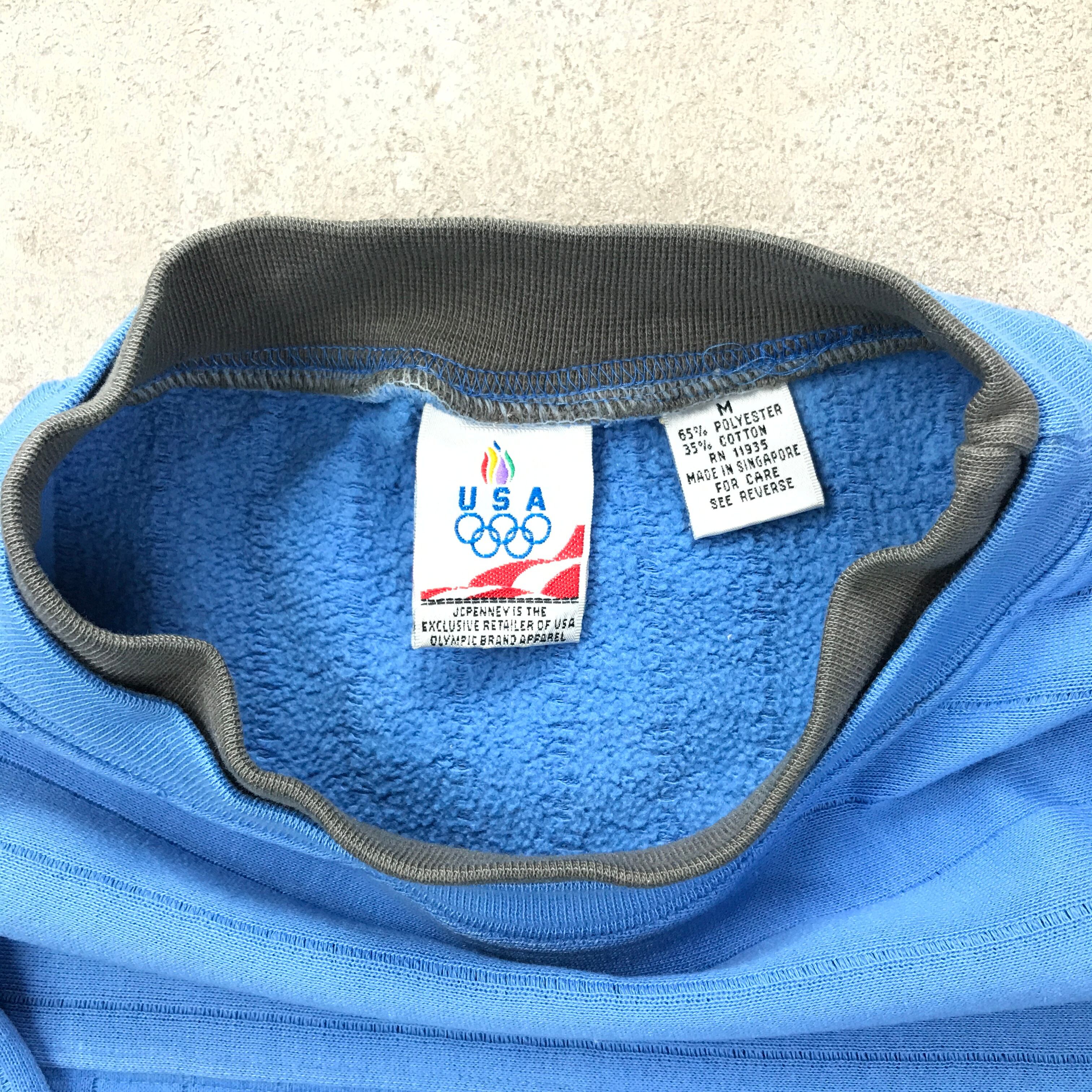 希少!80〜90年代レア 水色の変な生地のオリンピックスウェット7分丈 JCPENNY USA OLYMPIC ビンテージ リブスウェット フットボールタイプ