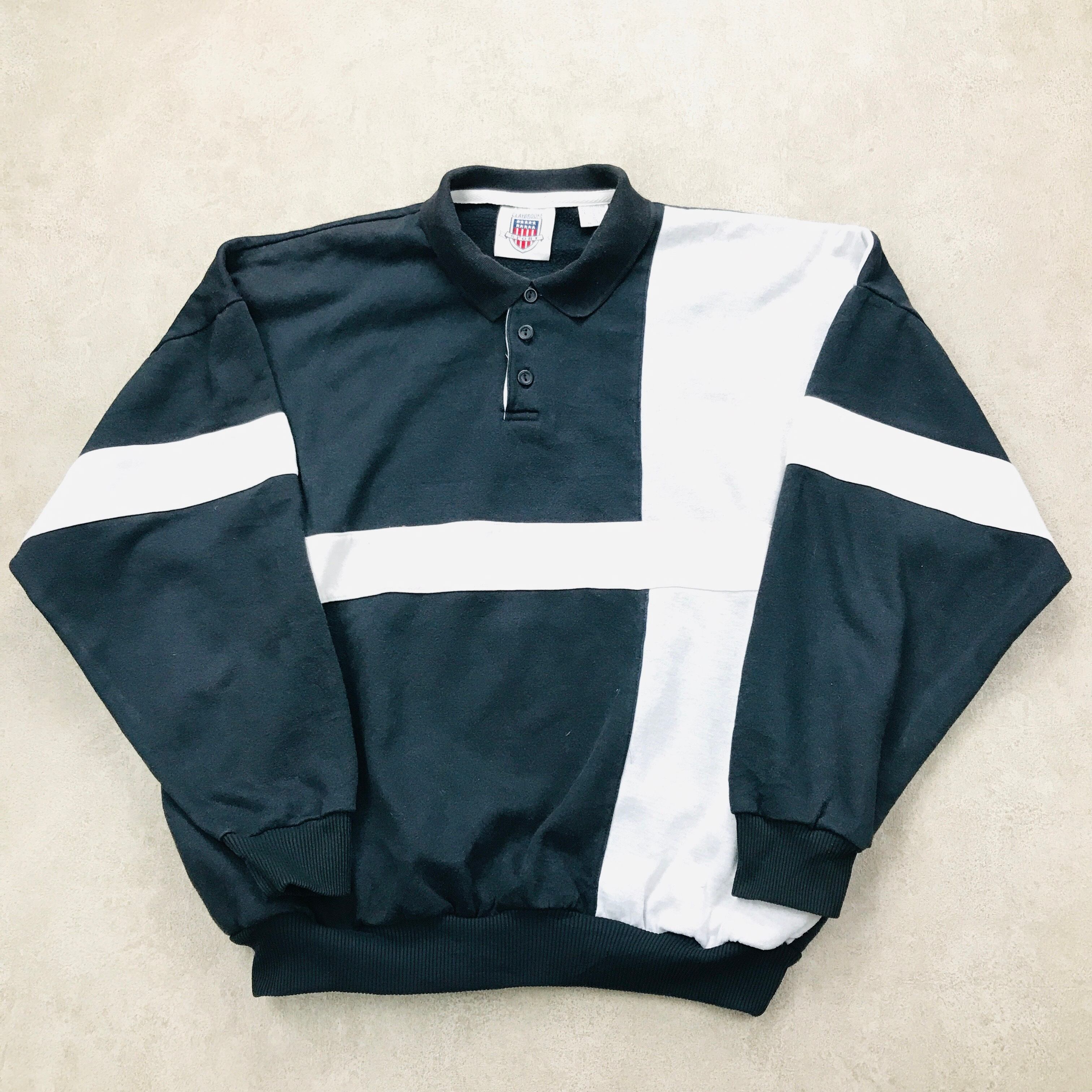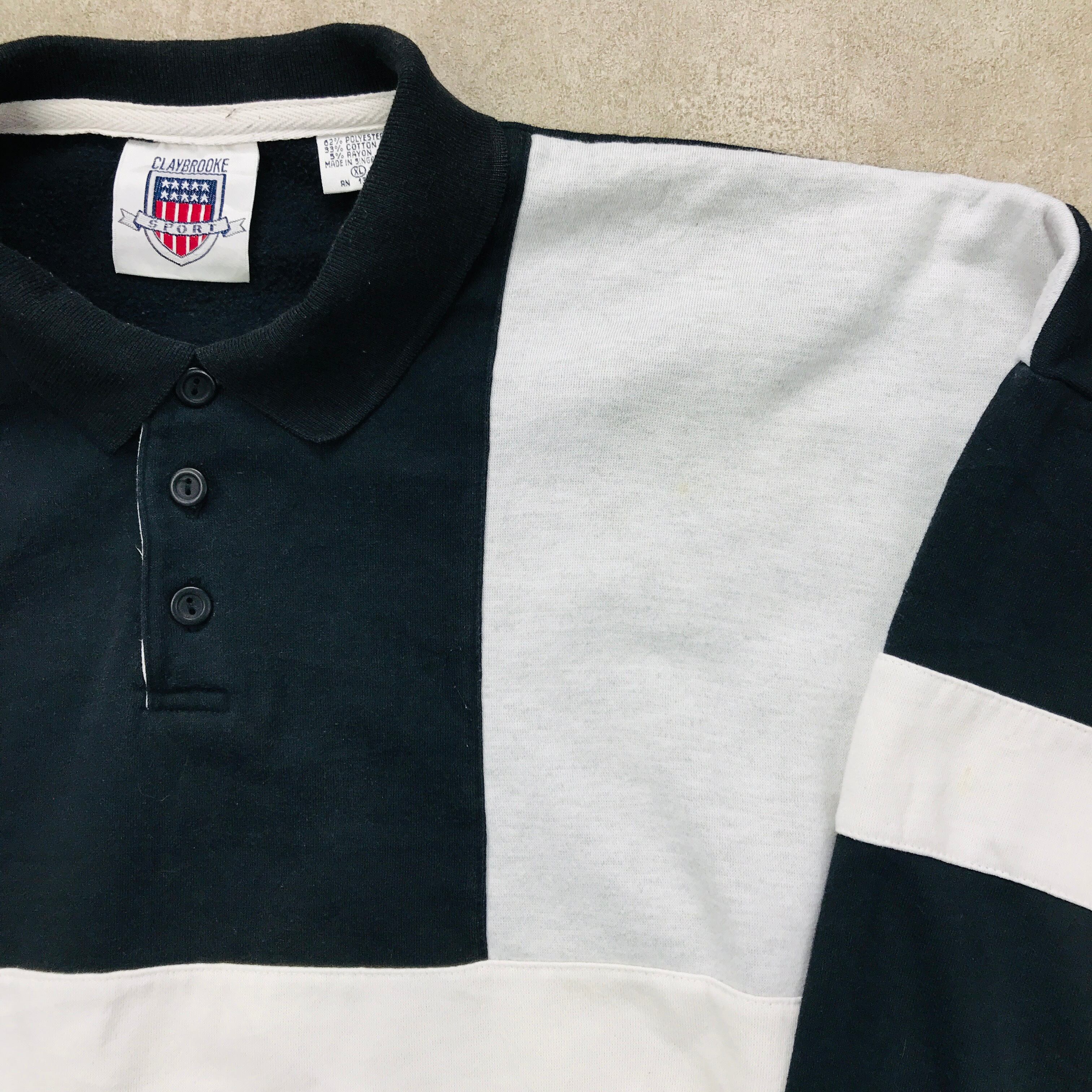 XL CRAYBROOKE SPORT 切り替えブロックスウェット ポロスウェット 白黒グレーコンビ