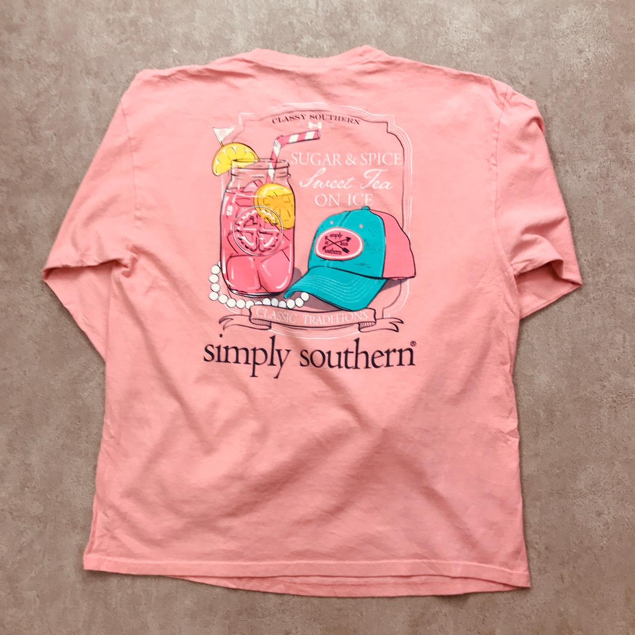 simply southern ピンクのカットソー ロンT SWEET TEA ON ICE!