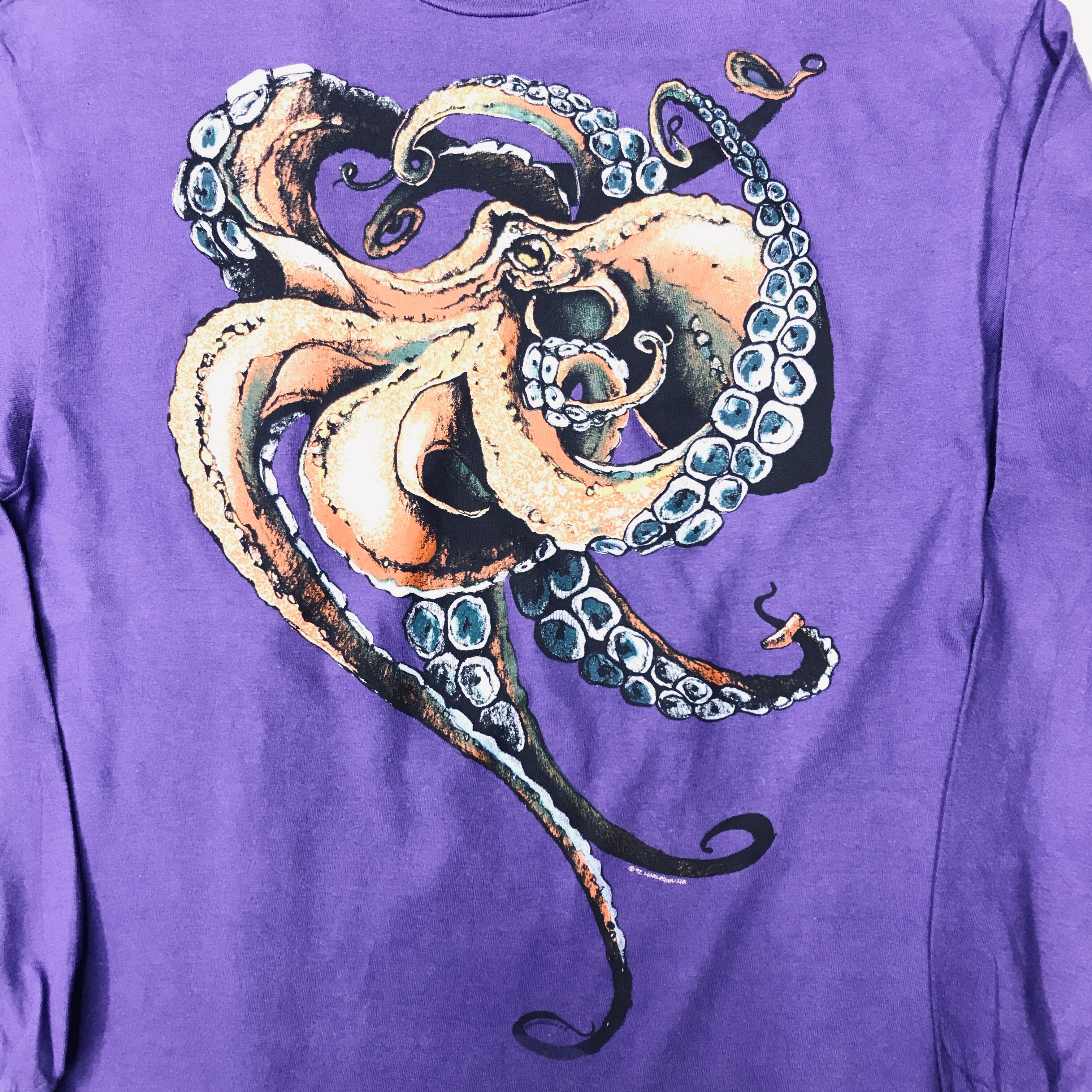 92年 HARLEQUIN オクトパスアートグラフィックプリント入り ロンT 古着 長袖Tシャツ 90's HARLEQUIN NATURE GRAPHICS アニマルプリント Tシャツ