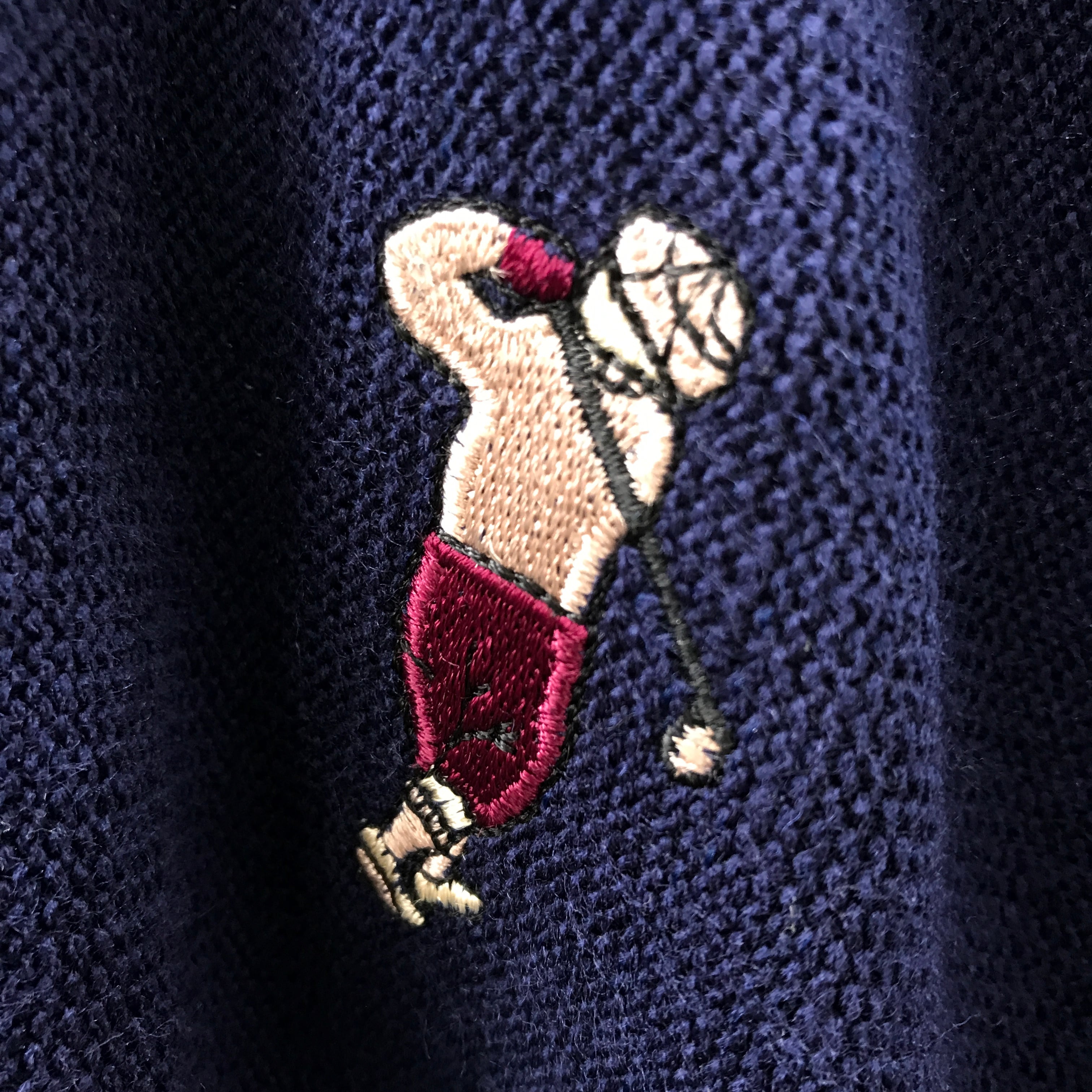 アクリルカーディガンネイビー ゴルファ刺繍入り