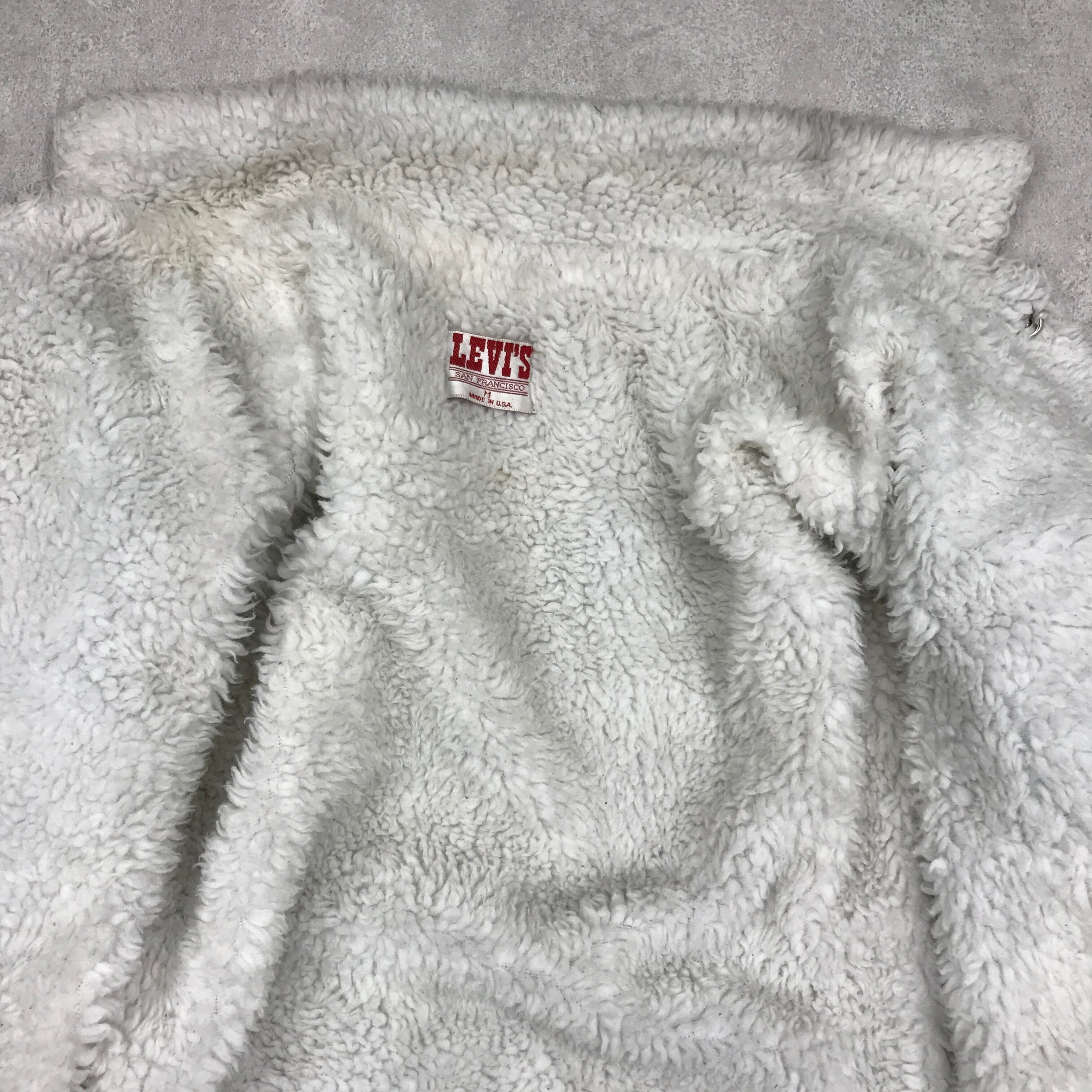 80年代 リーバイス USA製 ボワデニムジャケットです。ケミカルウォッシュ加工物でガッツリ着用感もあり、当然汚れも破れも有ります。左袖と腹部、襟周りなど、写真でご確認ください。