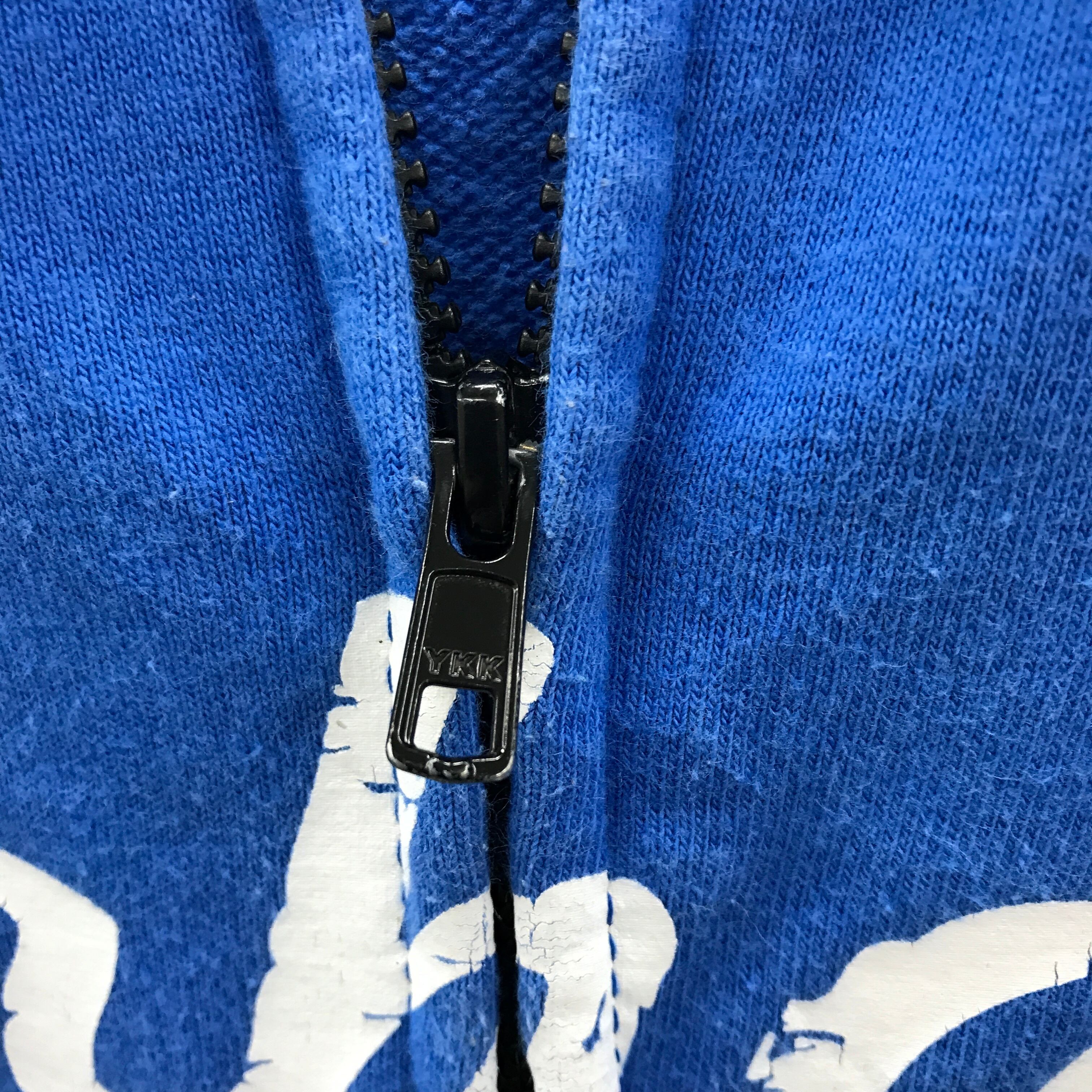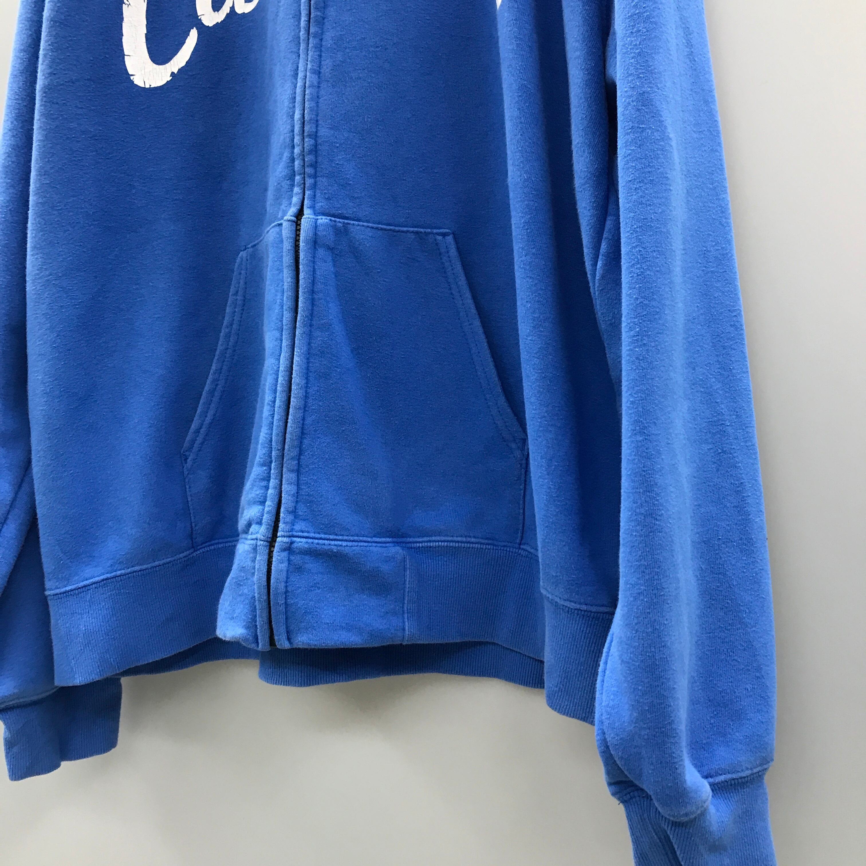 BIGサイズ!カーハートのデカルゴプリントジップパーカーです。全体的に着用感が御座います。穴は見受けられませんが全体的に洗い晒しの色あせ等ございます。中地はパイル地です。