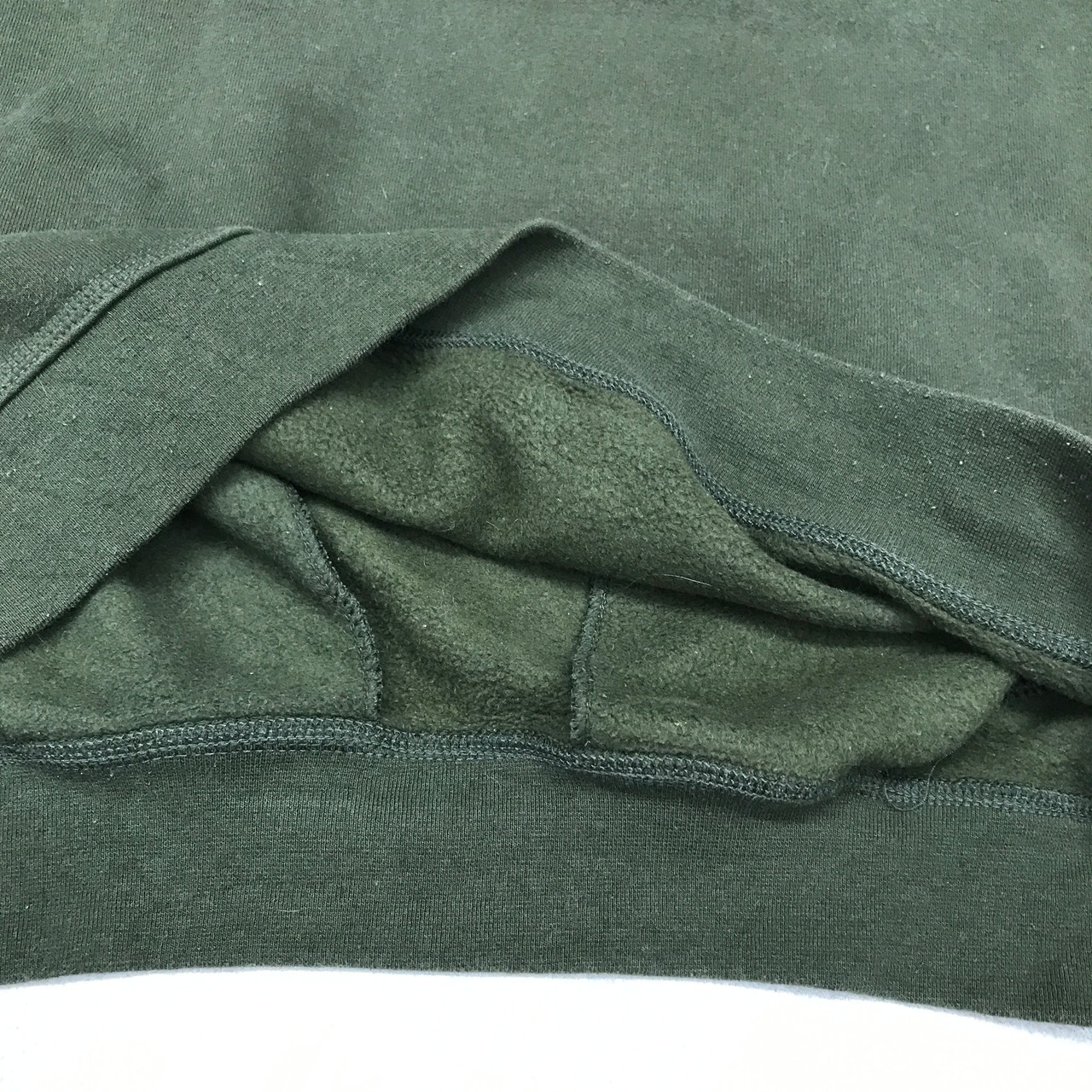 数が少ないハーフジップです。しっかりとしたジッパーと生地で中地は起毛です。着用感は御座いますが目立つ汚れや穴などは見受けられません。ゆったりとしたシルエットです。