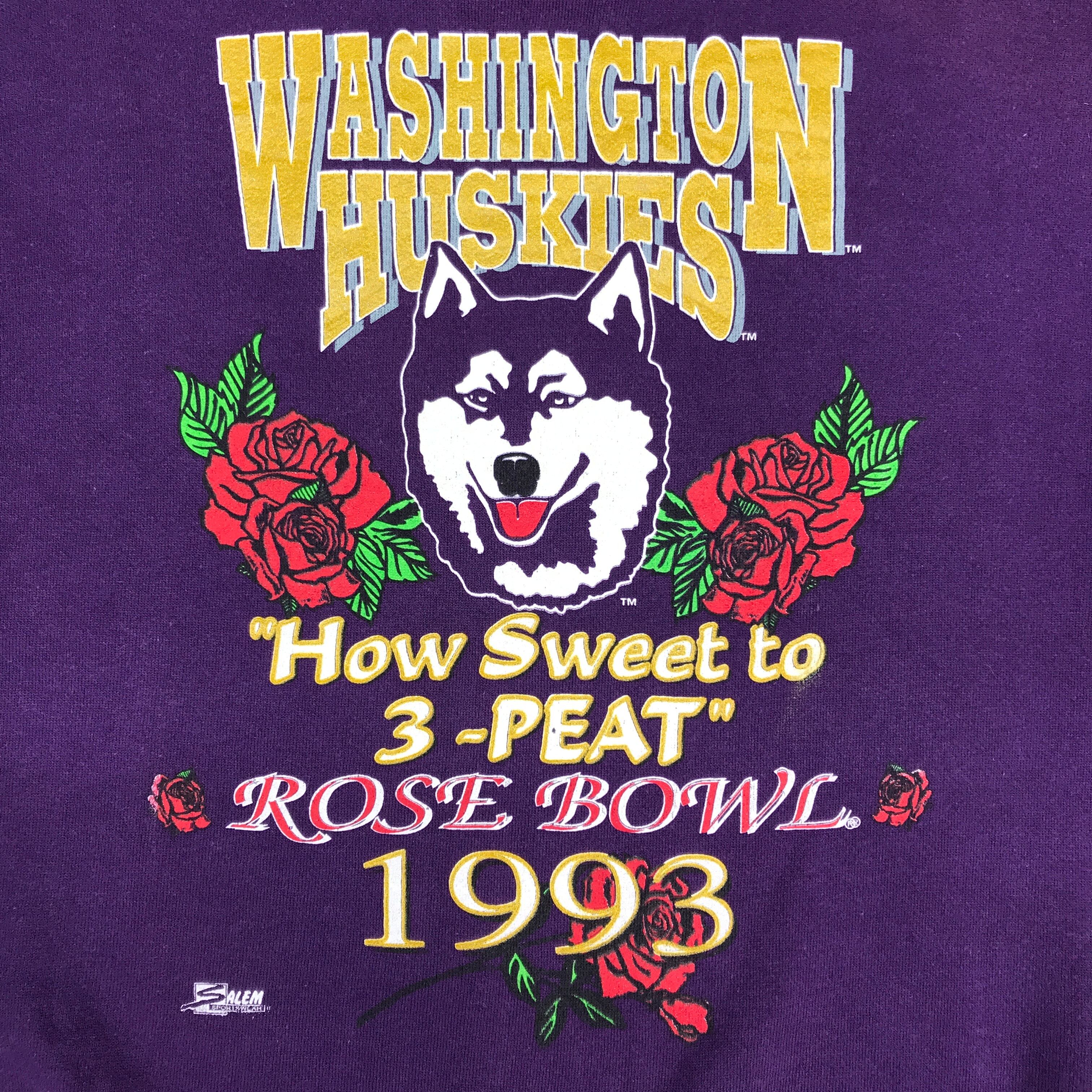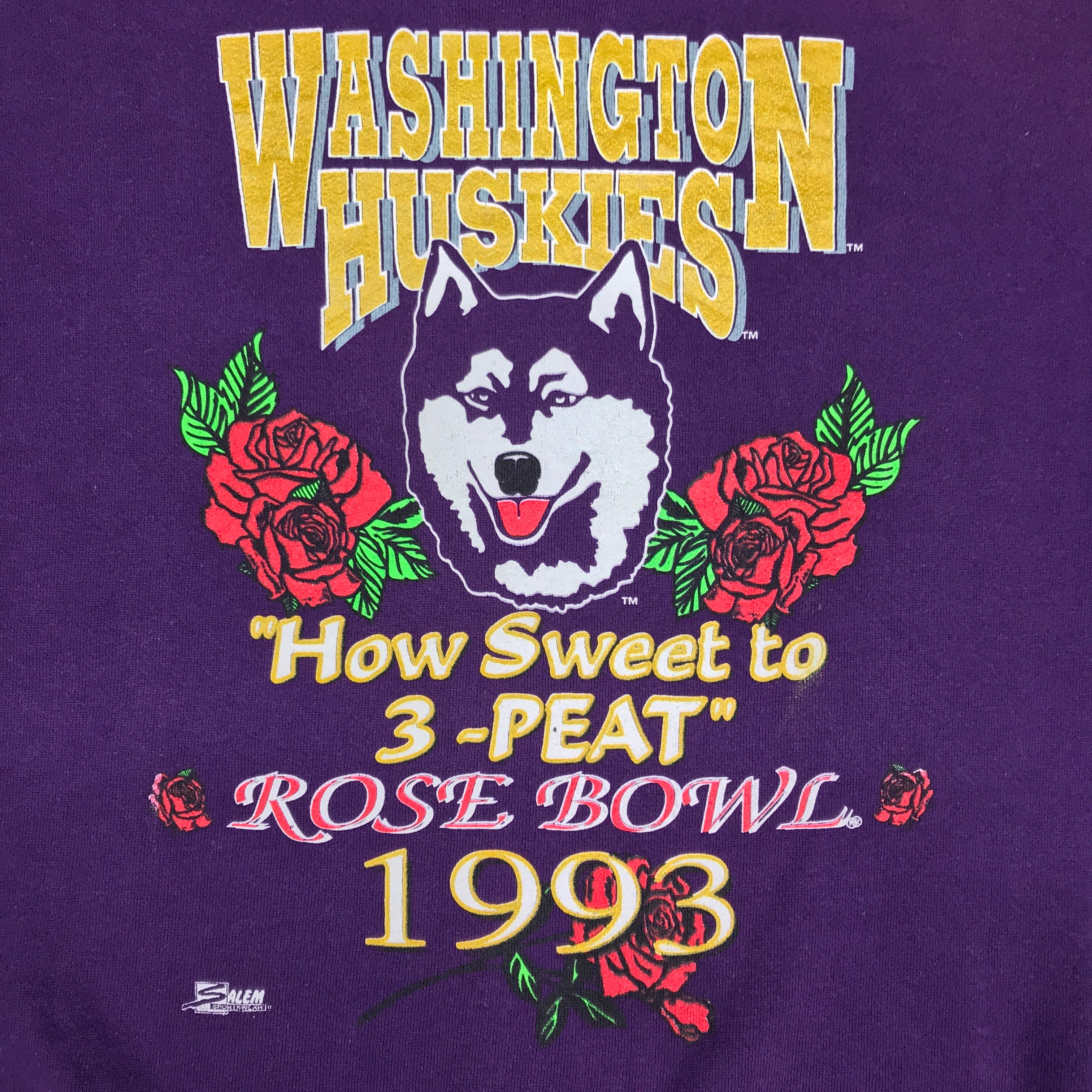 1993年 USA製 WASHINGTON HUSKIES カレッジプリント スウェットトレーナーです。綺麗な配色ですよ。古着っぽい着用感、色あせは御座いますが、目立つ汚れや穴は見受けられません。裏地は起毛です。
