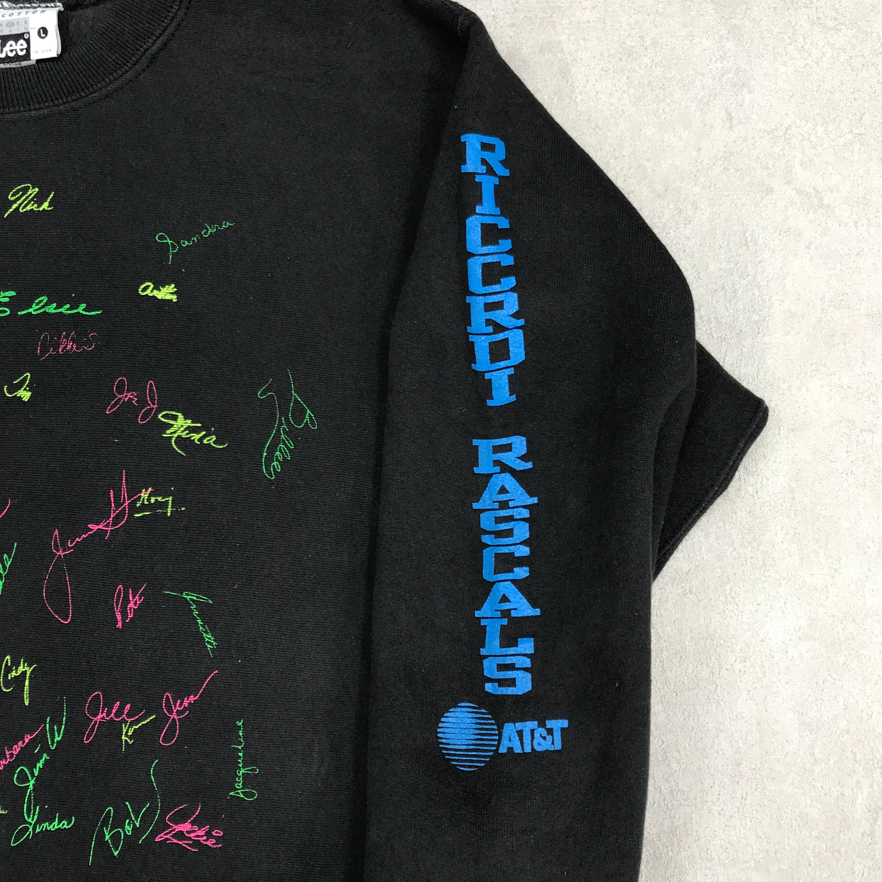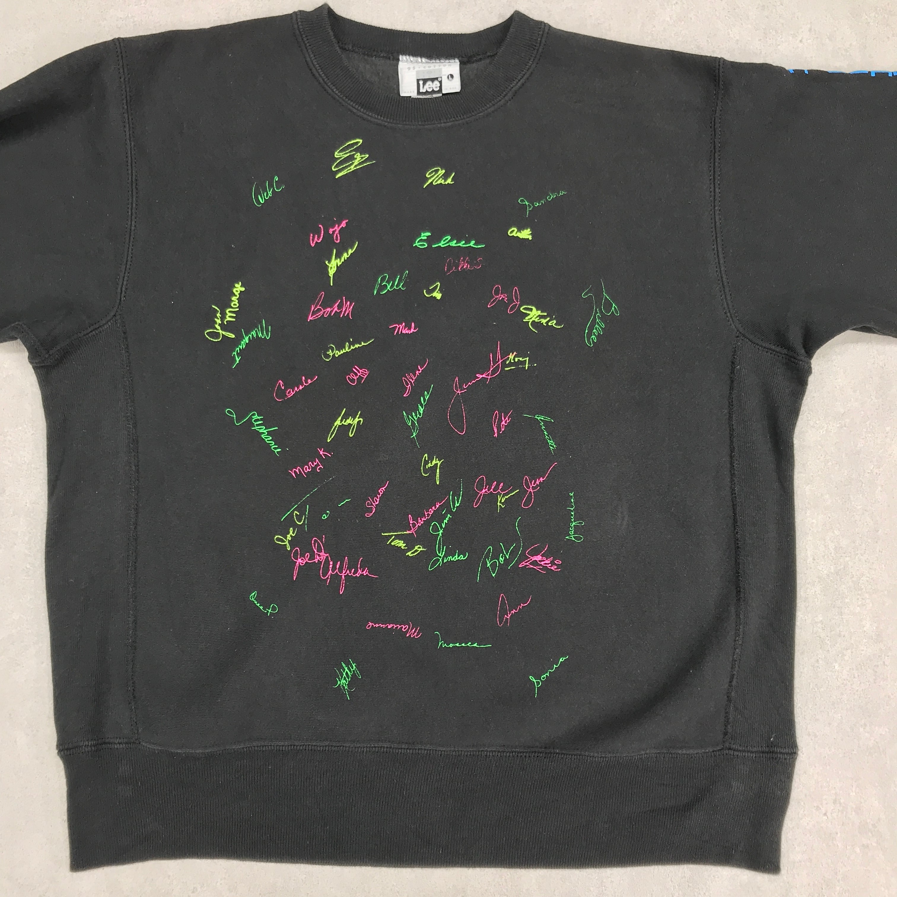90年代頃のUSA製Leeのスウェットです。プリントの意味は解らなかったんですが全体的にセンスのいいプリントです。ちなみにアームのAT&TのロゴはNASDAQ上場企業の電話会社です。いい塩梅で色あせしていますが目立つ汚れキズは見受けられません。見落とす場合もございます。