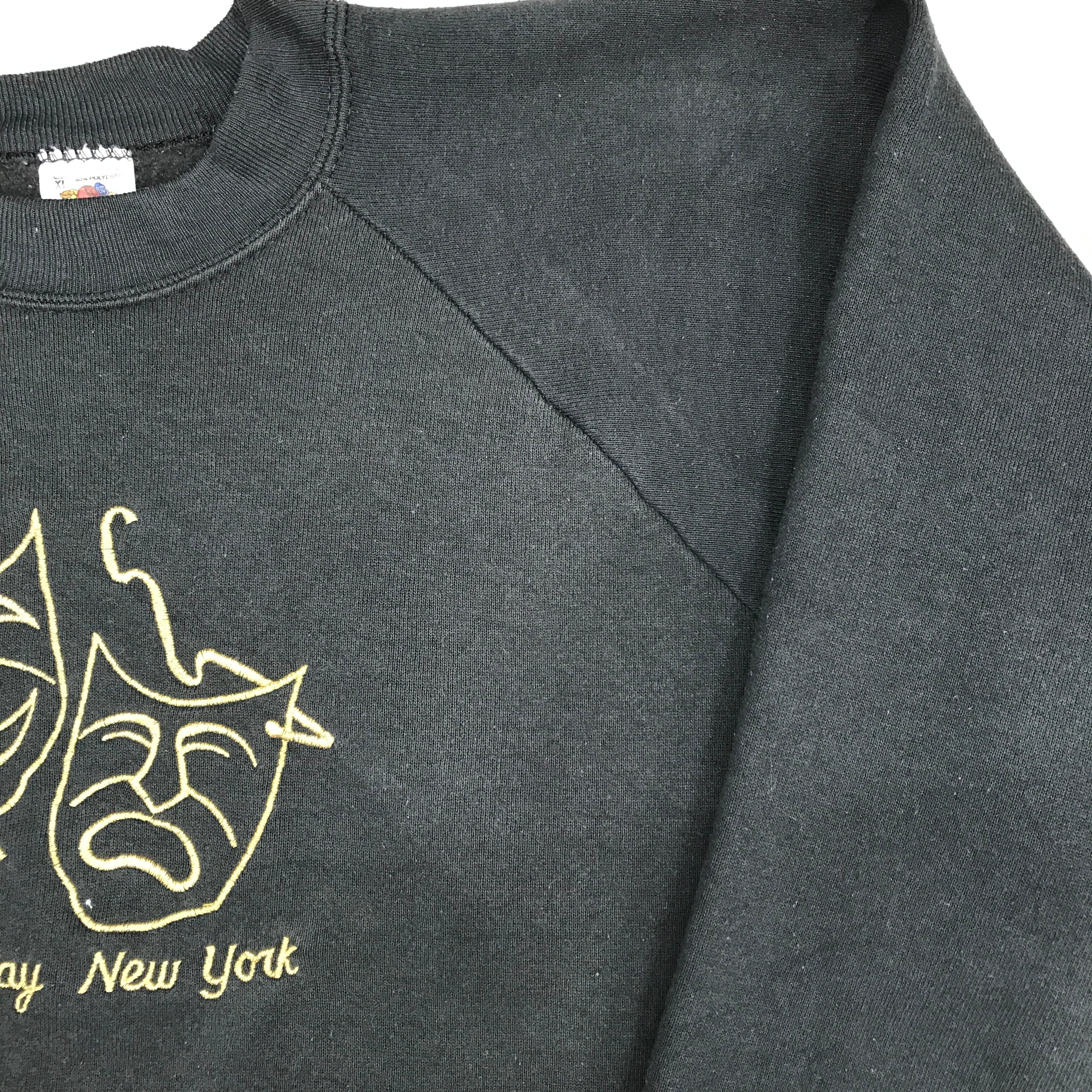 80〜90年代 BROADWAY NEW YORK TWO FACE ゴールド刺繍入り ラグランスウェット ブラック