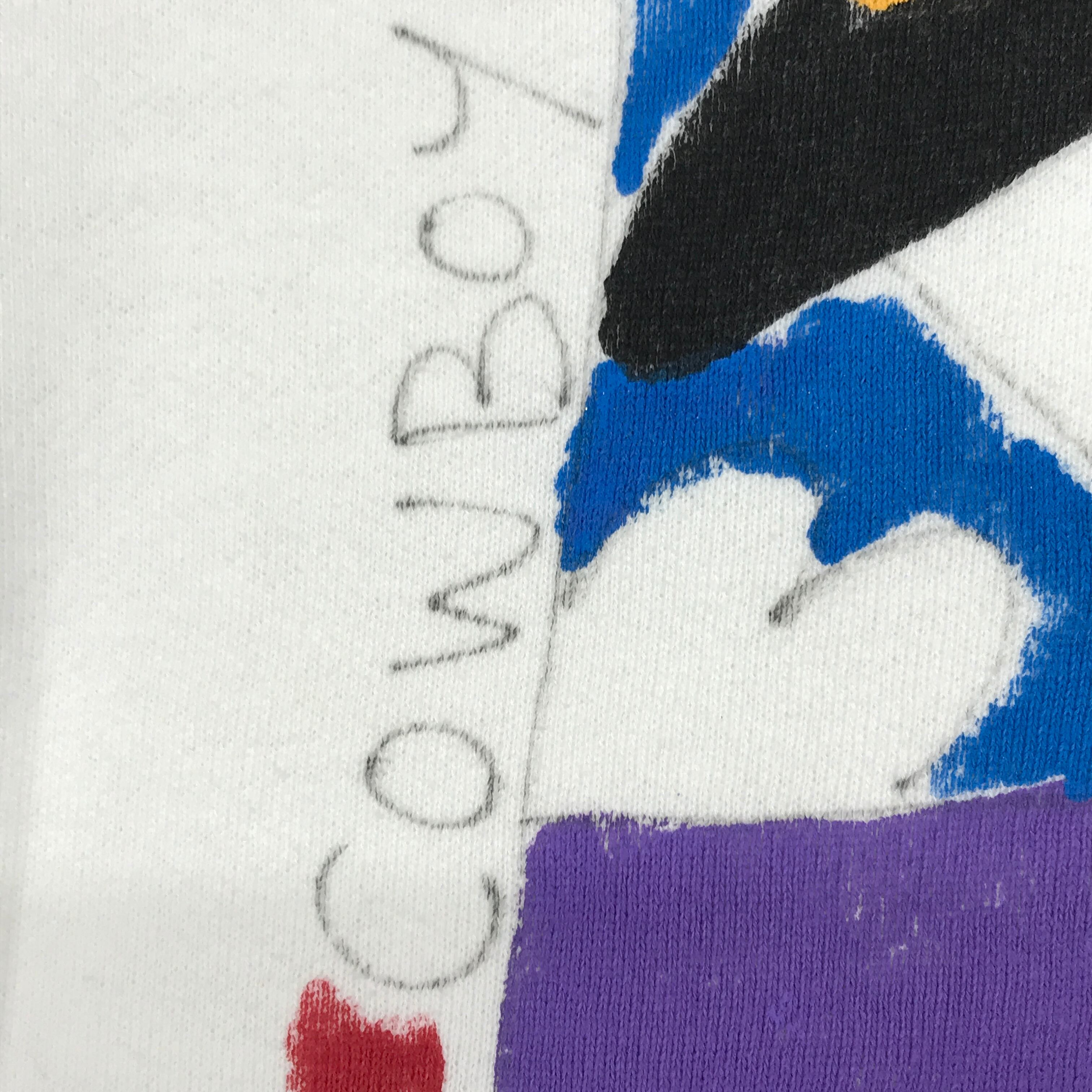 80〜90年代サイレントフィッシュ Silent Fish COWBOY柄 ヴィンテージ Tシャツ HAND DRAWING 風 手描き??ホワイト ヘビーウェイト セットイン スウェット
