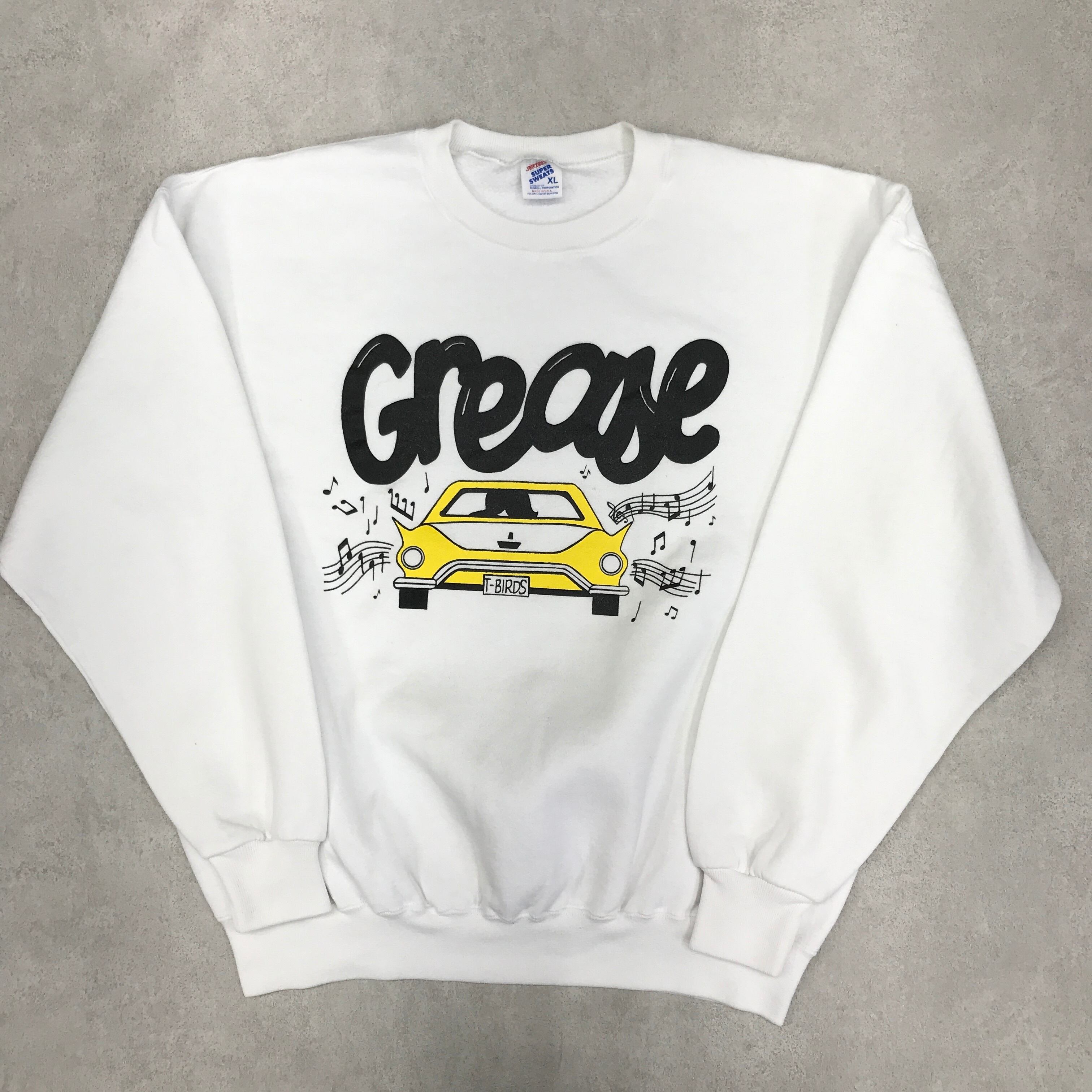 80〜90年代 USA製 ' GREACE ' テールフィンアメ車 プリント ホワイトスウェットNovi High School P.A Department