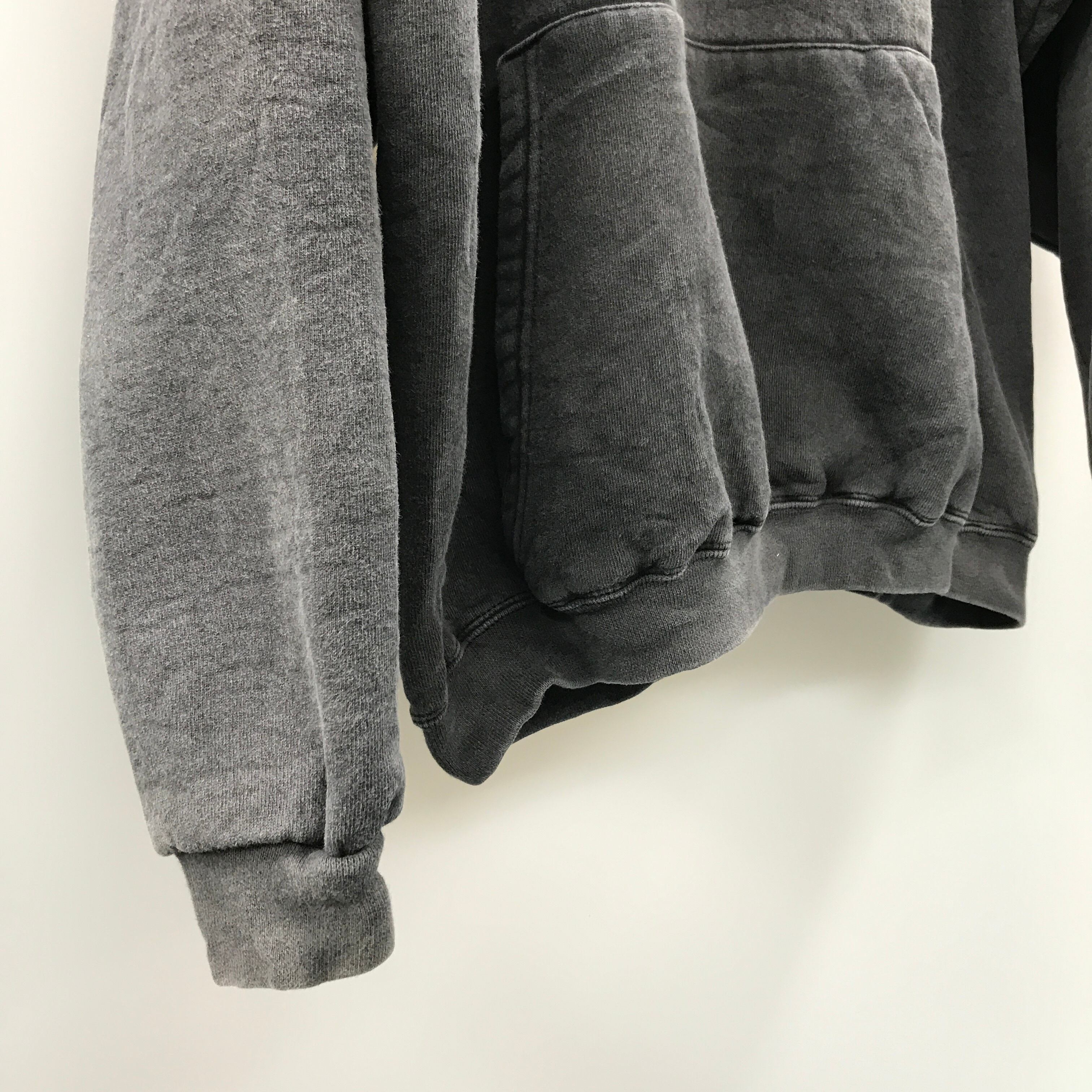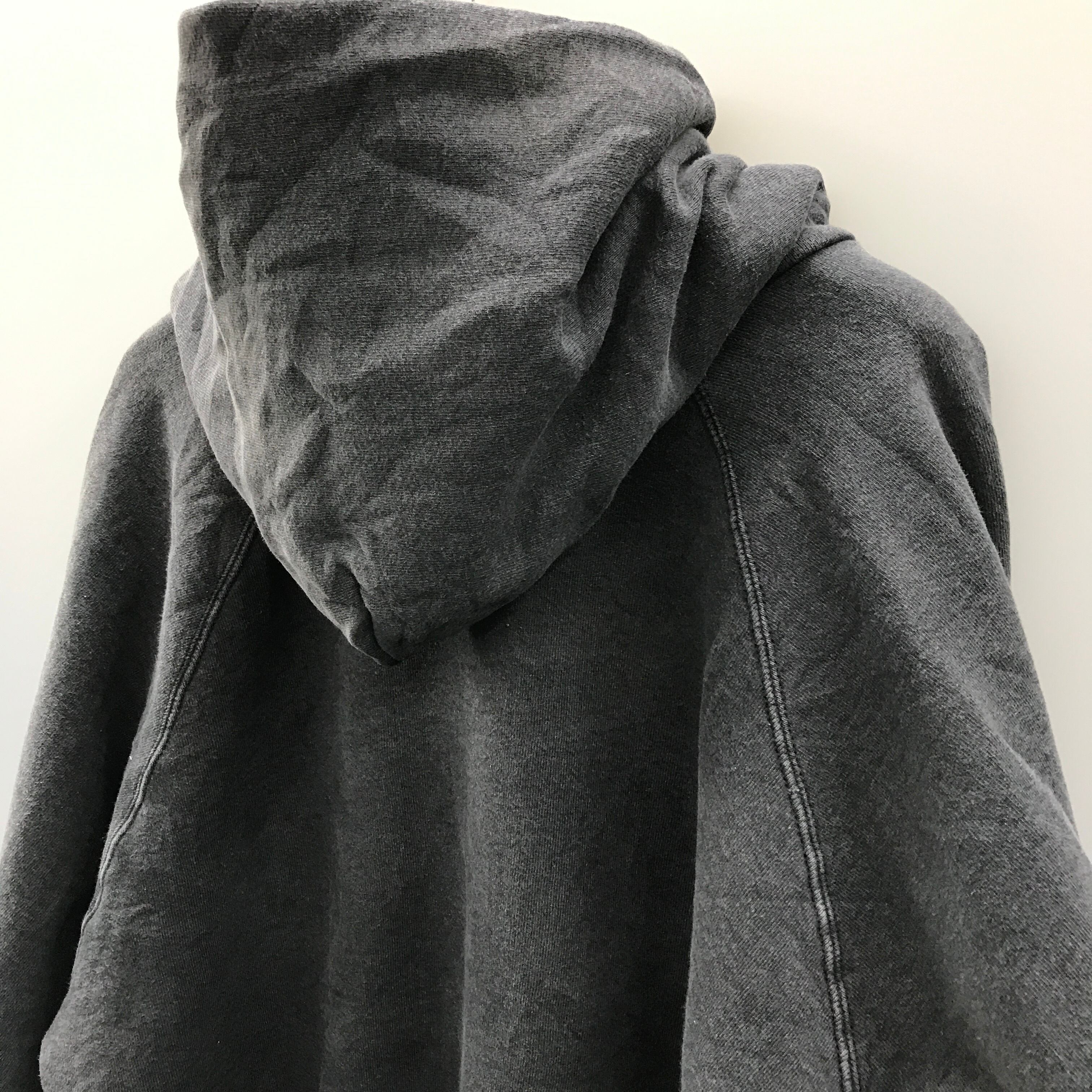 80s後半のUSA製アディダス万国旗タグ、ロゴ刺繍パーカーです。お色がグレーで色が褪せています。胸のトレフォイル刺繍とのバランスがいいです。90年代のラッパースタイルにいかがでしょうか。目立つシミやイタミは無いですが着用感はあります。