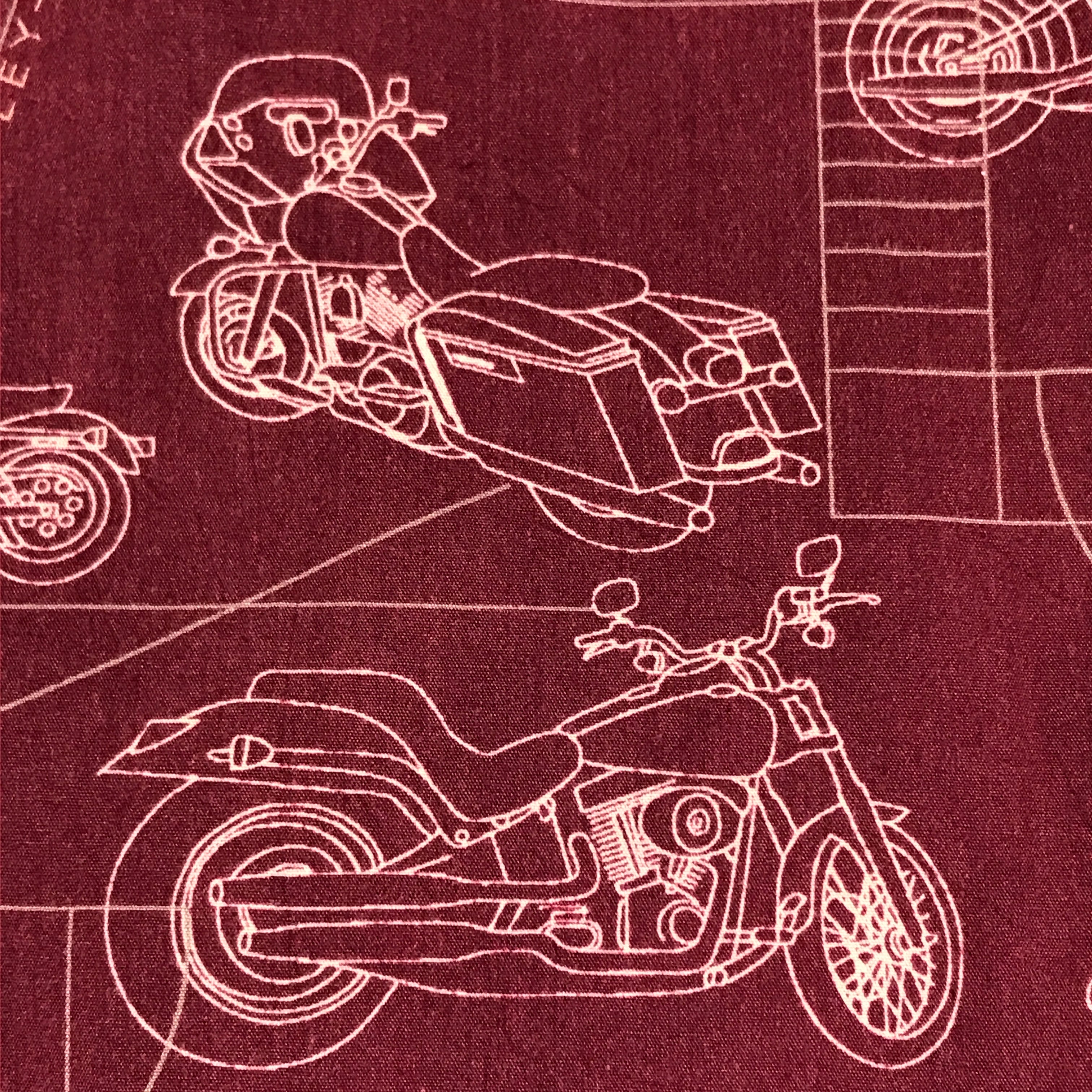 品のあるバーガンディーカラーび線画のバイクとデザイン模様・・
