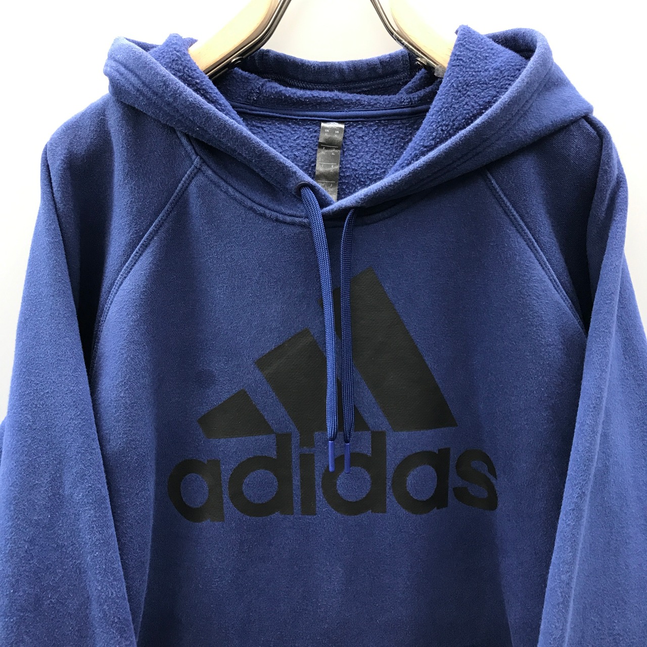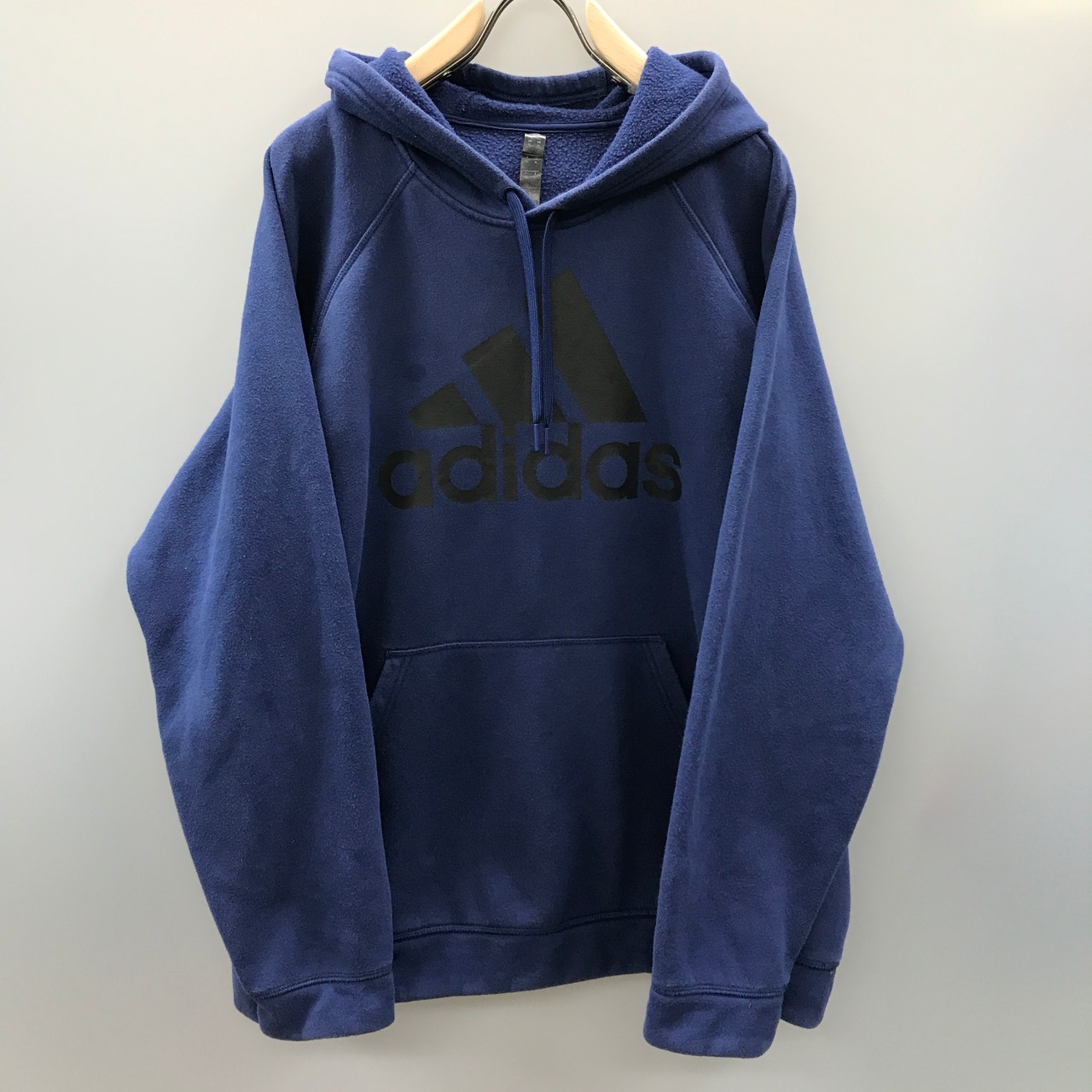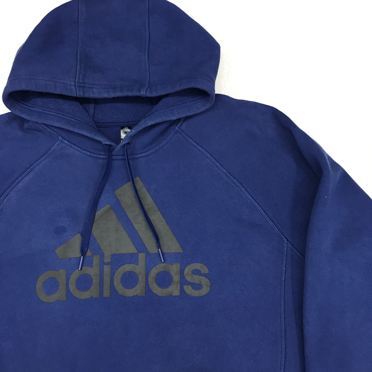 訳あり ADIDAS アディダス ラグランフードパーカー パフォーマンスロゴ ブルーネイビー
