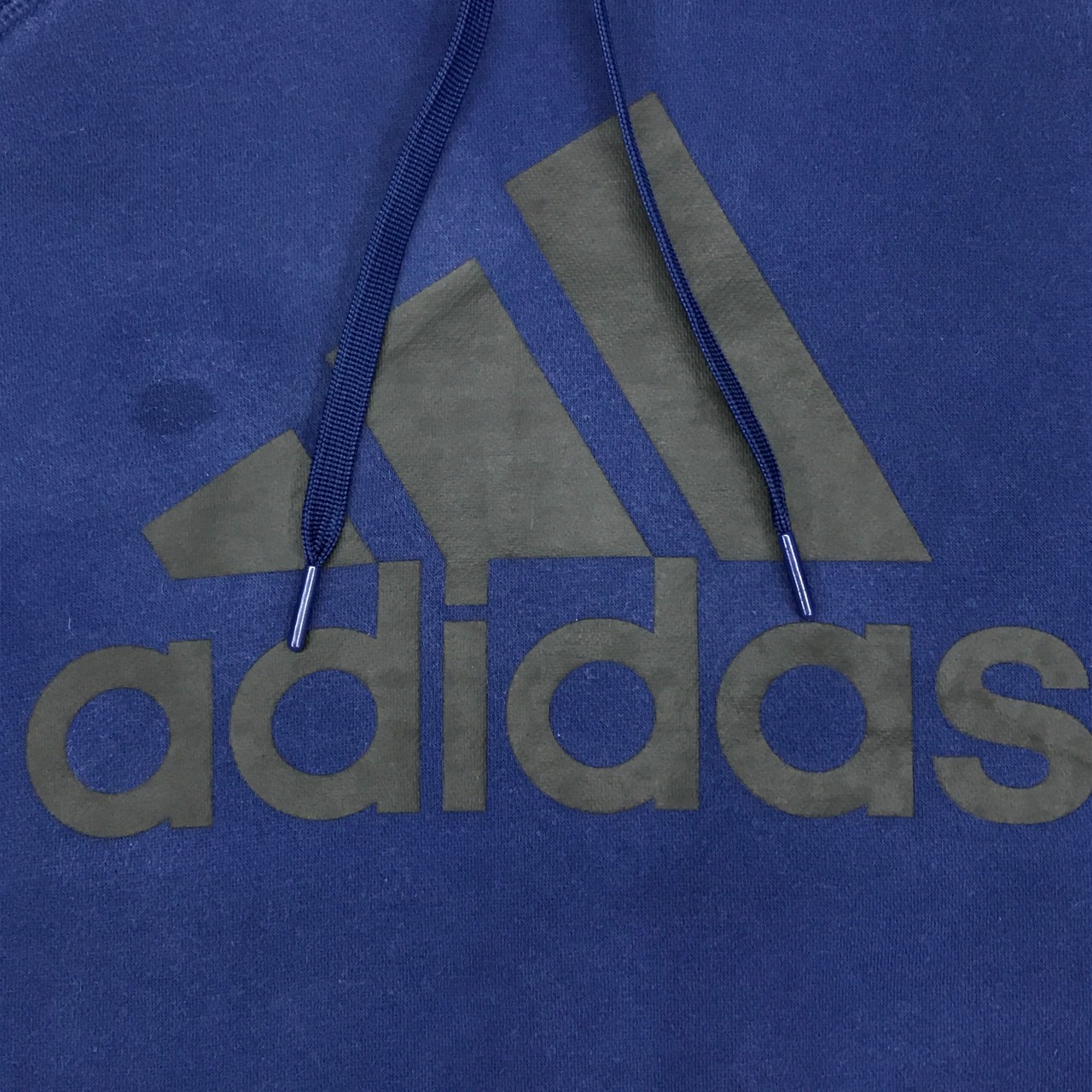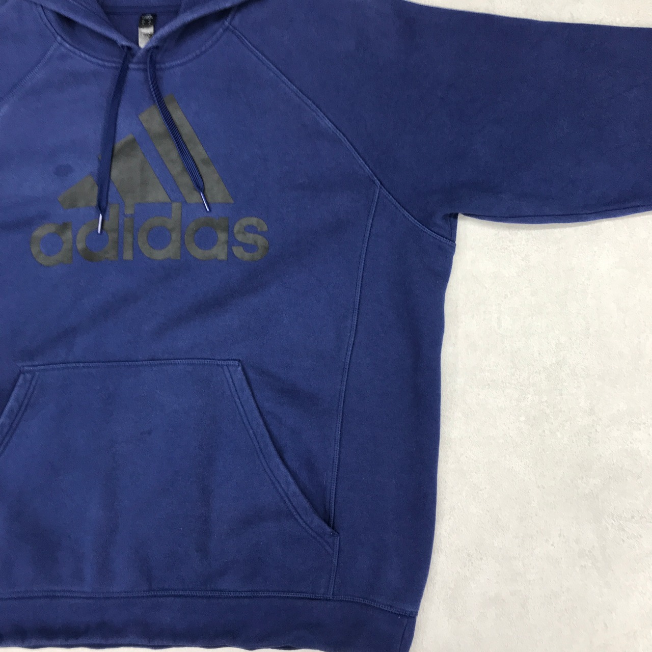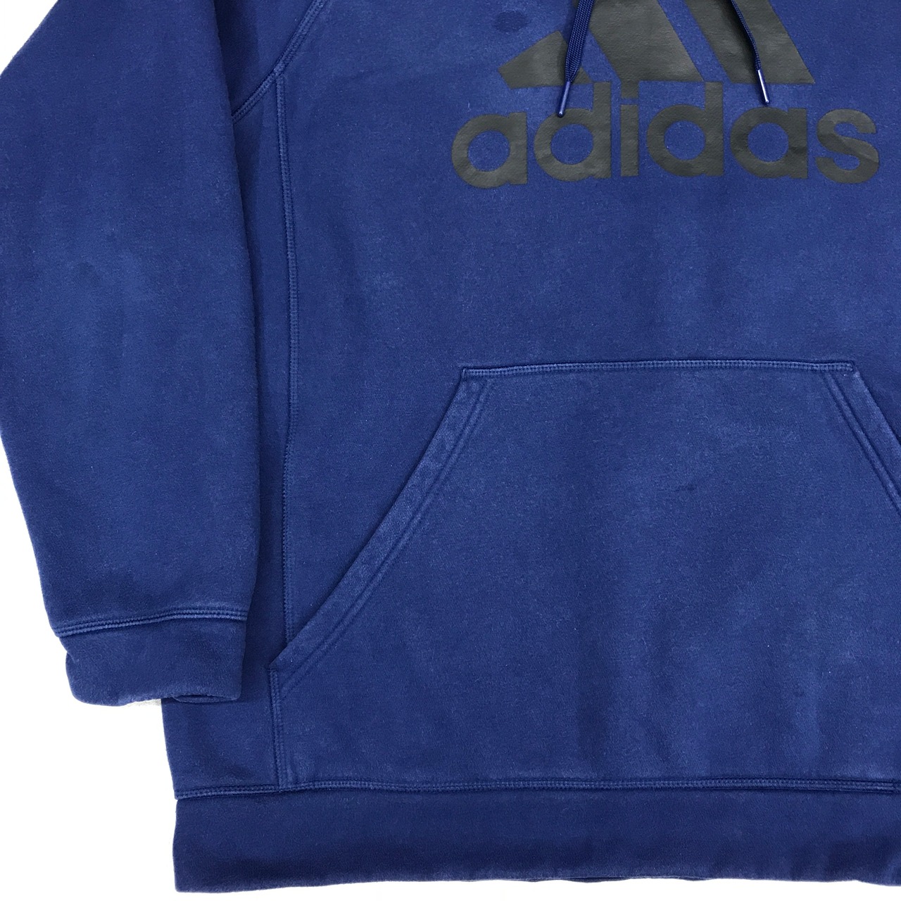 訳あり ADIDAS アディダス ラグランフードパーカー パフォーマンスロゴ ブルーネイビー