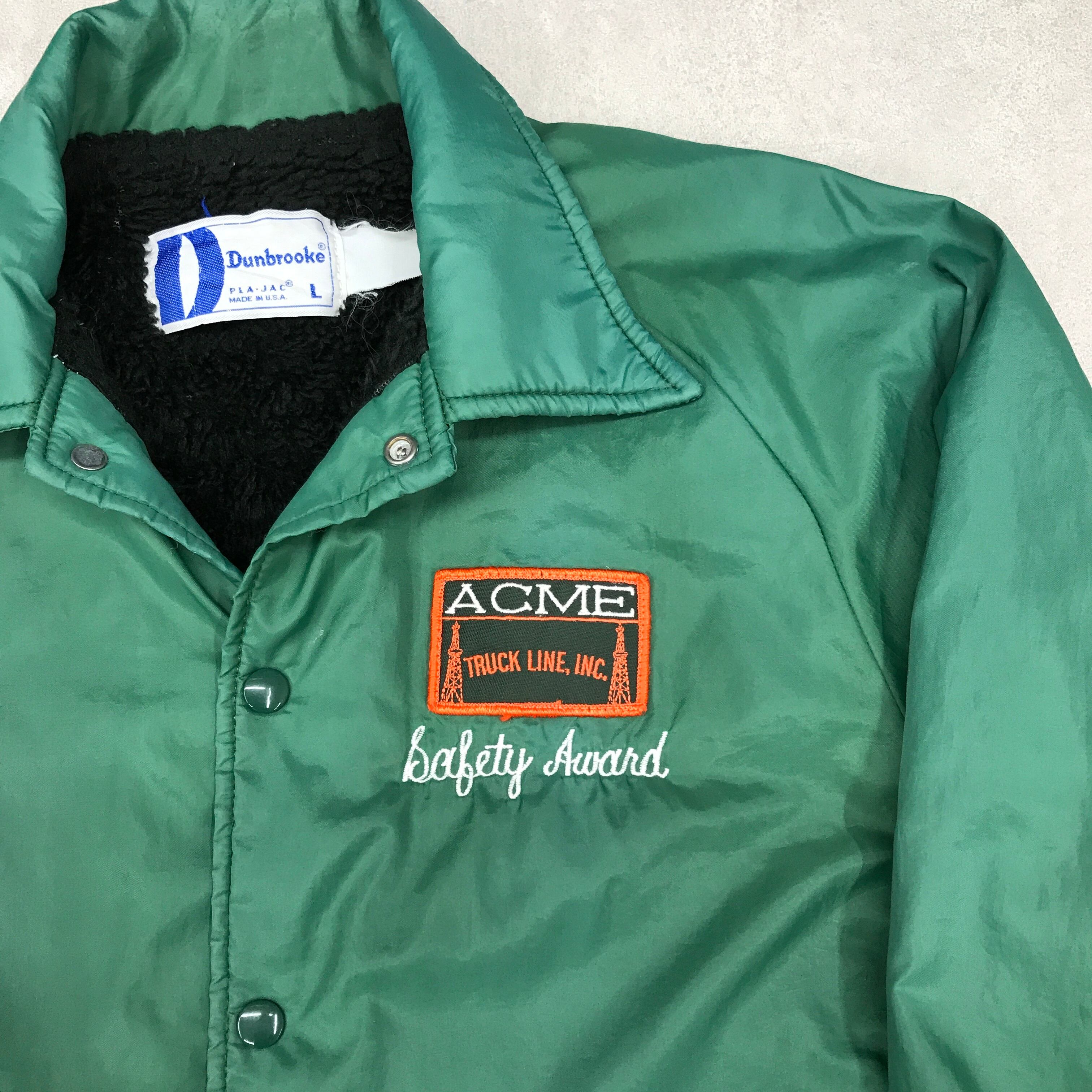 70〜80年代 Dunbrooke USA製 裏ボア付き ラグランウィンドブレーカー ナイロンコーチジャケット グリーン 両胸刺繍とワッペン付き!
