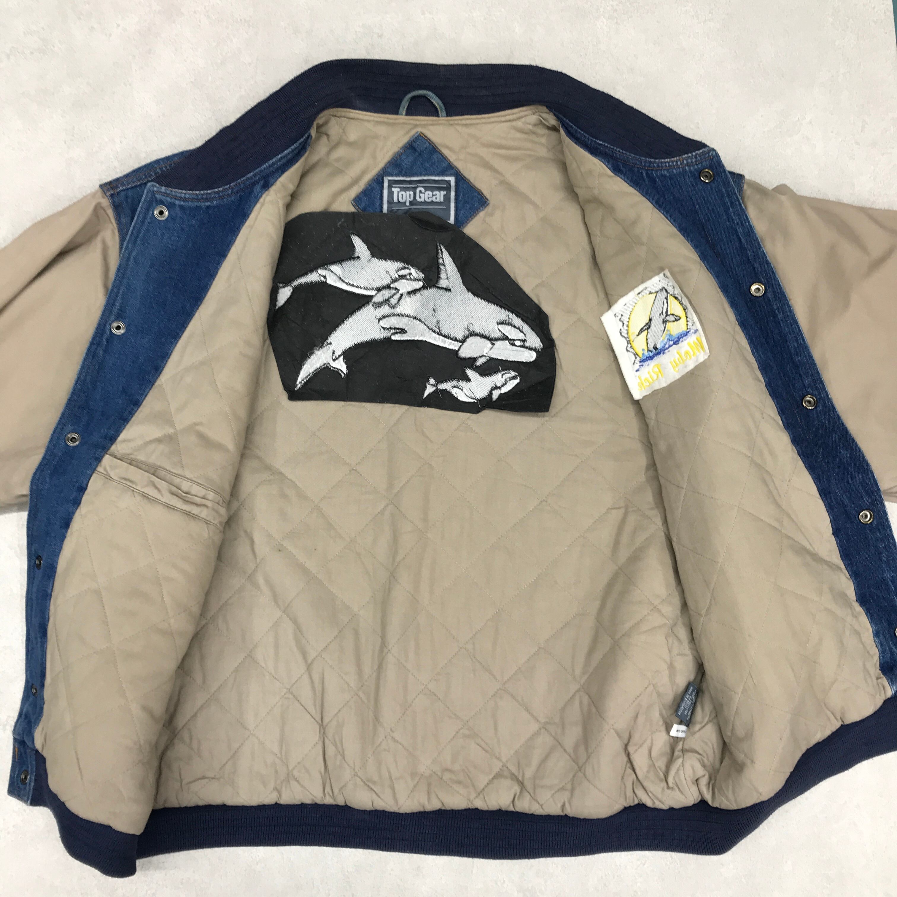 "XL Top Gear シャチ・ORCA 両面刺繍入りデニムスタジャン デニムとコットンツイルコンビ バックプリント エンブロイダリー"