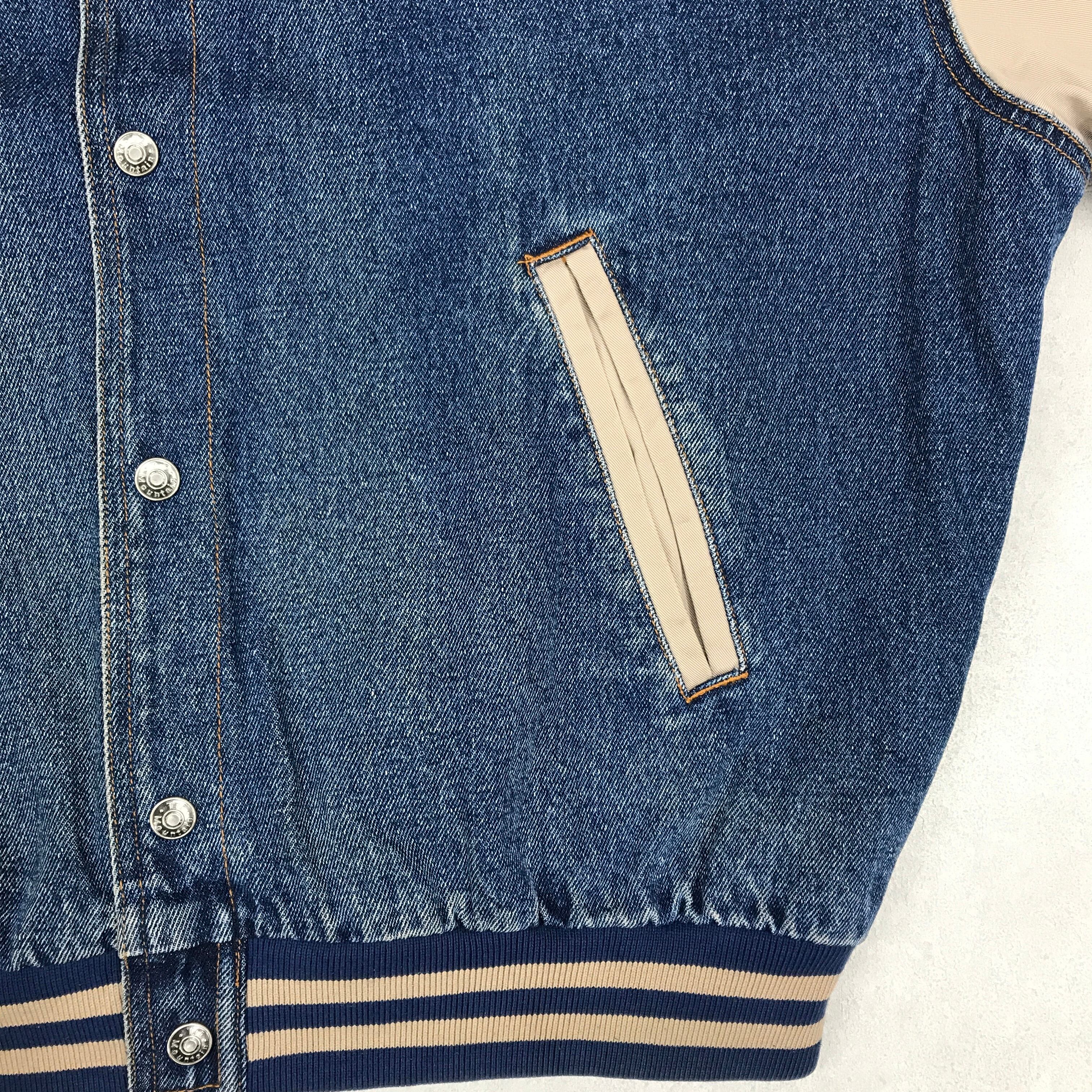 L Tri-Mountain 胸刺繍入りデニムスタジャン デニムとコットンツイルコンビ