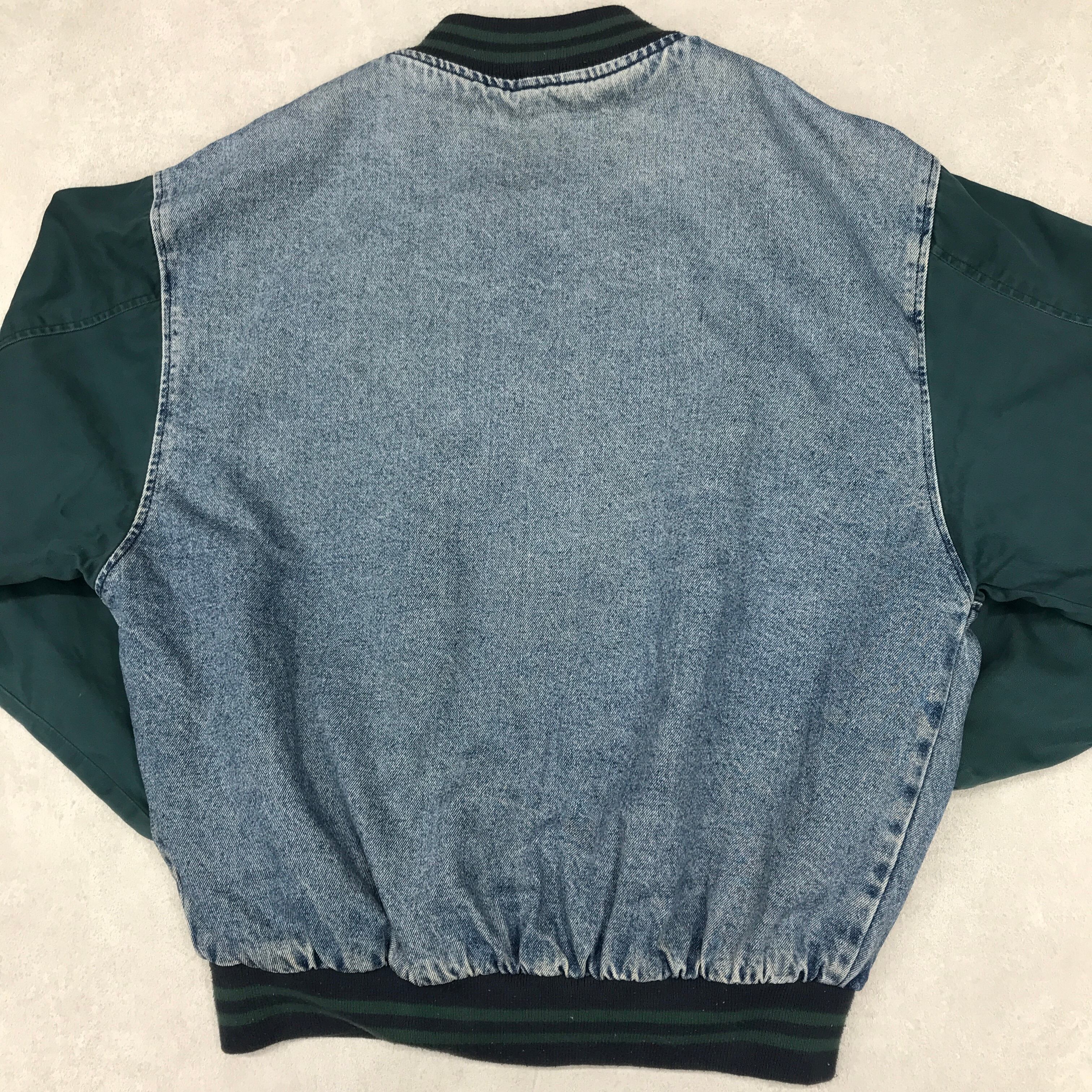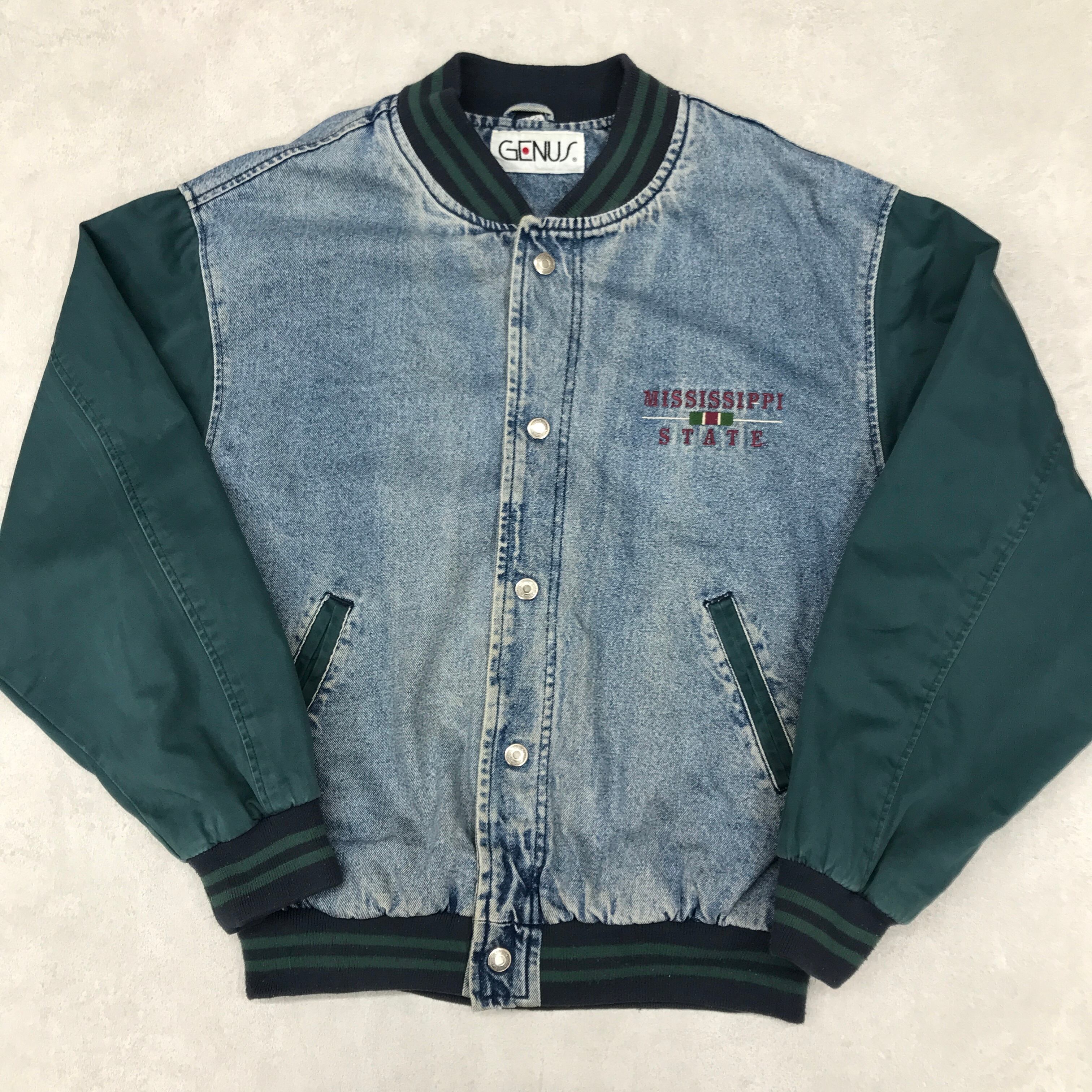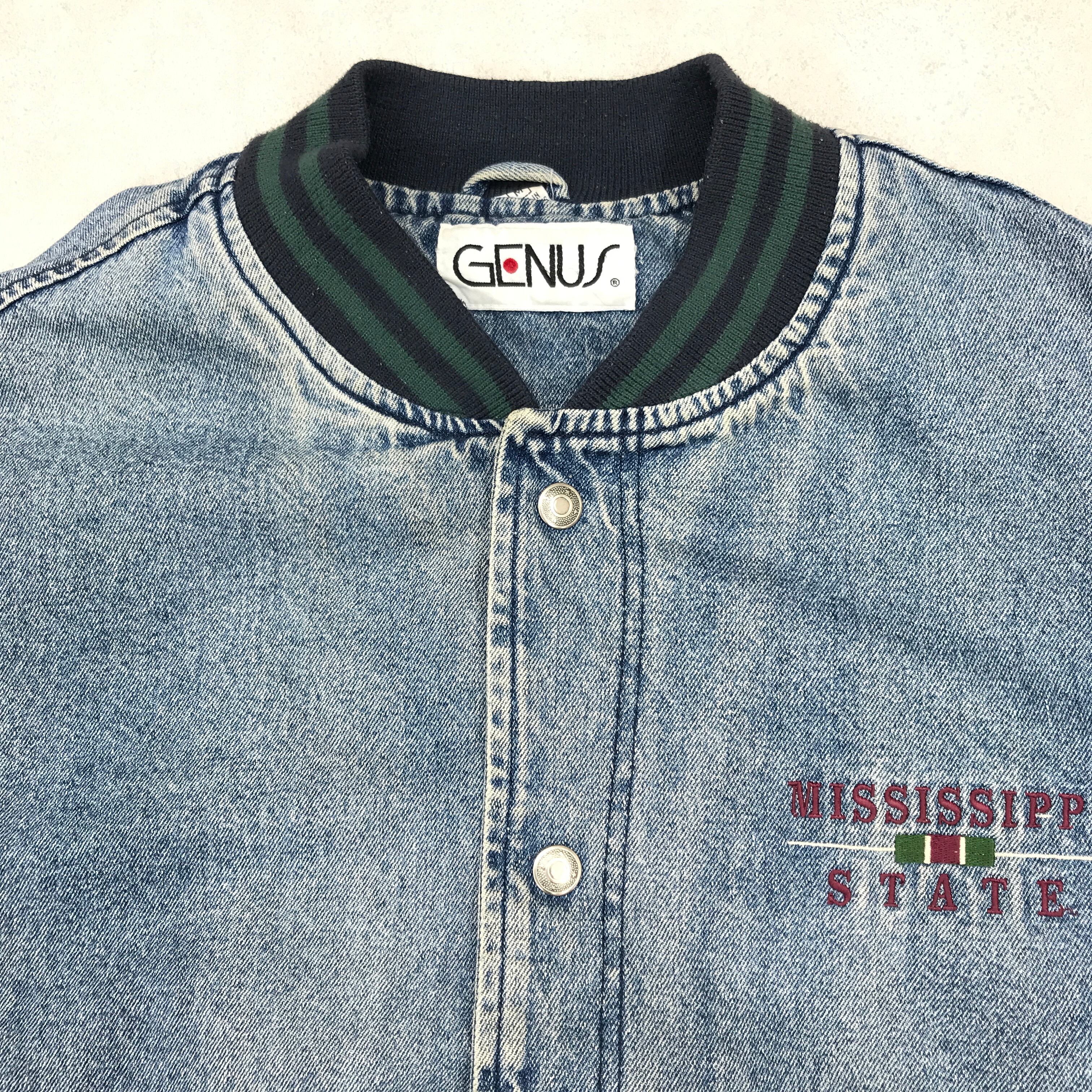 GENUS 胸刺繍入りデニムスタジャン デニムとコットンツイルコンビ