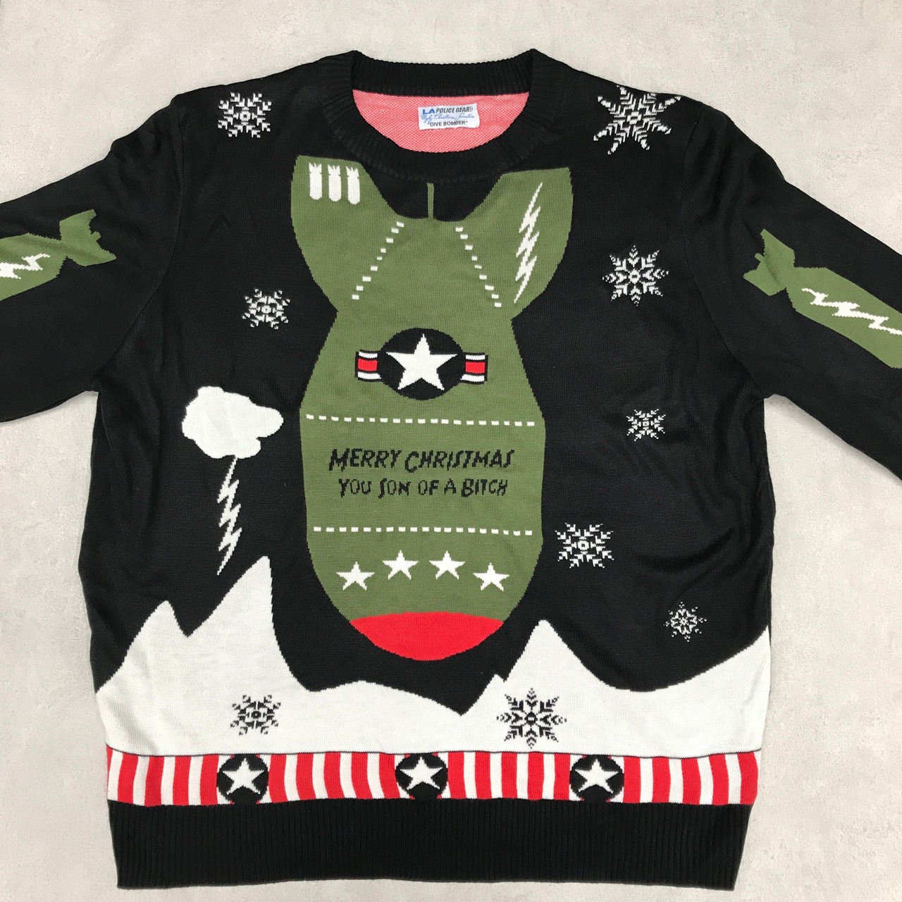 強烈!インパクト! LA POLICE GEAR アクリルセーター 総柄 ミサイル ノルディック