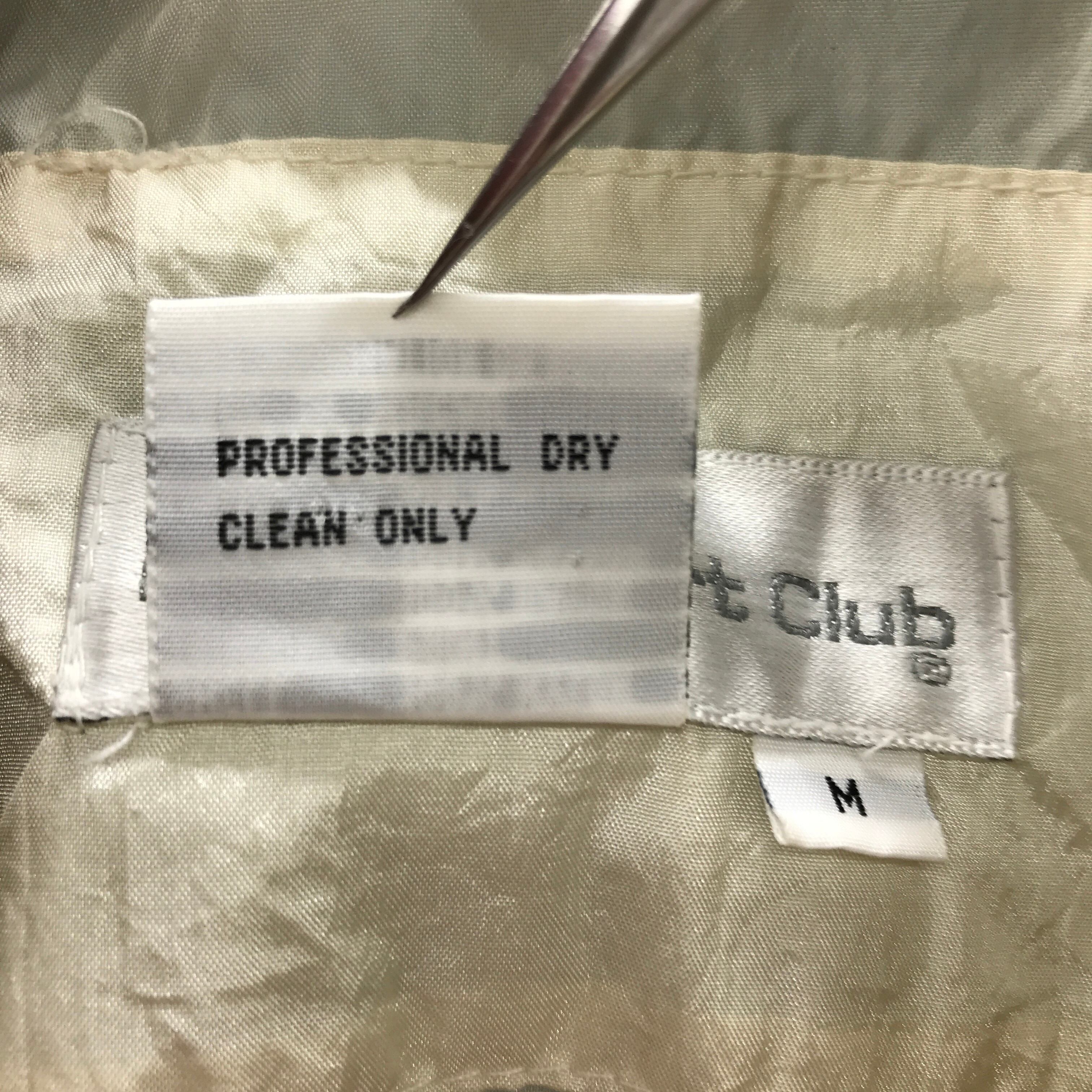 80年代頃のゴージャスなナイロンジャケットです。全体的に黄ばんでいるように見えます。袖のリブに汚れが有ります。肩パット入っています。