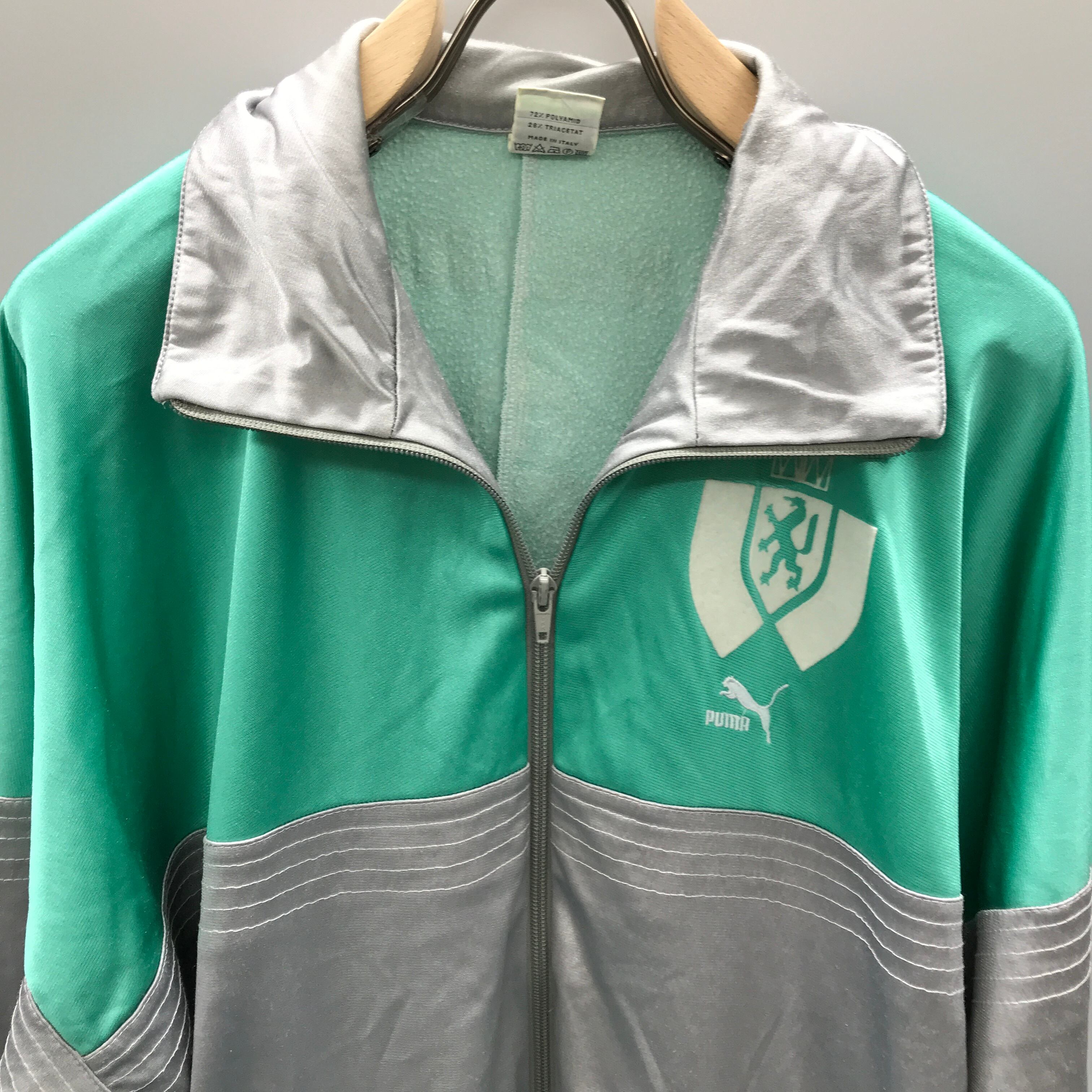 80年代頃MADEIN ITALY ユーロプーマです。オーストリアの保険会社のジャージっぽいです。襟に薄く黄ばみ、両袖リブの劣化、着用感あります。