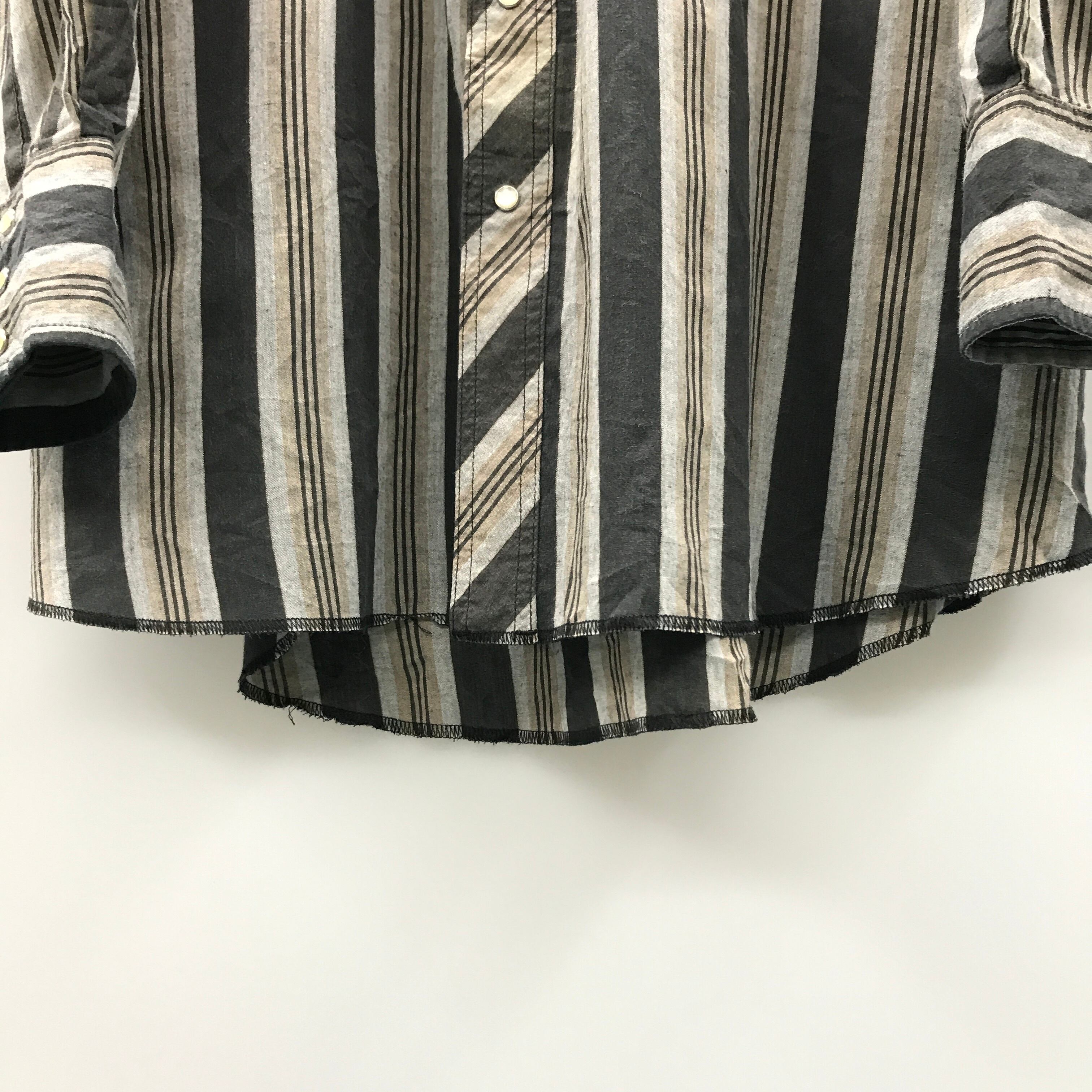 90年代 US XL ビッグ・ルーズ・ロング!ラングラー WRANGLER ウエスタンシャツ 太ストライプ マルチストライプ