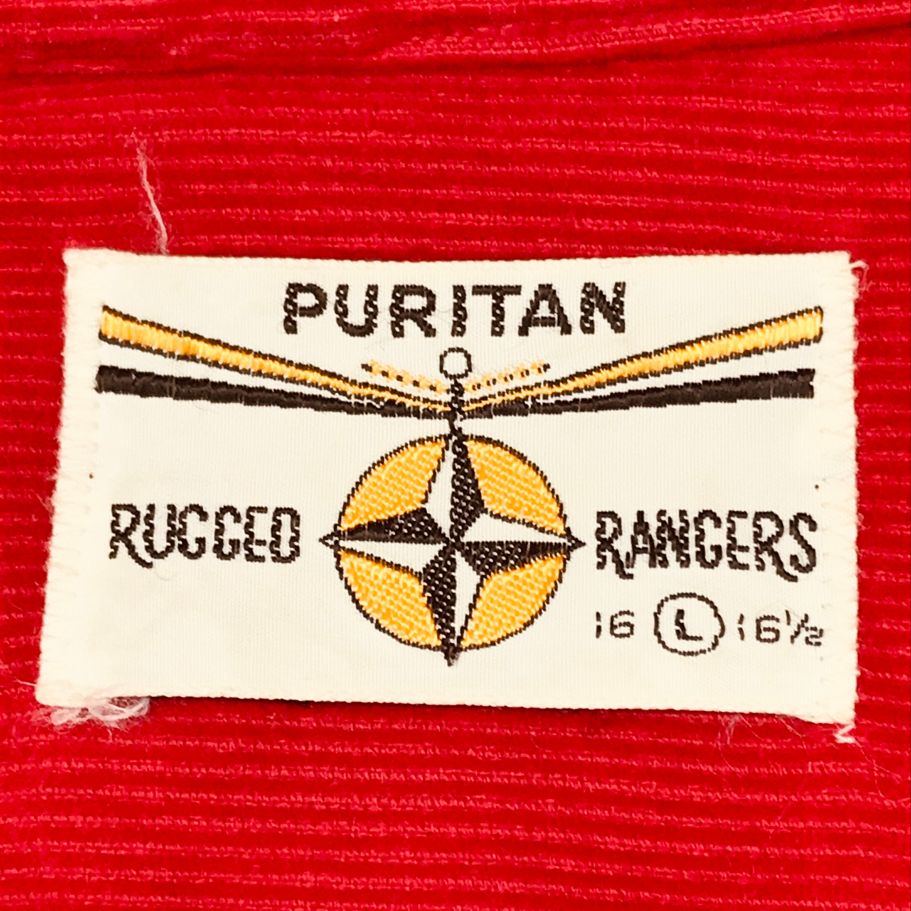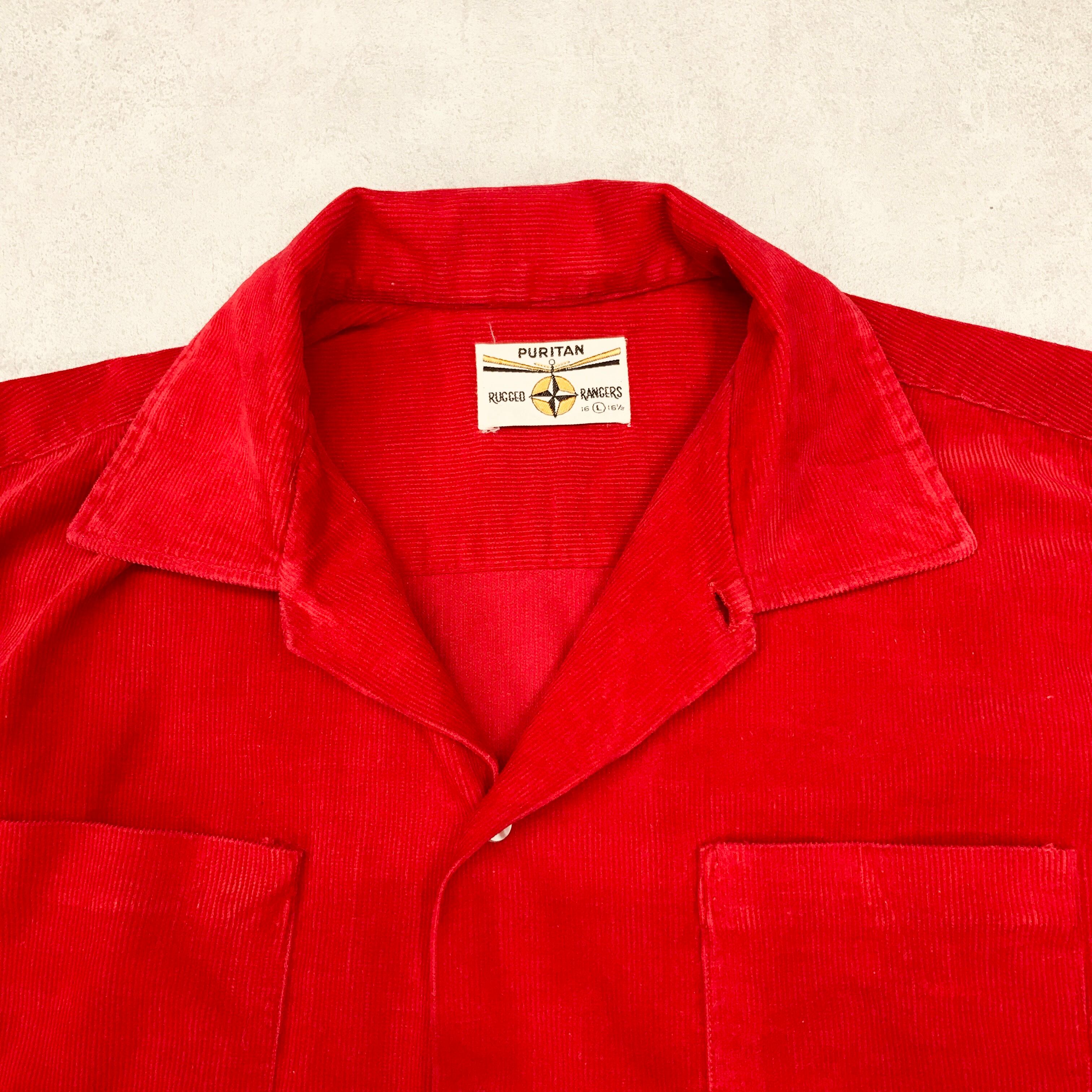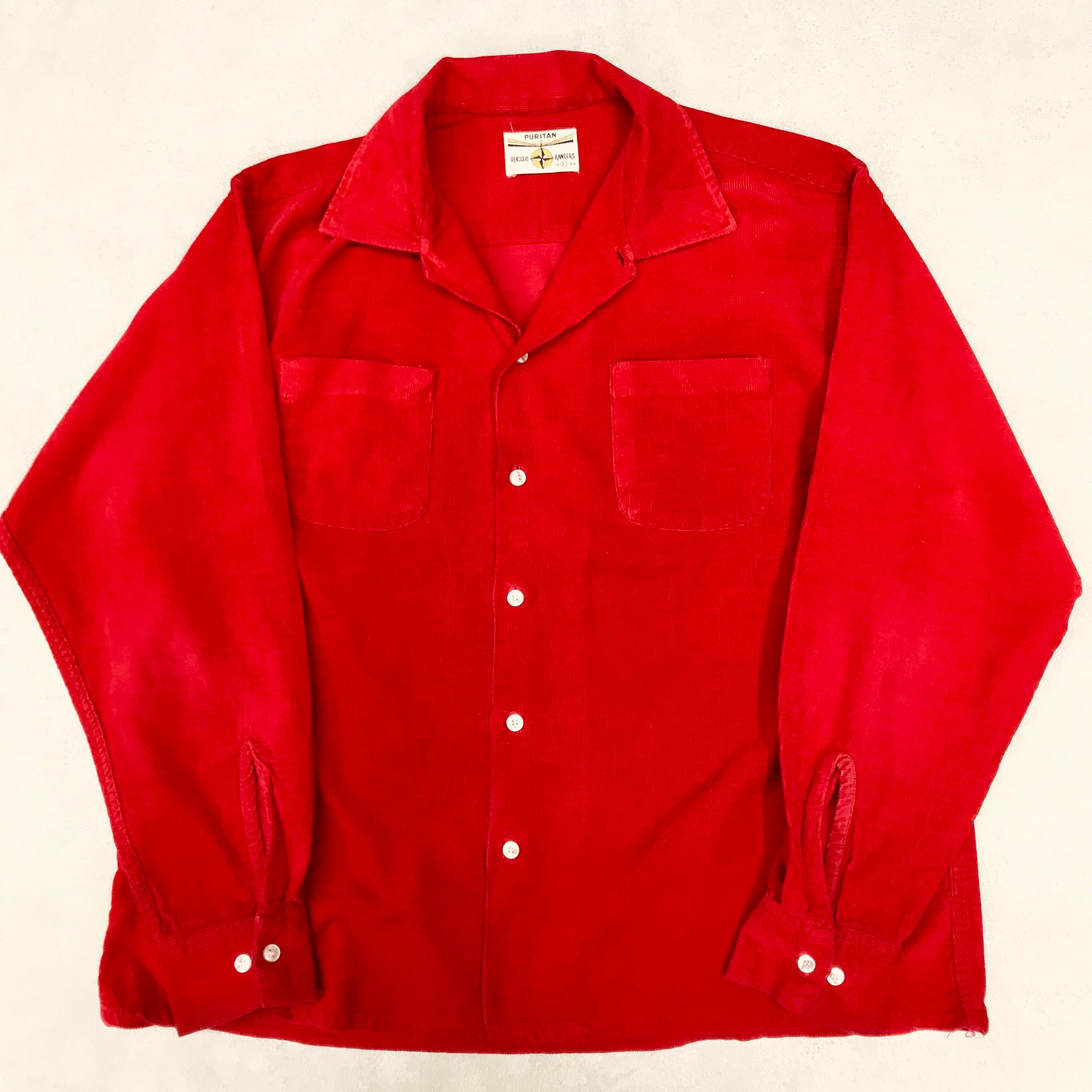 60〜70年代 PURITAN コーデュロイシャツ レッド 細ウネ L オープンシャツスタイル