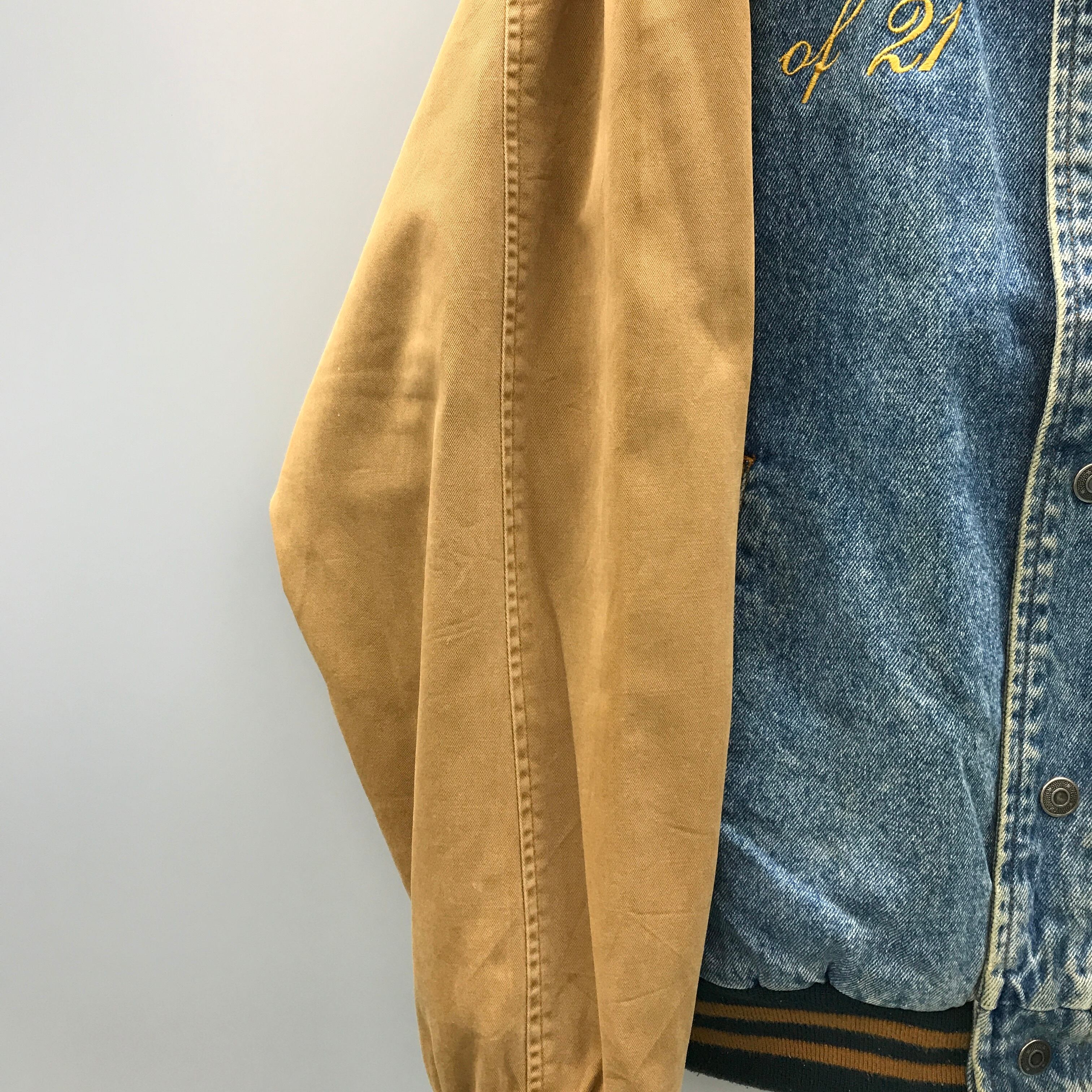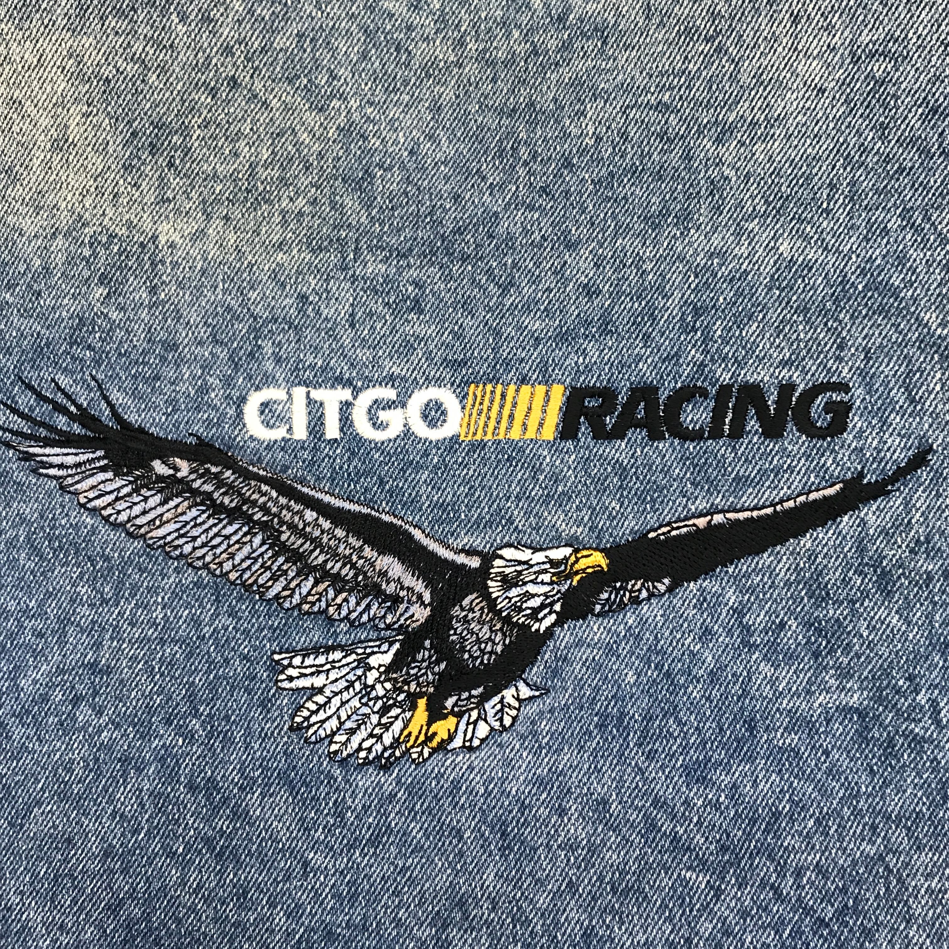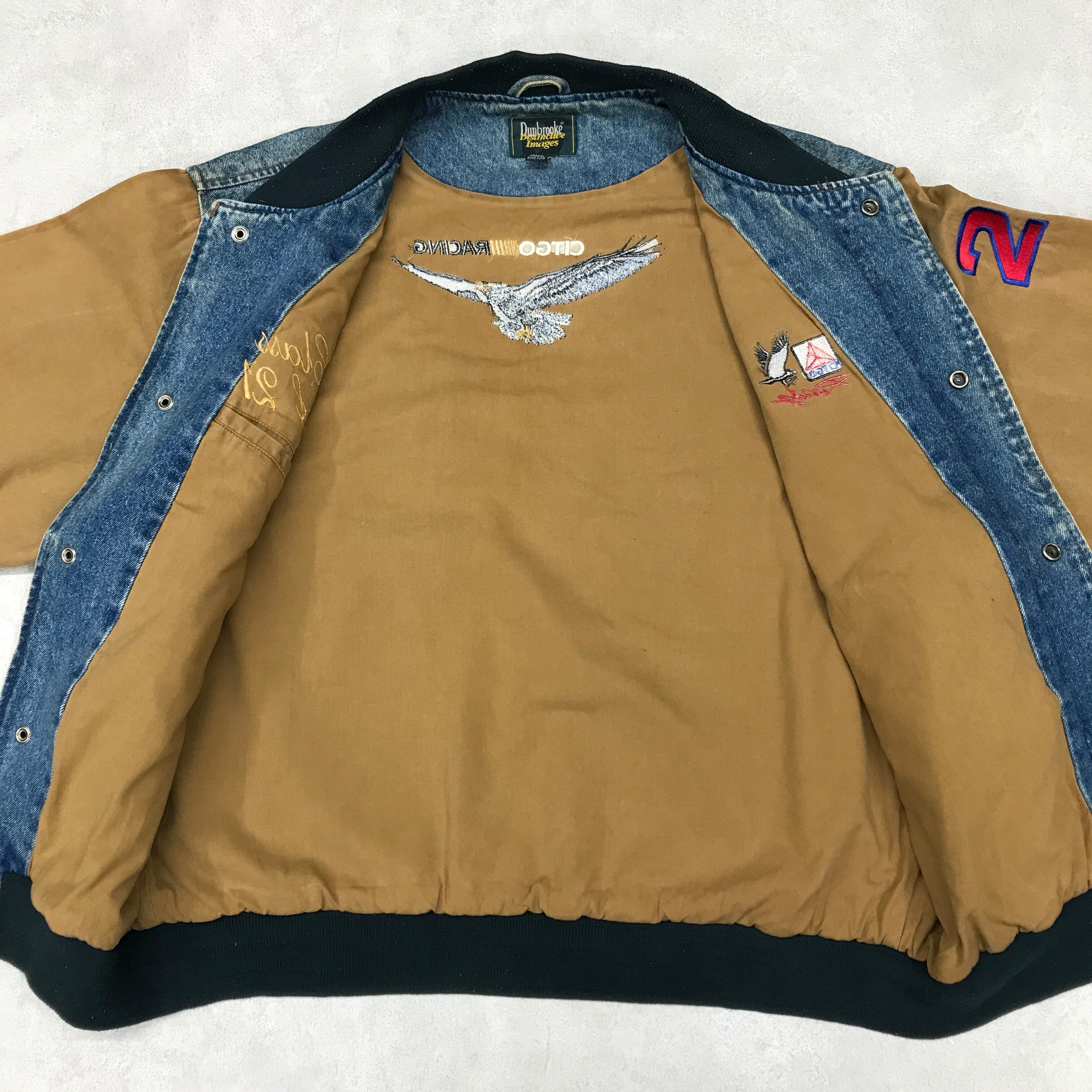 DUNBROOKE CITGO RACING 両面刺繍入り ケミカル風 デニムスタジャン デニムとブラウンコットンツイルコンビ