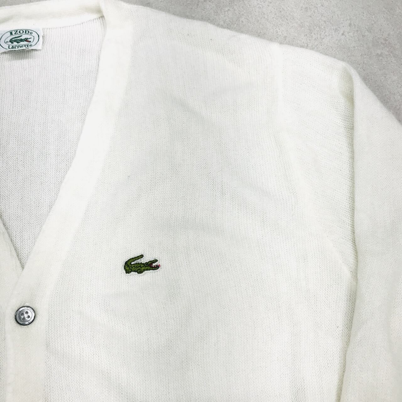 80〜90年代 USA製 IZOD LACOSTE アイゾッドラコステ 真っ白 ほぼ白 ホワイト アクリルカーディガン
