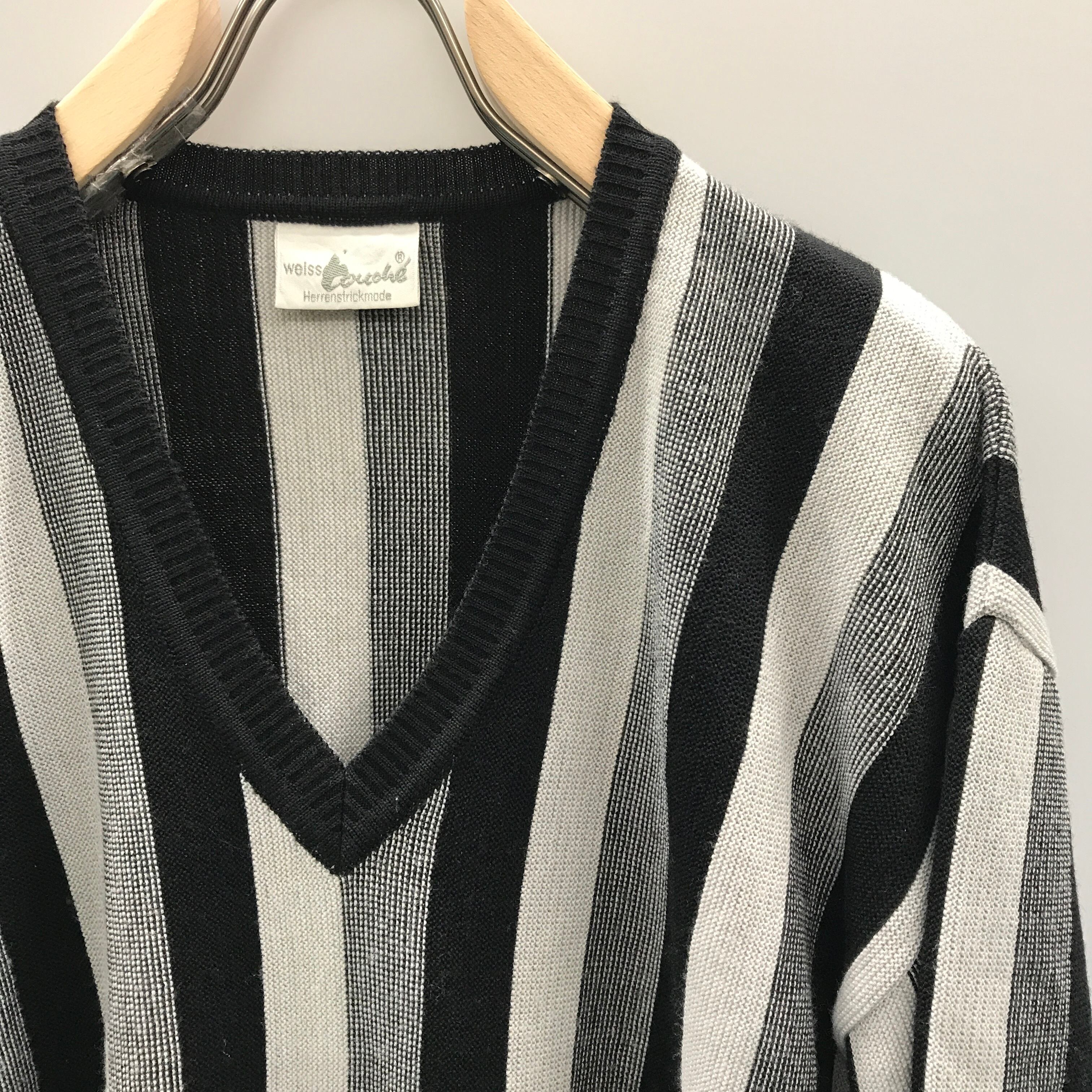 ユーロ EURO ドイツ ストライプ Vネックセーター WEISS TOUCHE SCHOELLER TODAY MOD