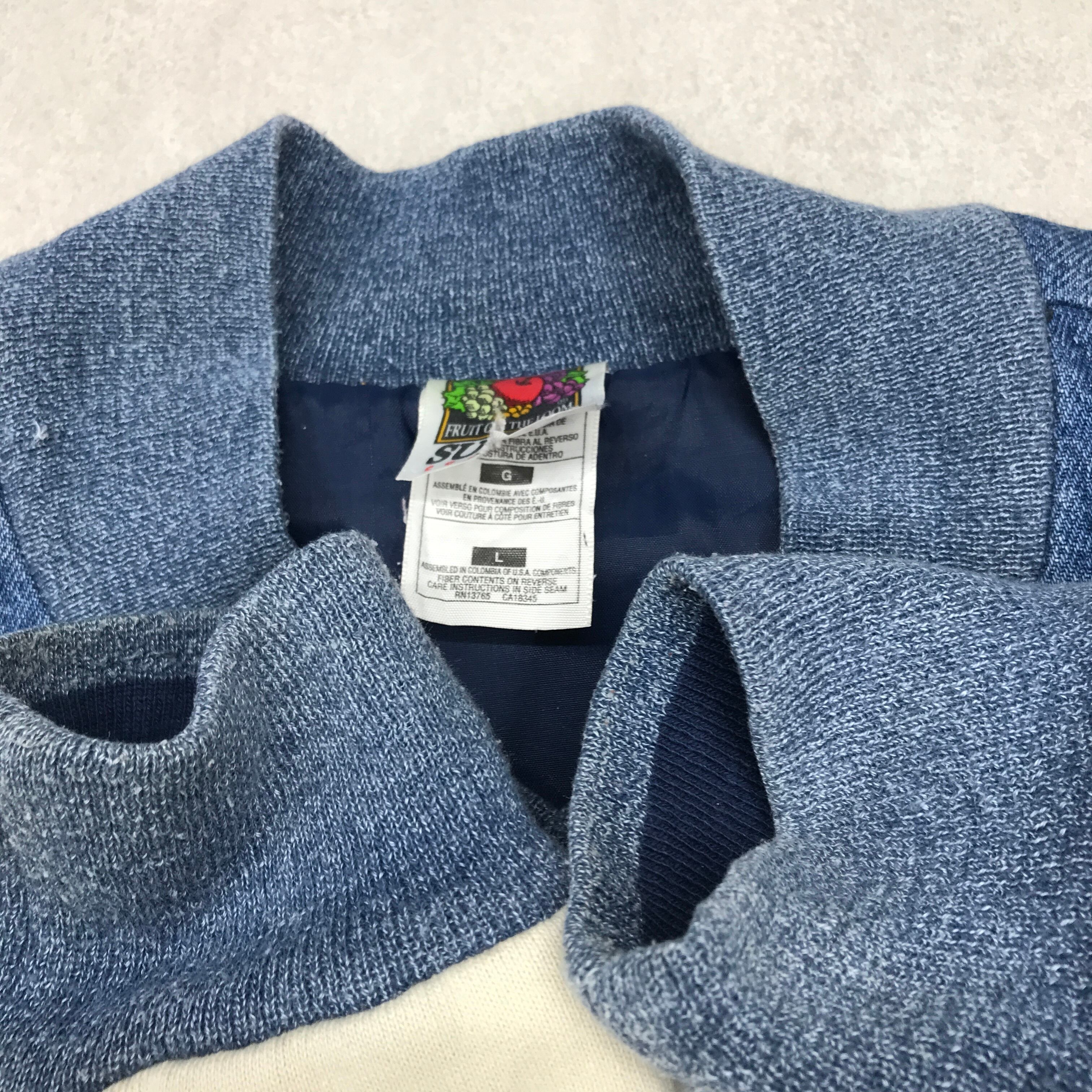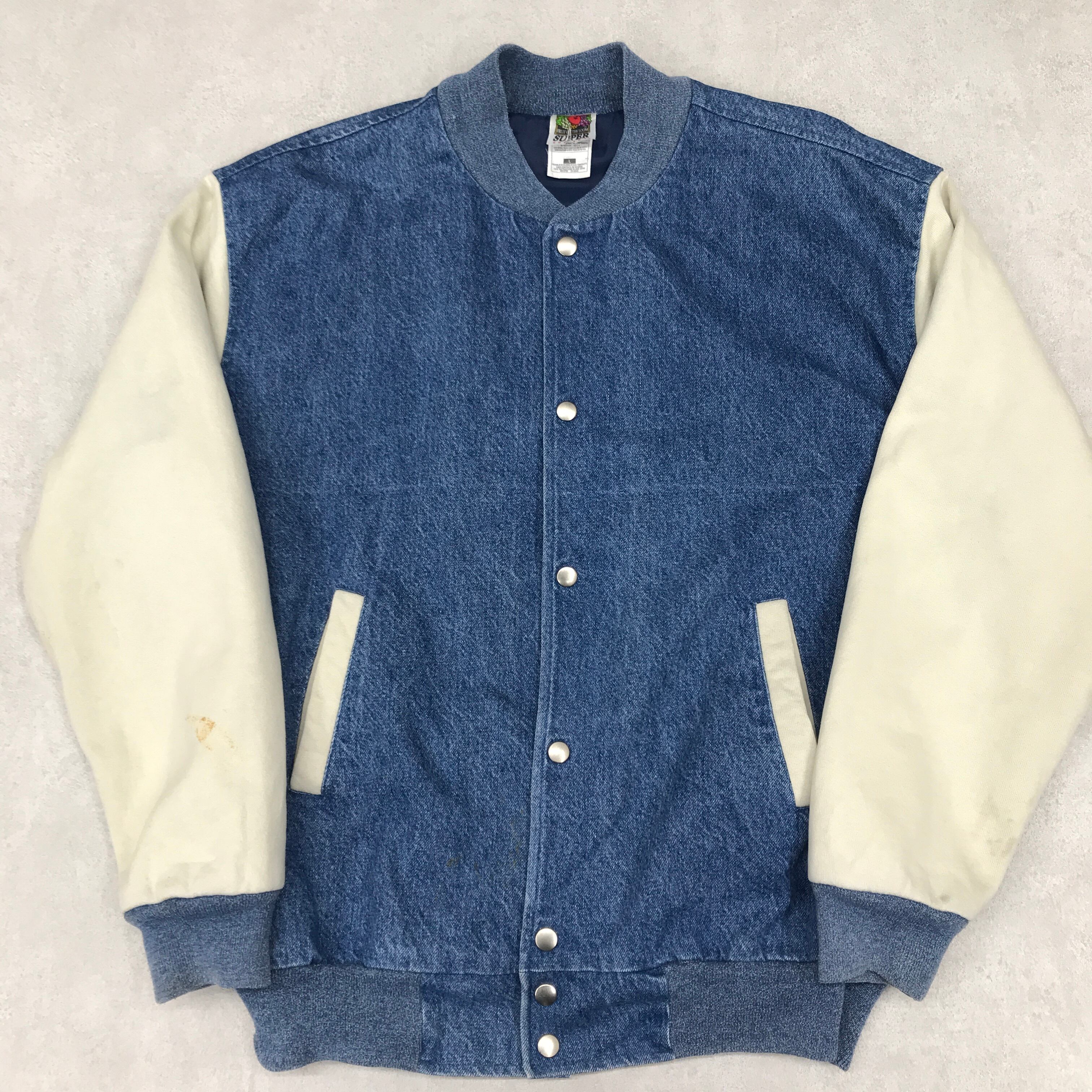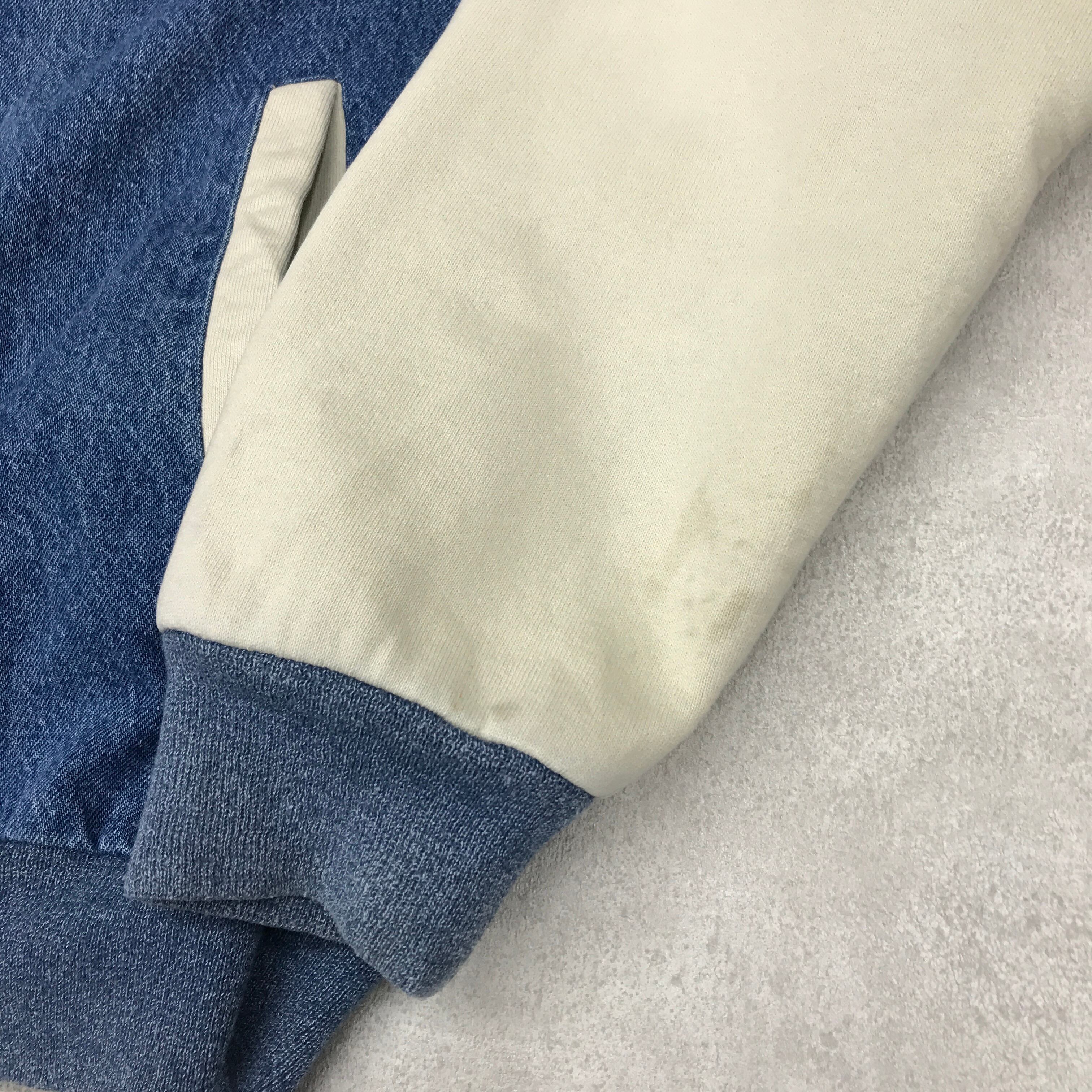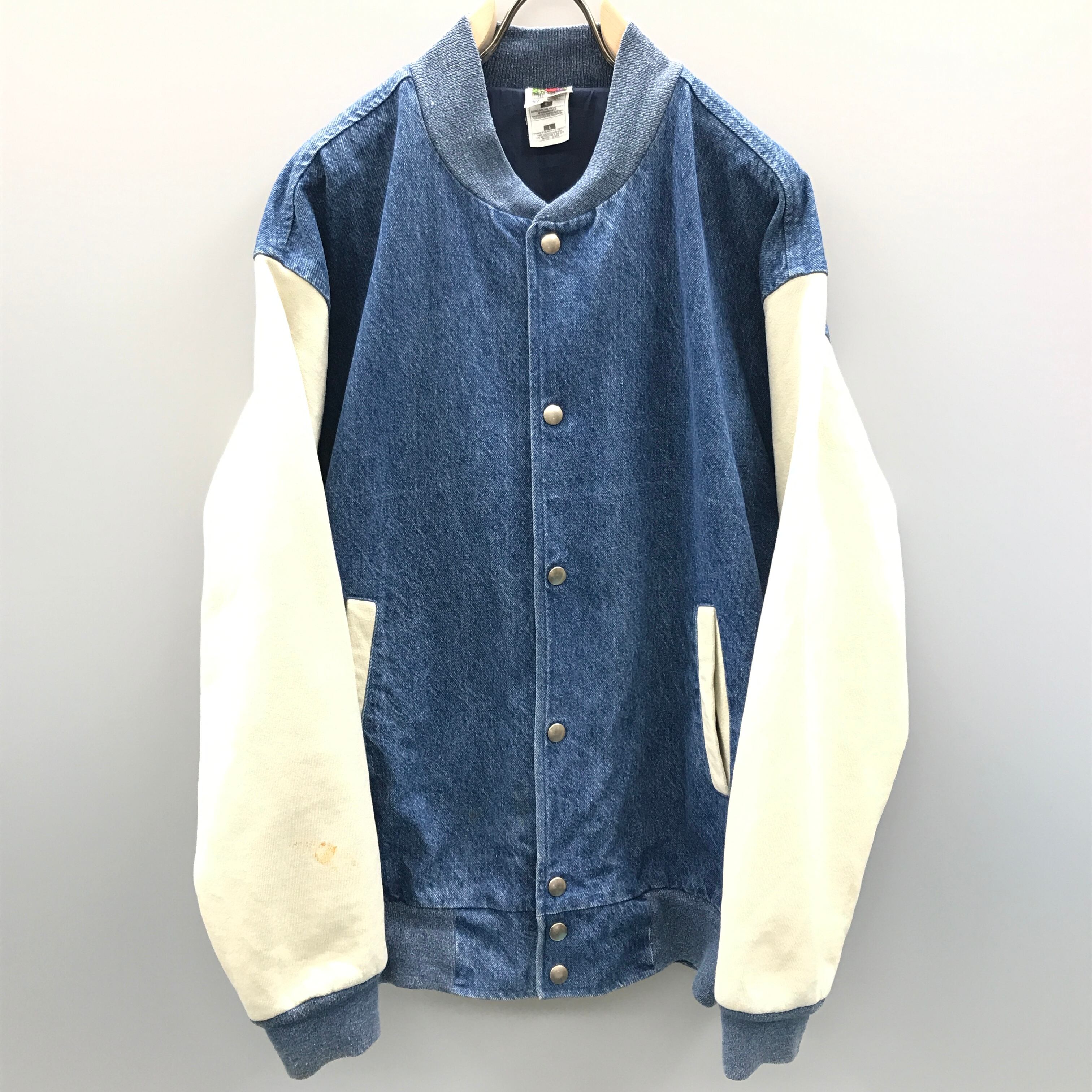 FRUITS OF THE ROOM ケミカル風デニムと白いやわらかスウェット地のコンビのデニムスタジャン!