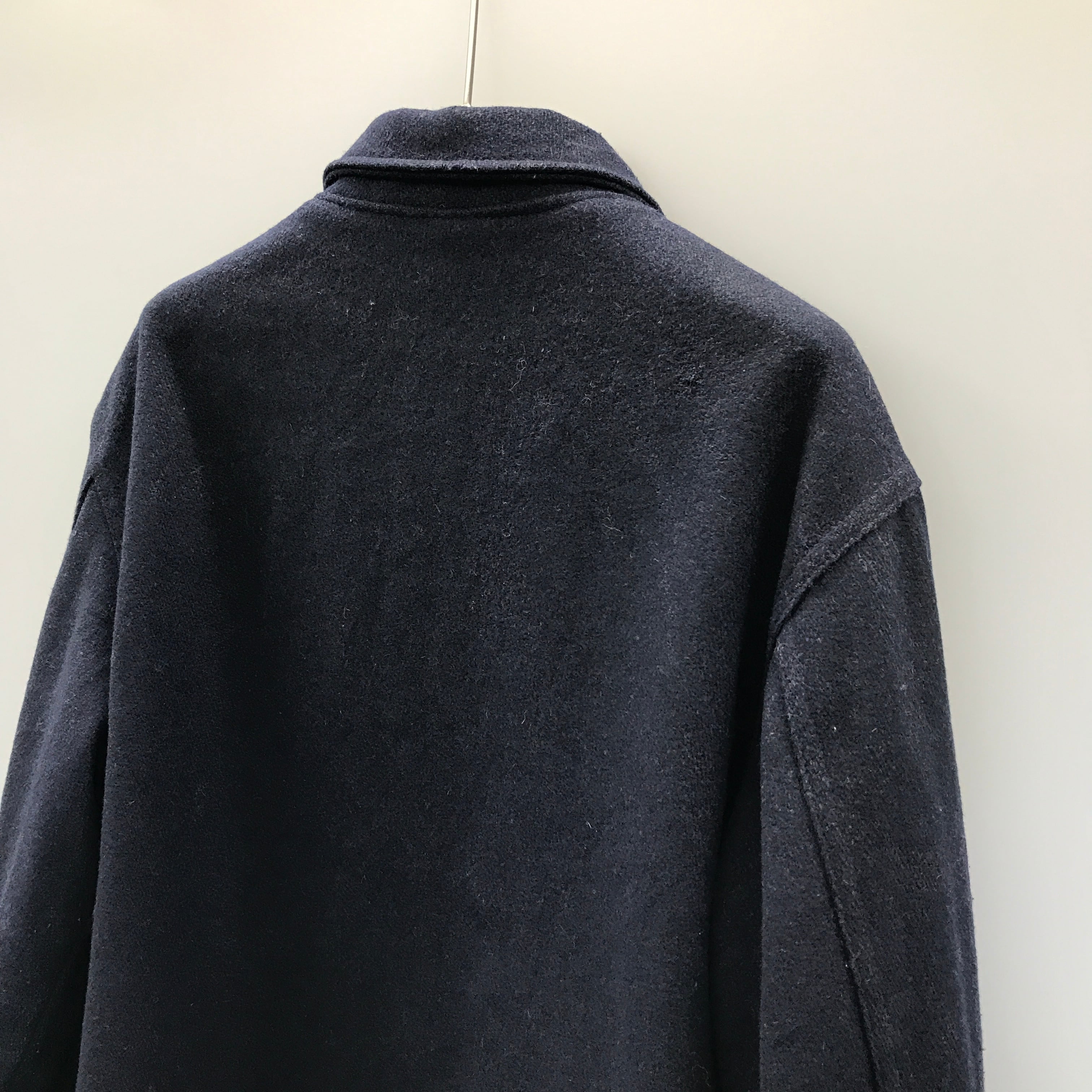 60年代後半ごろのざらっとした手触りのメルトンウール地のコーチジャケットです。薄い中地が付いています。右肩と右袖に生地が薄くなっていて小穴があいてる個所があります。右袖に汚れもございます。細かい汚れや、毛玉なども有ります。中地も穴や汚れあります。ビンテージものですご理解の上お買い求めください。