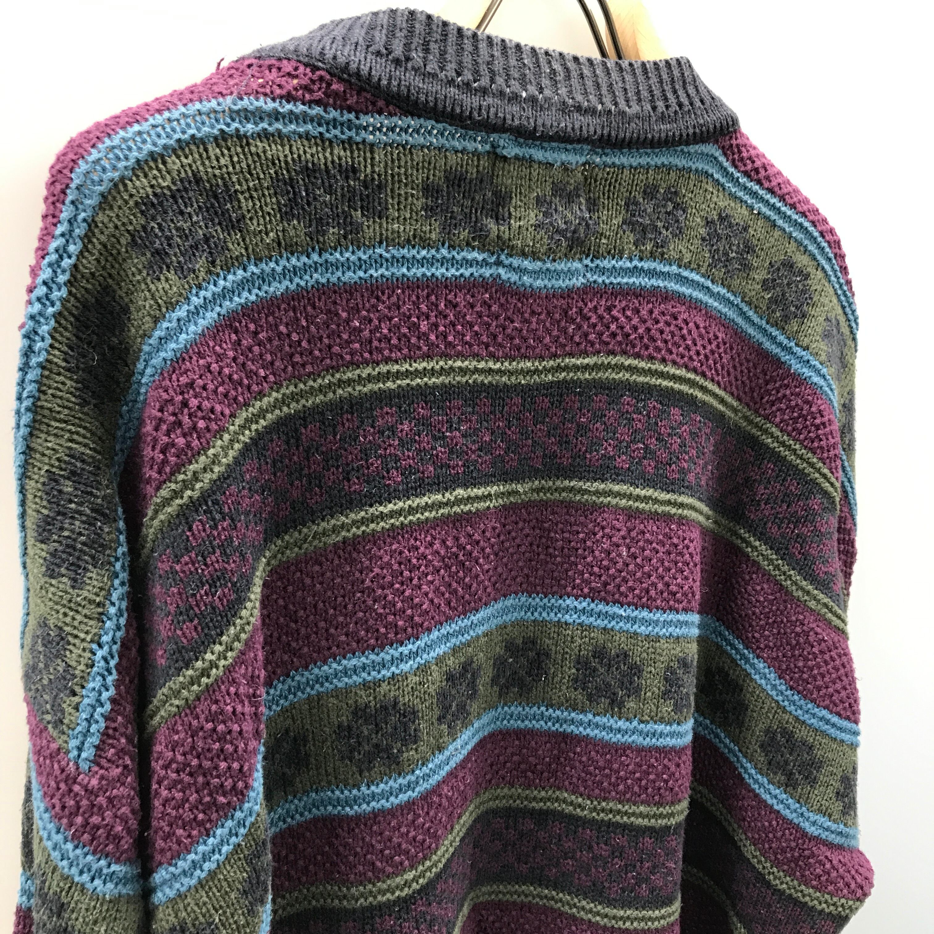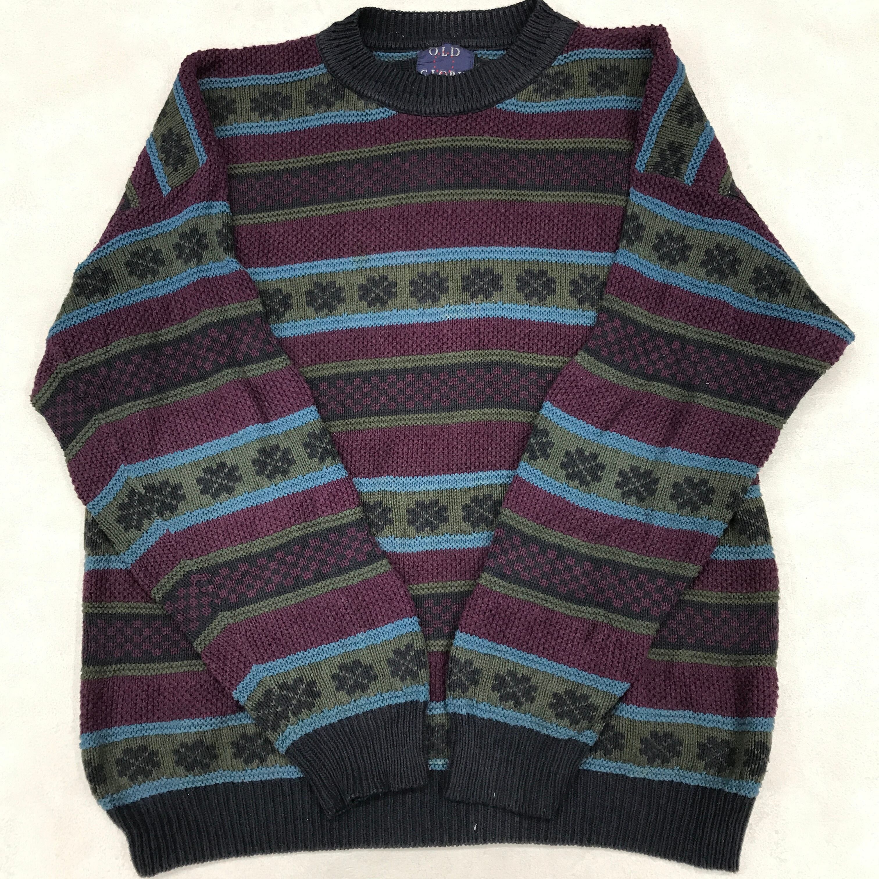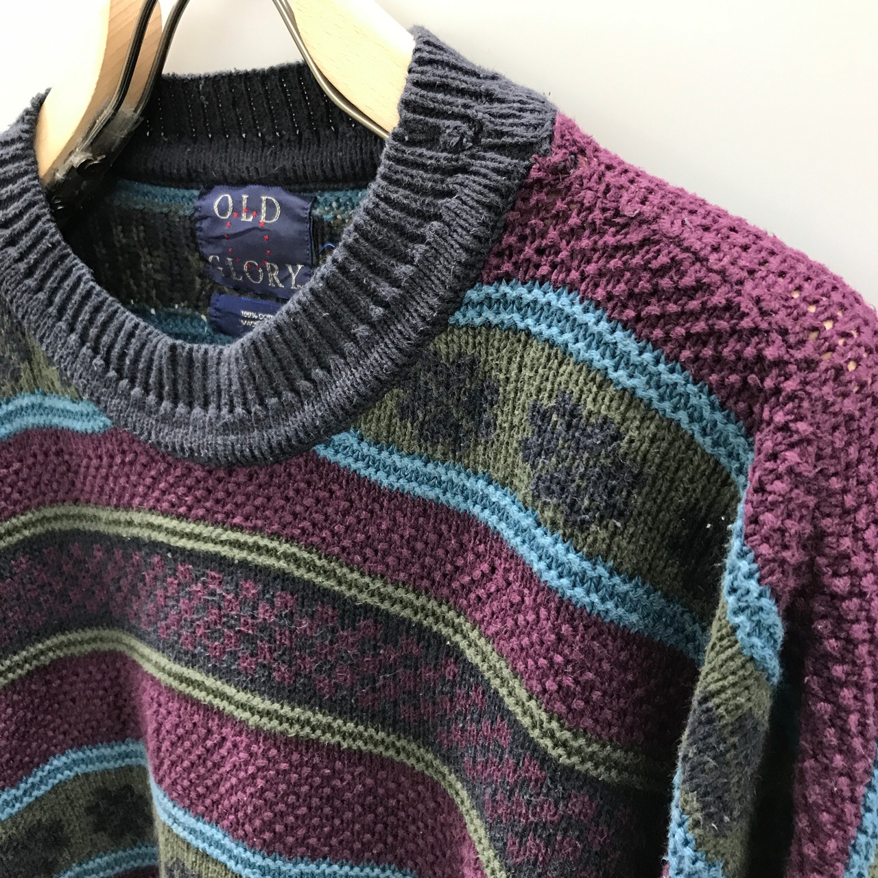 90年代USA製コットンセーターです。全体的に色あせ着用感があります。ノルディックボーダー柄がいい感じです。目立つ汚れや穴などは御座いません。