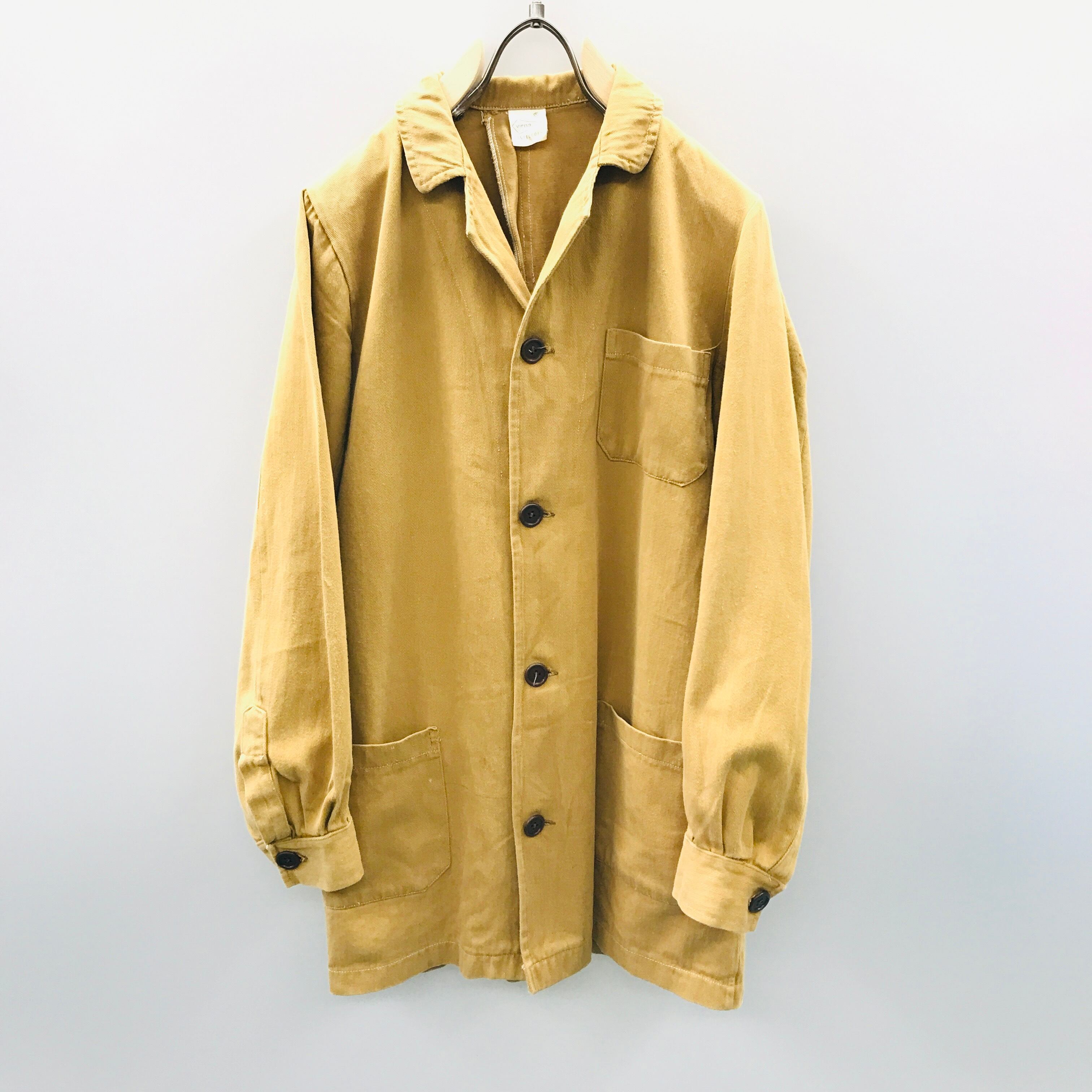 70年代前後 Virna ユーロワーク カバーオール 濃いベージュ ポルトガル ビンテージ ユーロワーク フレンチワーク ジャケット バックベルト付き
