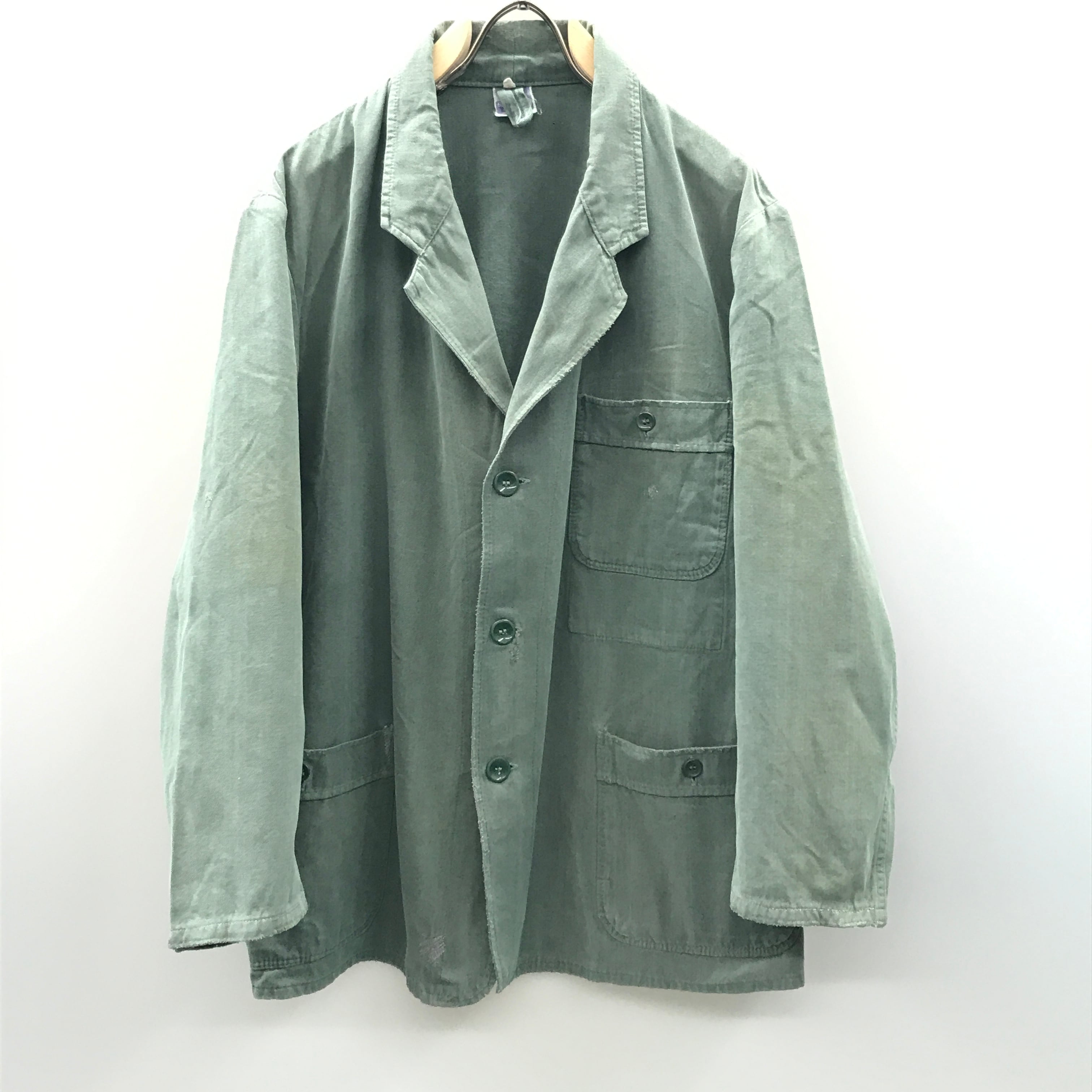 60年代前後 BMZ ユーロ ドイツワーク カバーオール ブルーグリーンビンテージ ユーロワーク フレンチワーク ジャケット バックベルト付き