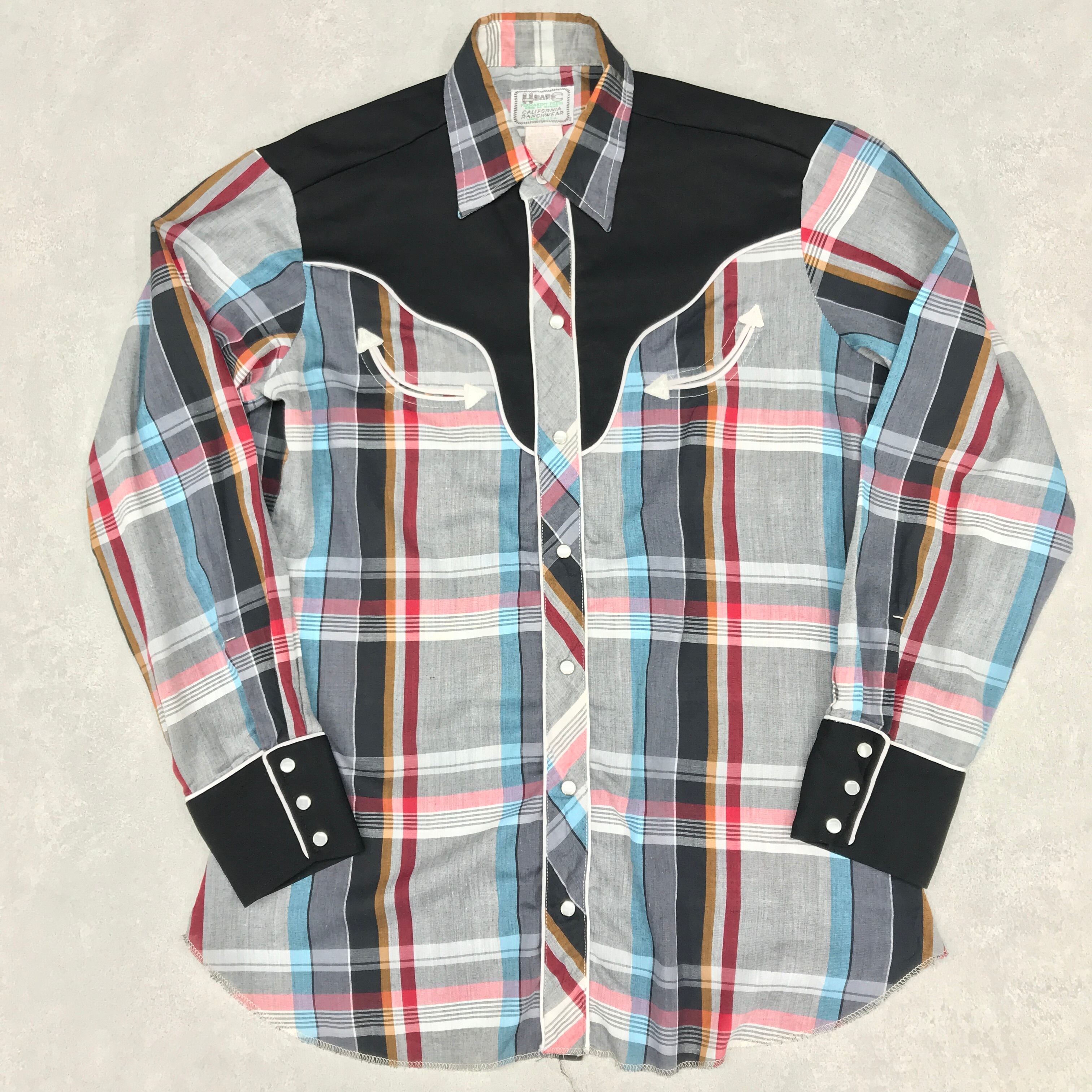 70年代 H BAR C エイチバーシー チェック切り替え ウエスタンシャツ