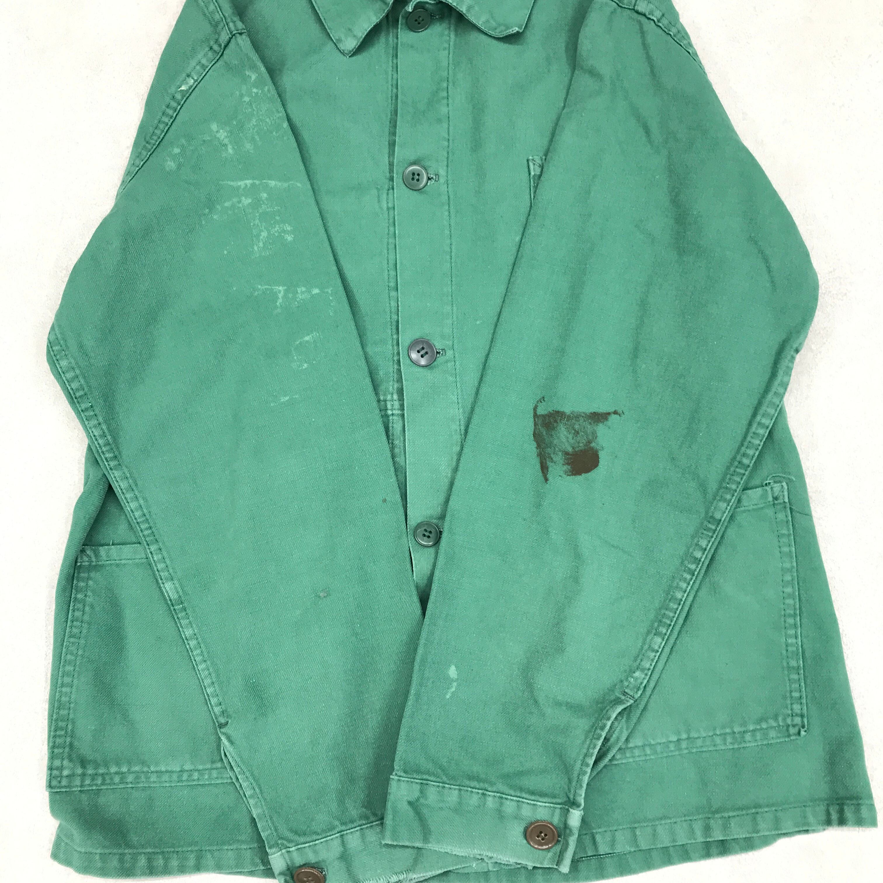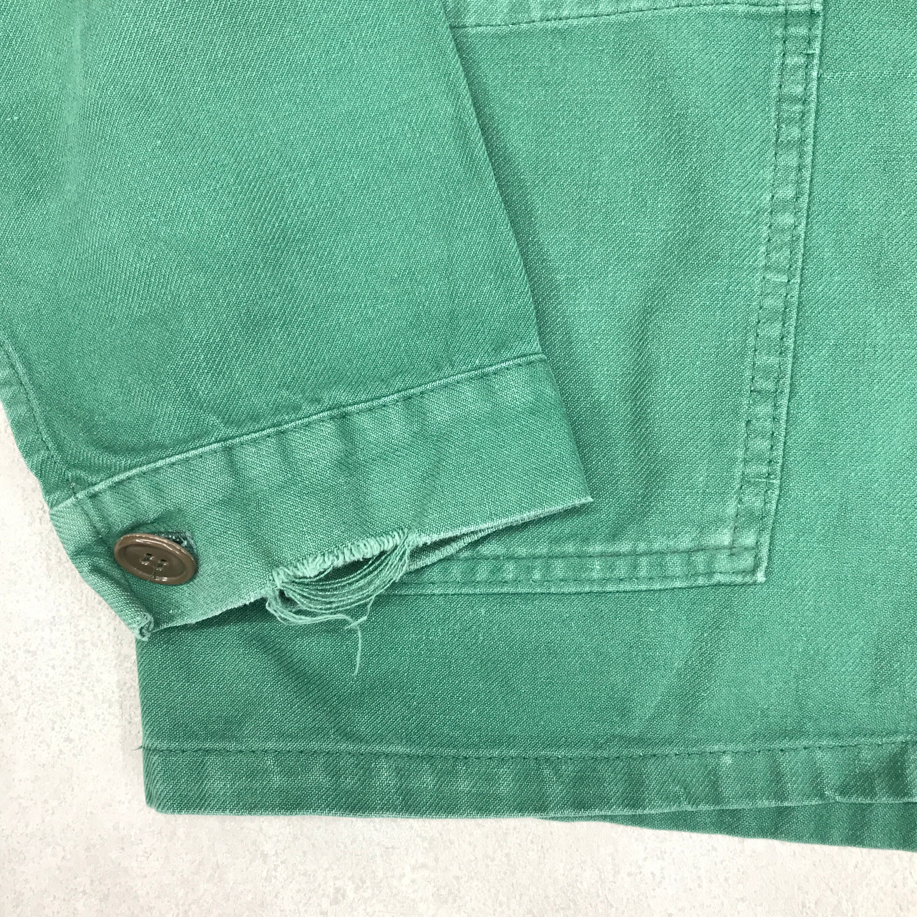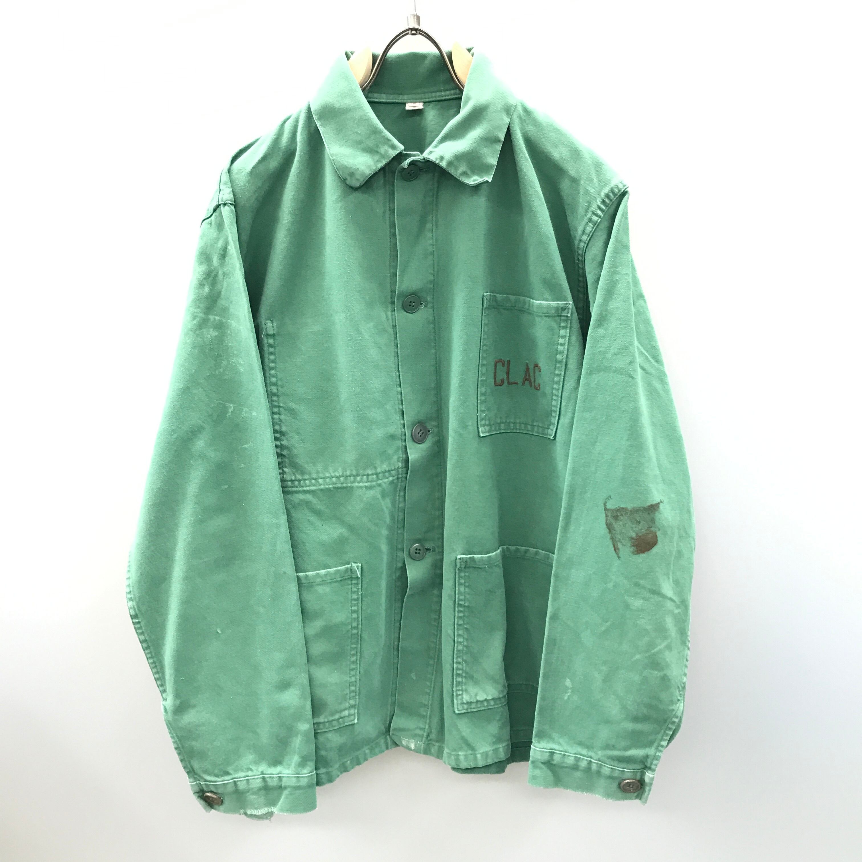 70〜80年代 ビンテージ CLAC 刺繍 FRANCE コットンツイル ユーロワーク フレンチワーク ジャケット カバーオール ライトグリーン EURO VINTAGE