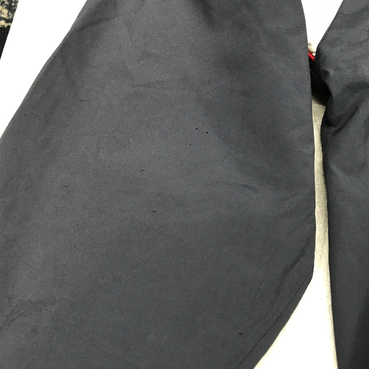 90年代前半のアディダス万国旗タグ、パフォーマンスロゴ刺繍、背面フロッキープリントでRUNNING TEAM。ゆったりとした90年代シルエットでデザインもかっこよくまとまっています。状態は悪いです。右ポケットジッパー破損、肩に汚れ、焚火で着用てたのか、焼けて穴が数ヶ所あいています。(小穴無数、大穴1)勿体ないですね。キャンプで使ってください。
