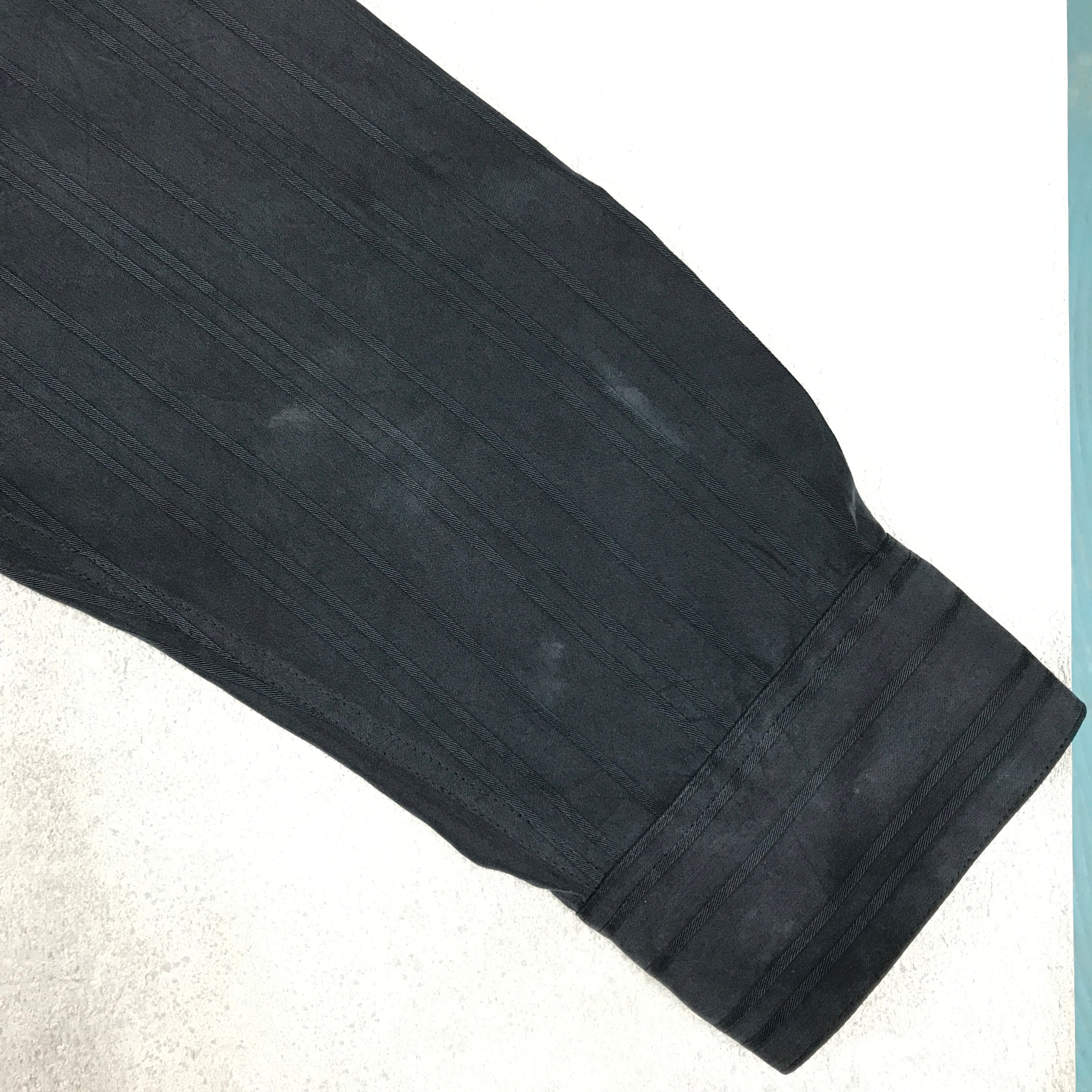 ※MODAL は レーヨンの一種ですブラック透かしストライプドレスシャツ シャツブラウス おしゃれシャツ 左袖の剣ポロのボタンが欠けています