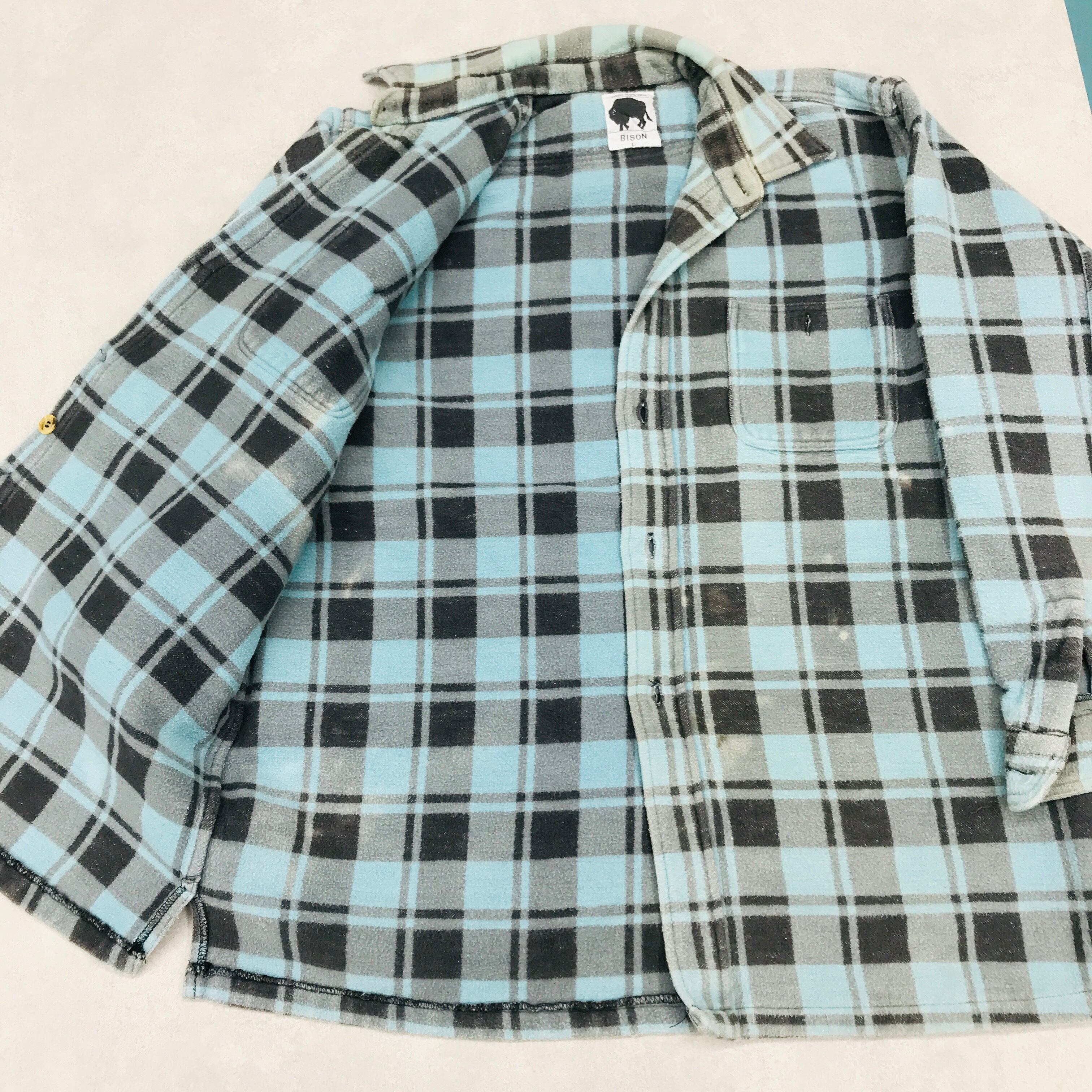 BISON BRAND OUTDOOR アウトドア 超・ヘビーコットンネル ダメージをワイルドにラギッドに!キャンプ、たき火!水色バッファローチェック!