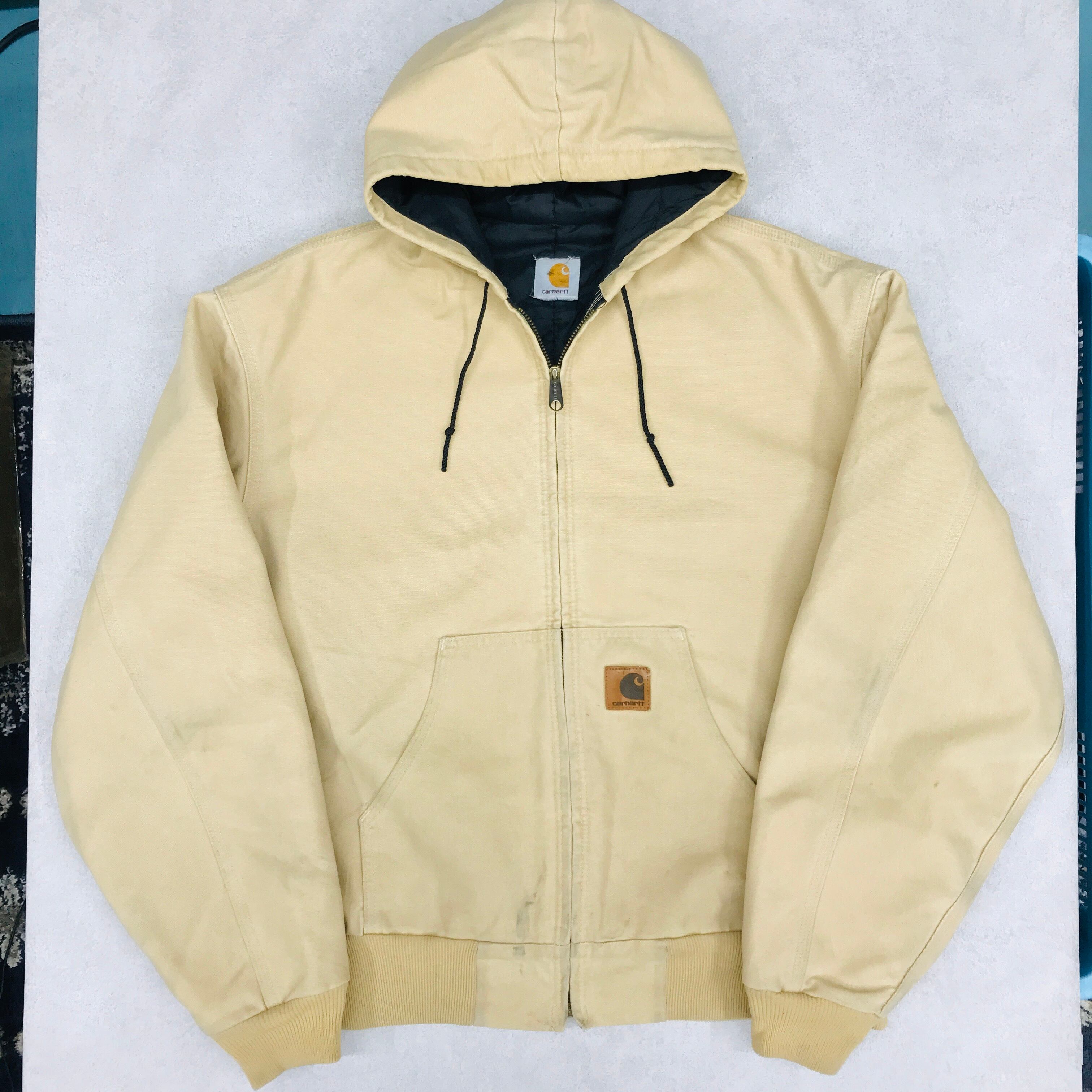 Carhartt カーハート クリーム色 ダック地アクティブパーカー 内側中綿キルト地